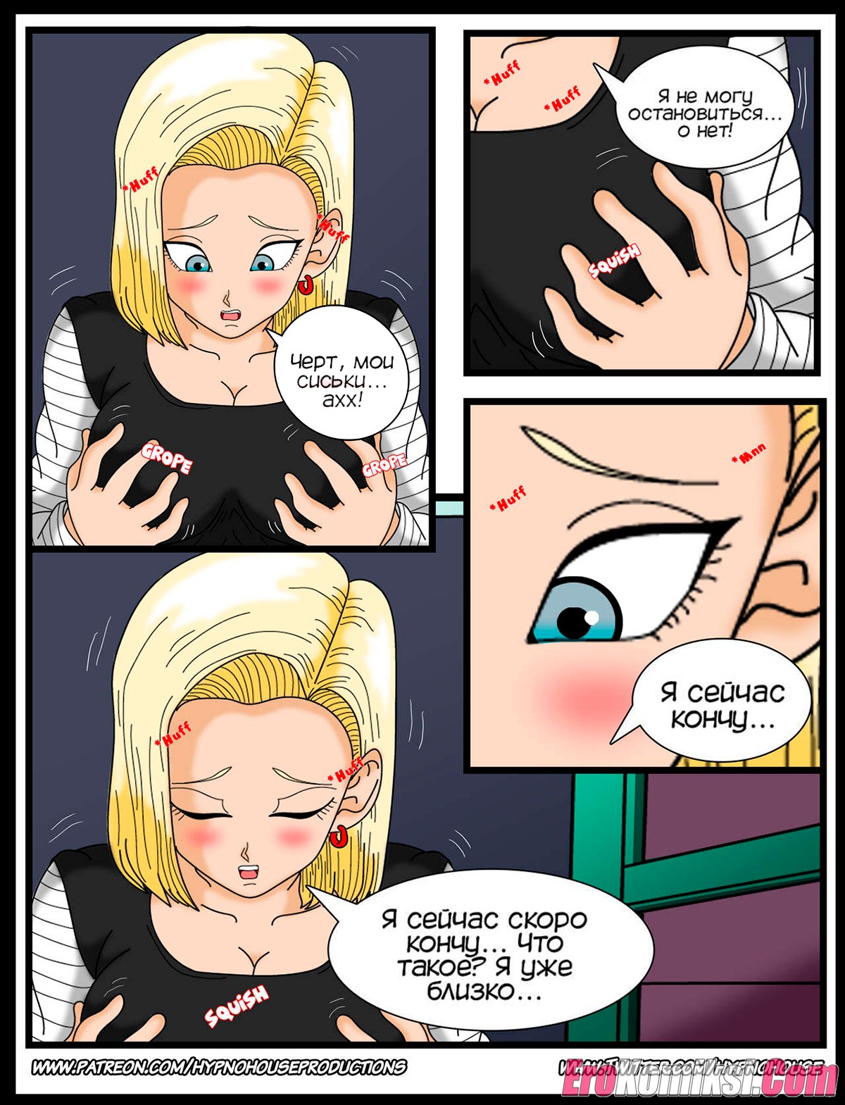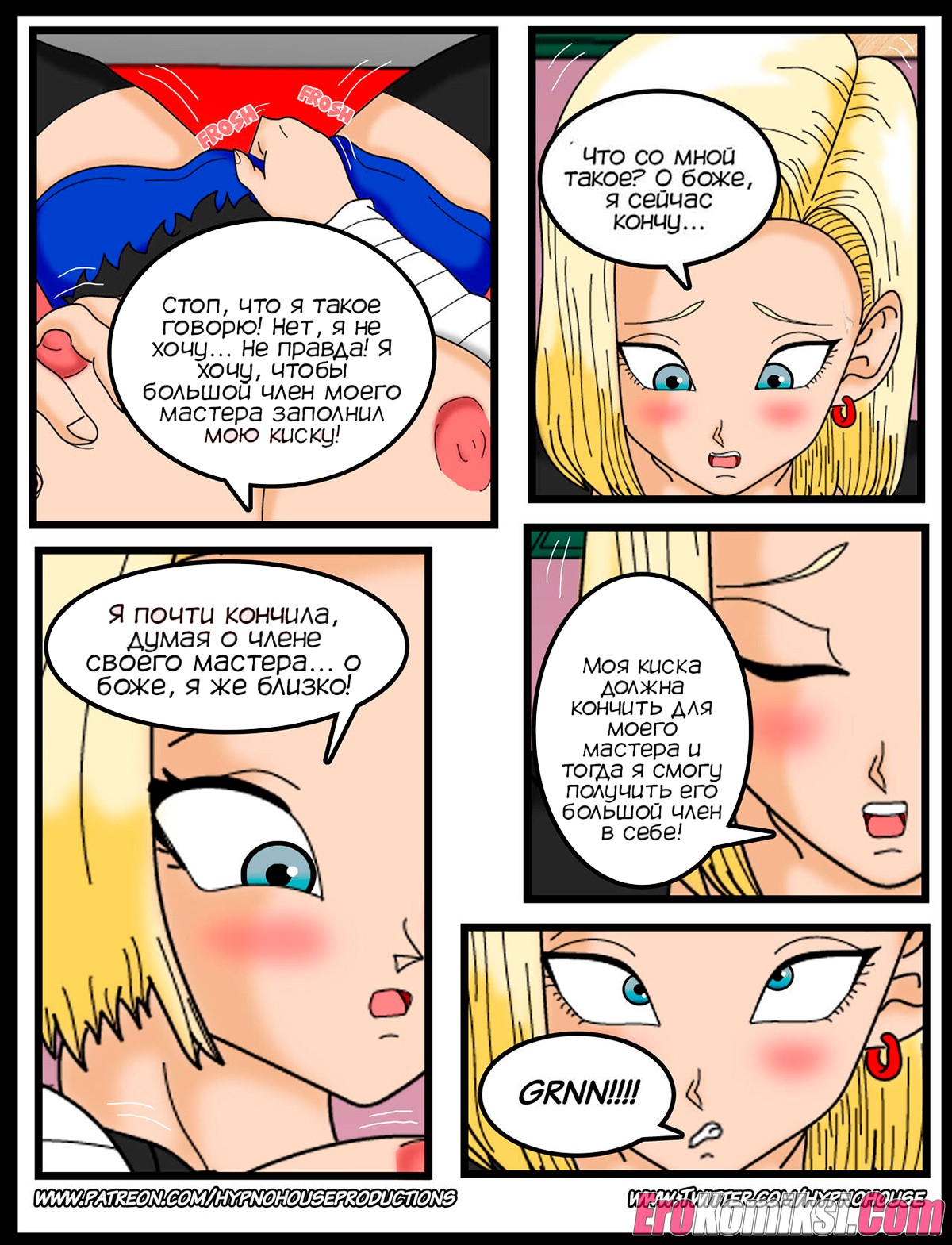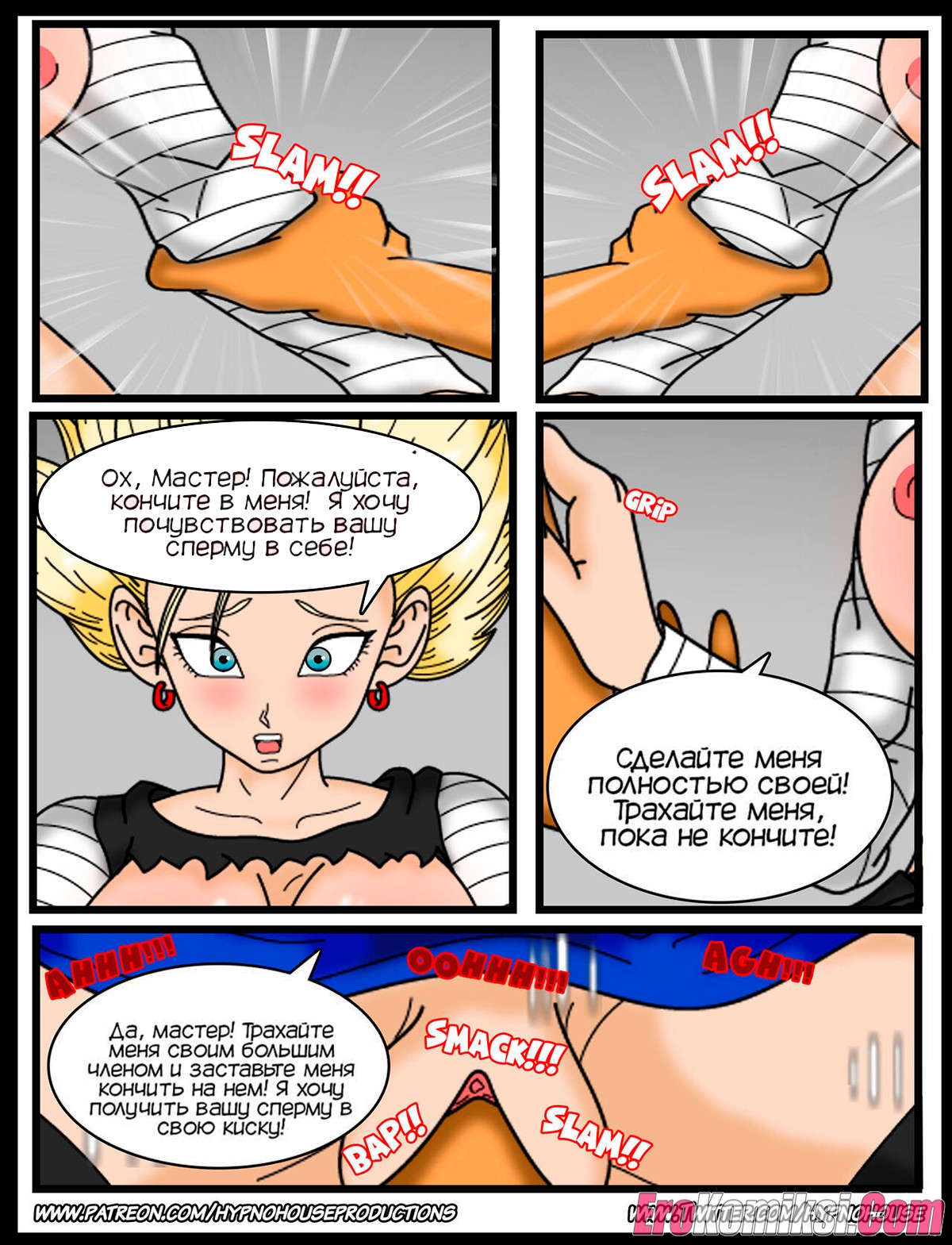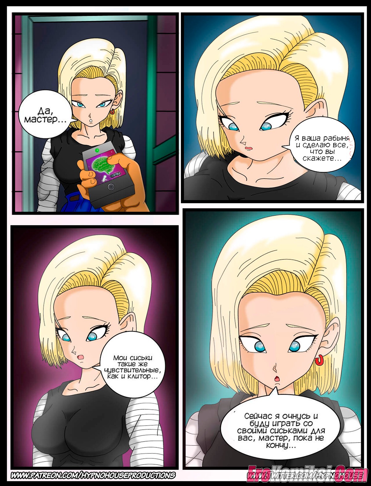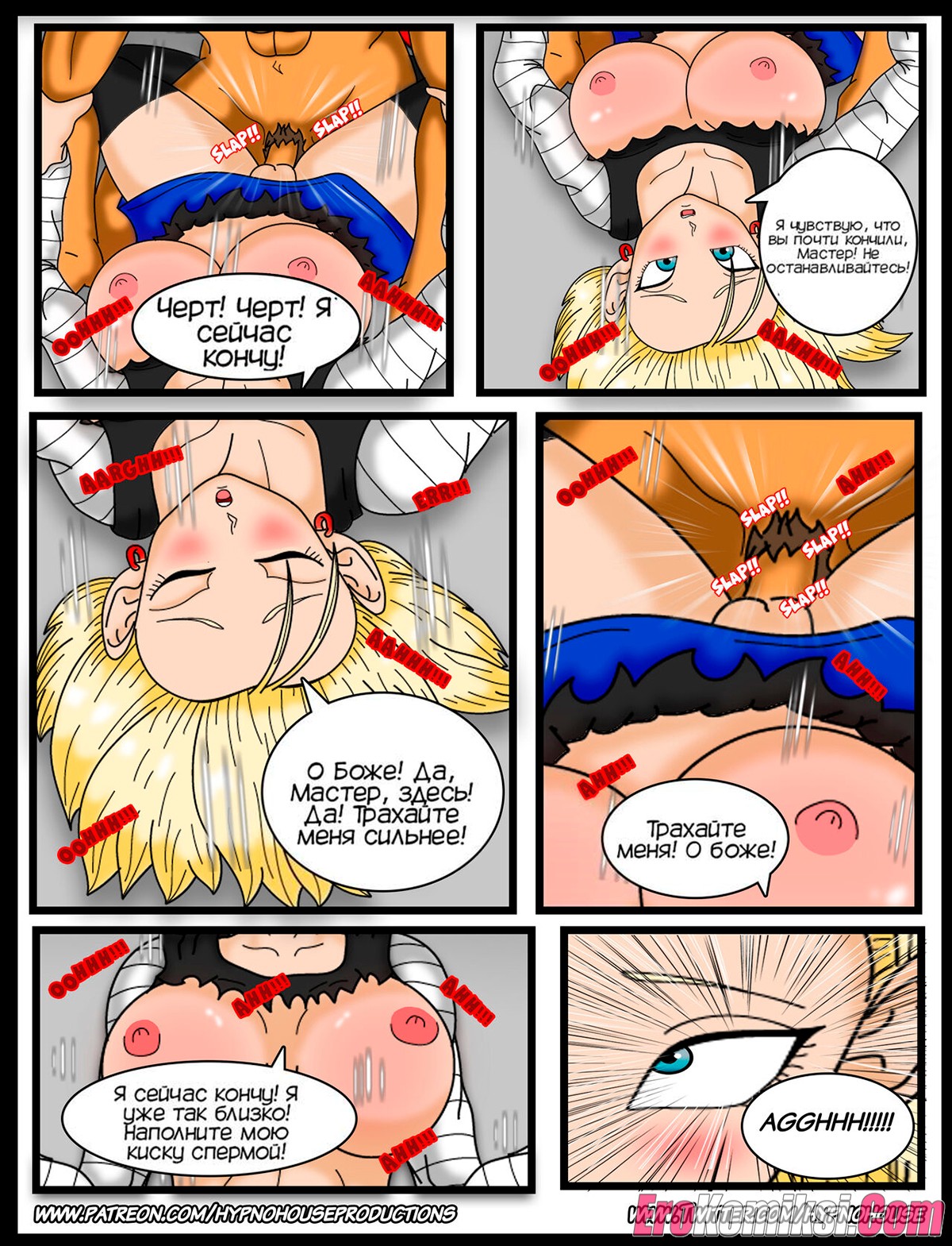 Порно комикс Двойная функция Андроида 18 и Бульмы. Парень затуманил сознание двух сисястых красоток и теперь они стали его секс рабынями. Сучки готовы исполнять все его сексуальные желания, отсасывая его большой хуй и трахаясь с ним.