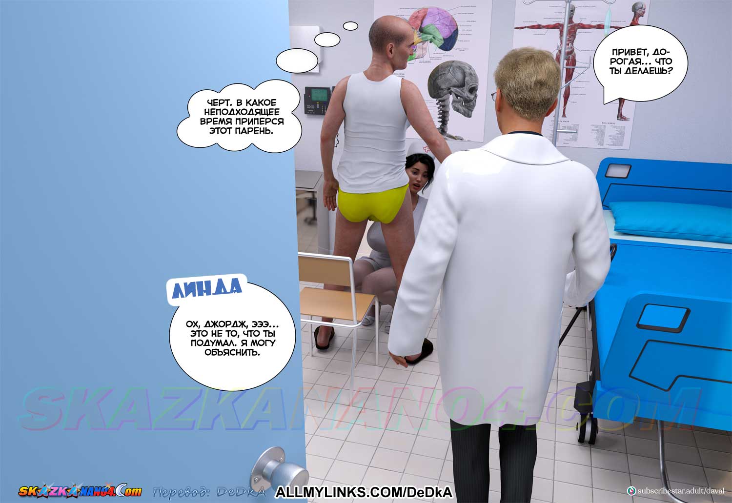 Порно комикс Дядя Питер. Часть 1. Похотливый проходимец Питер Джонс в свое время помог оплатить лечение от бесплодия матери доктора Джорджа, после чего она и смогла забеременеть и родить Джорджа. А теперь он уже самому Джорджу обещает помочь с повышением, а расплатиться за это натурой он понуждает жену Джорджа, сексуальную медсестричку Линду…