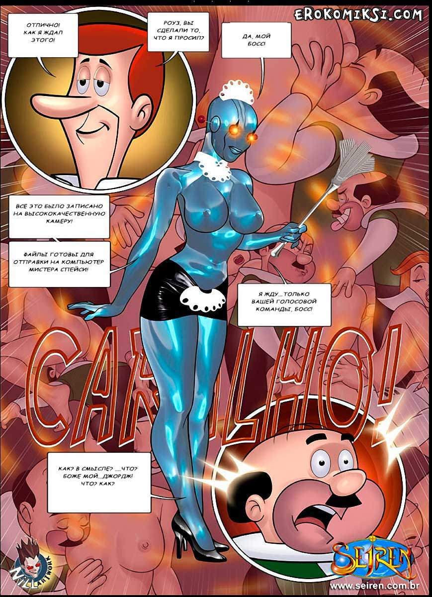 Порно комиксы пародии на мультики продолжаются! Во 2-ой части данной истории вы узнаете, как Джуди Джетсон вошла в дом и увидела, что её муженёк, Джордж, трахает подругу их дочери! Это могло вылиться в грандиозный скандал! Но, выяснилось, что это не Джордж соблазнил девушку, а она его! Ну, это уже совсем другое дело! Тут волноваться не о чем! Муж ни в чём не виноват! Он верен своей жене…