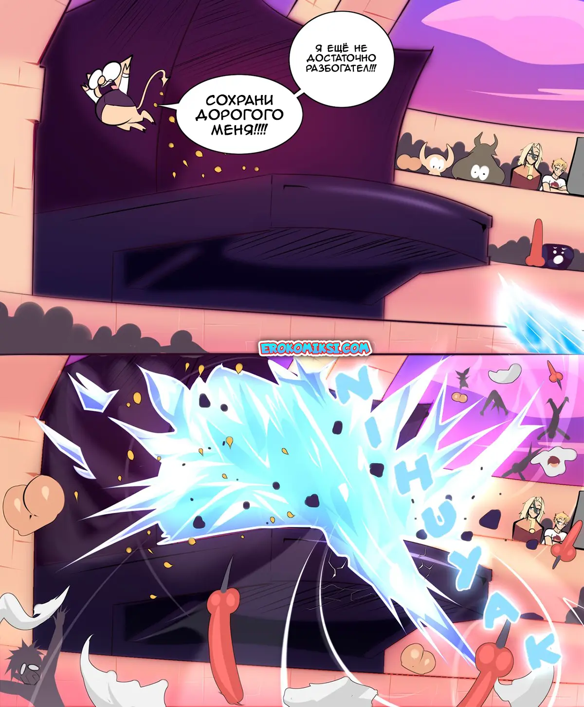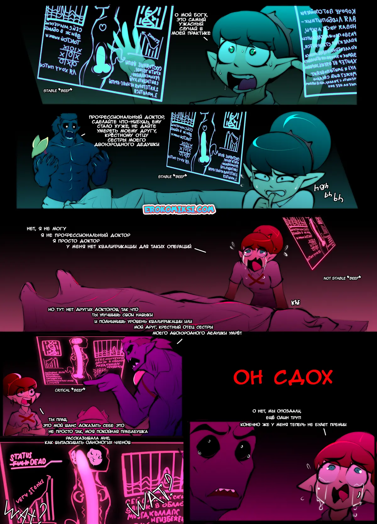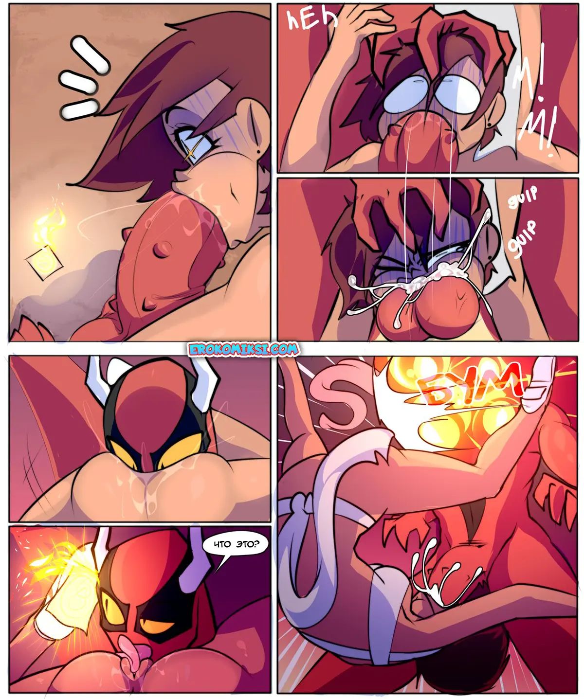Порно комикс Ебатум Сракум. Эмити и Луз отправились на турнир под название хекс хекс. Там девушкам стало ясно, что им придётся сражаться с полудемоном, который не прочь их отодрать…