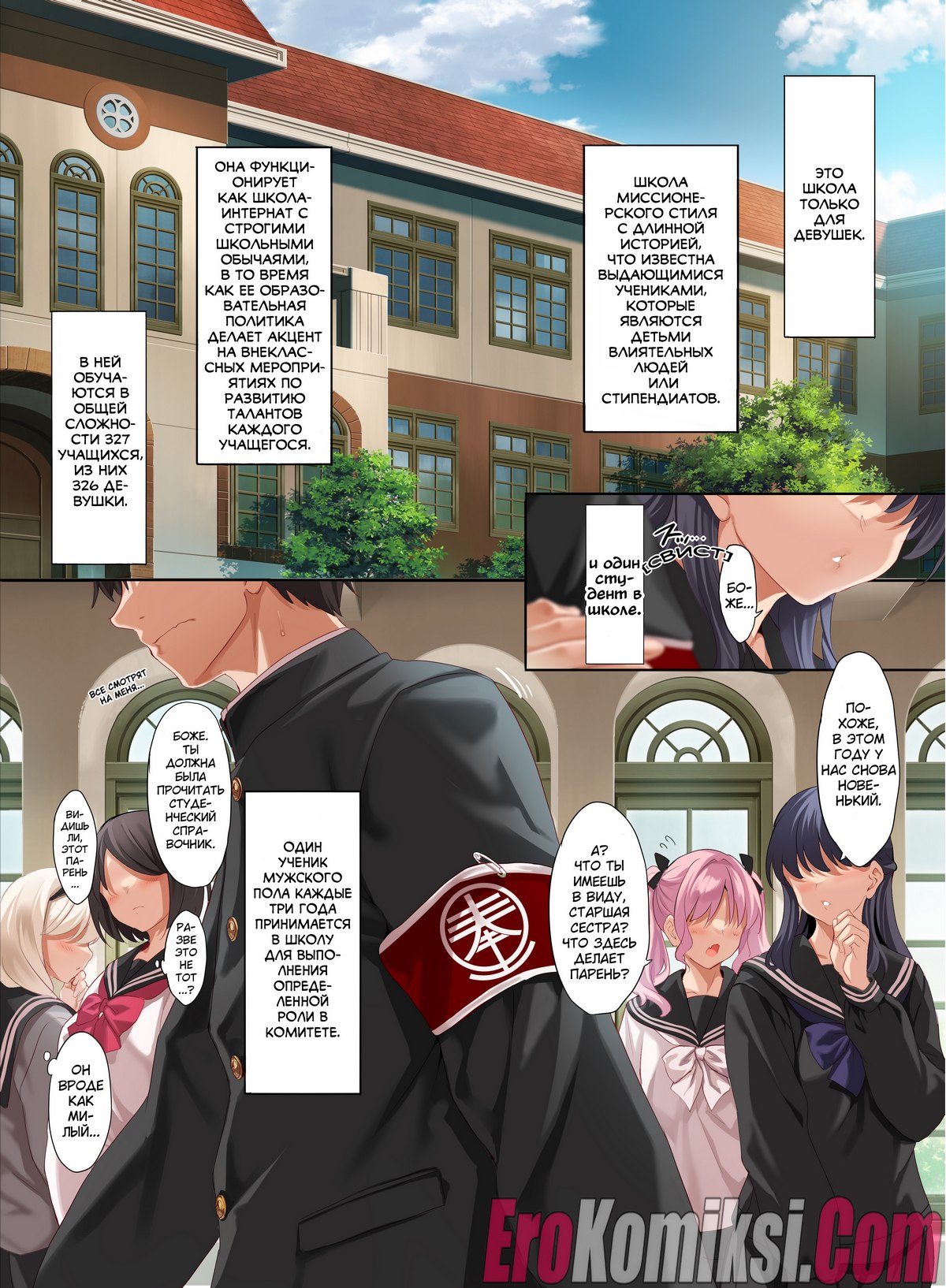 Порно комикс Единственный парень в Академии для девушек, что обязан кончать. Да, такая должность парня, удовлетворять похотливые желания сексуальных девушек, ведь им тоже требуется разрядка…