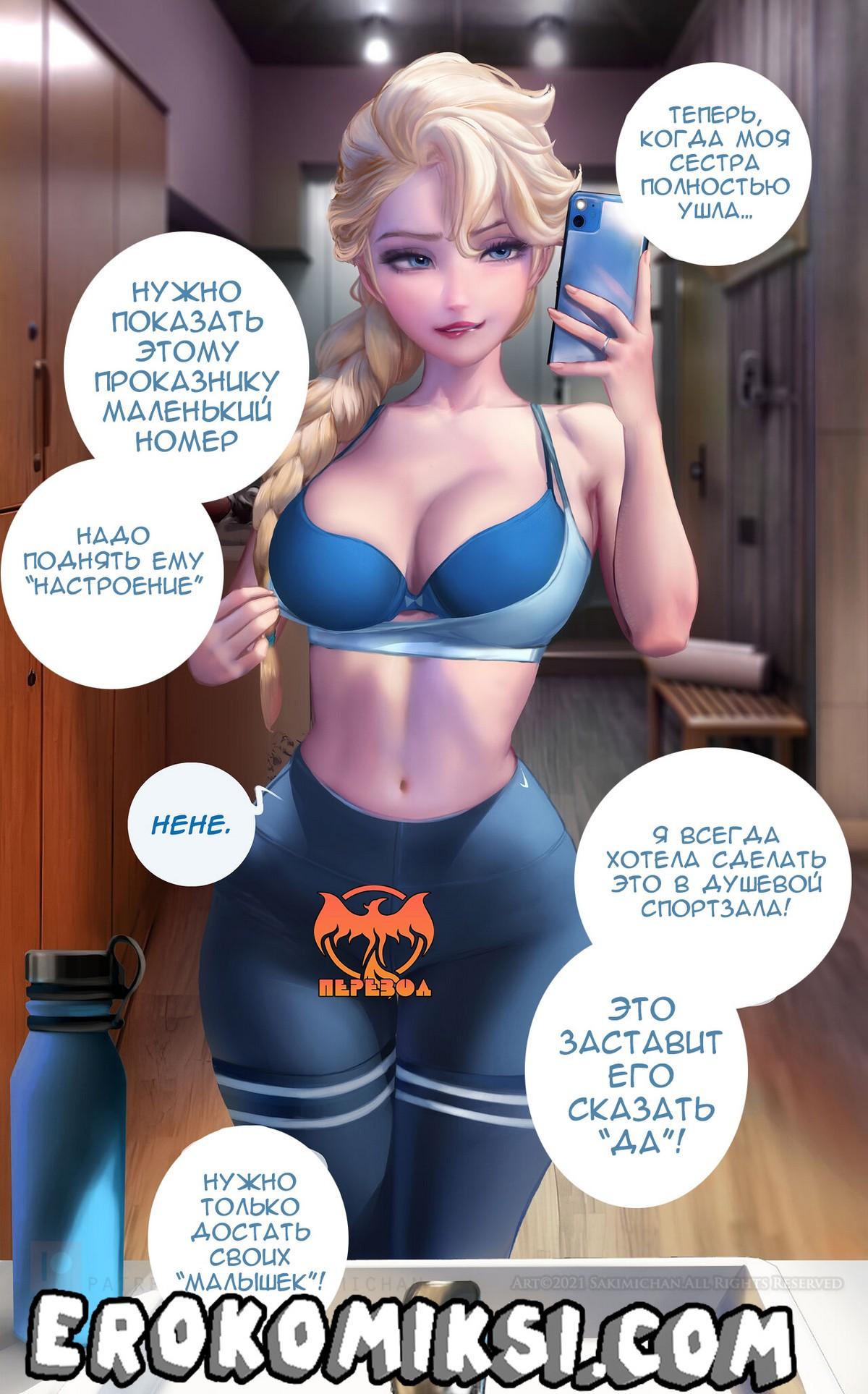 Порно комикс Эльза в раздевалке. Горячая и спортивная Эльза после тренировки решила сделать пару сексуальных фото для своего парня. После чего он быстро пришёл в раздевалку, чтобы выебать узкую киску Эльзы…