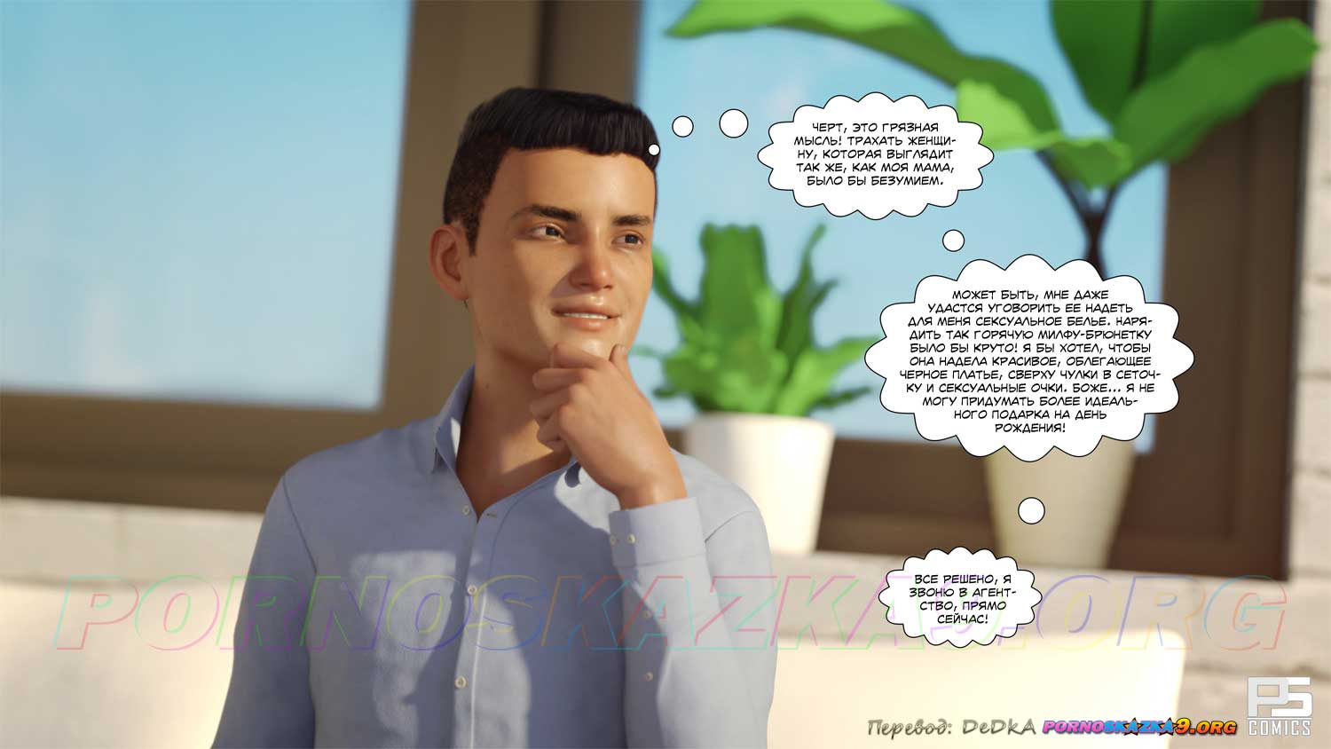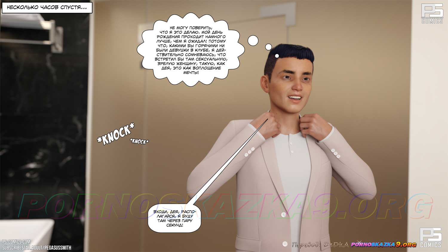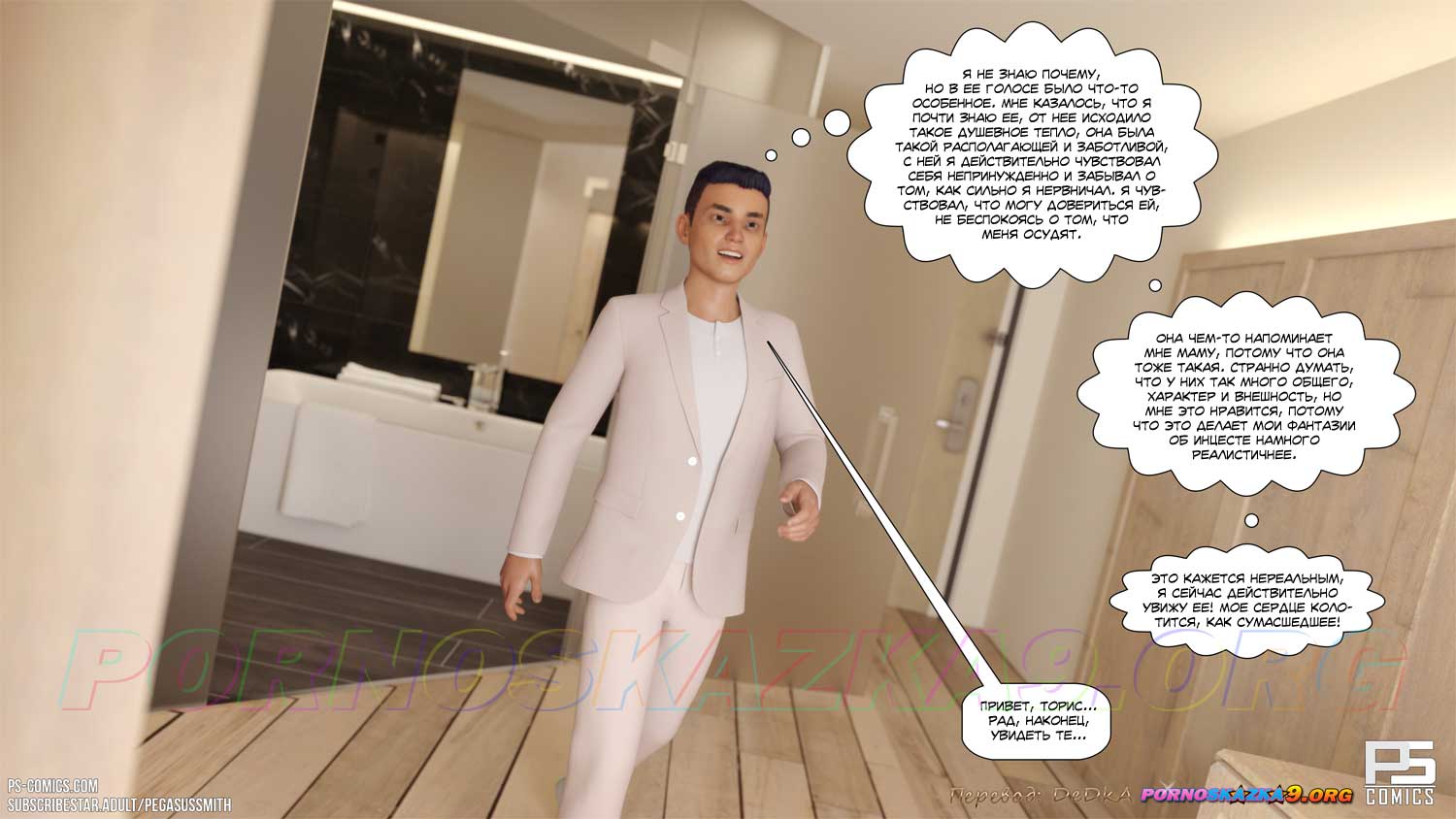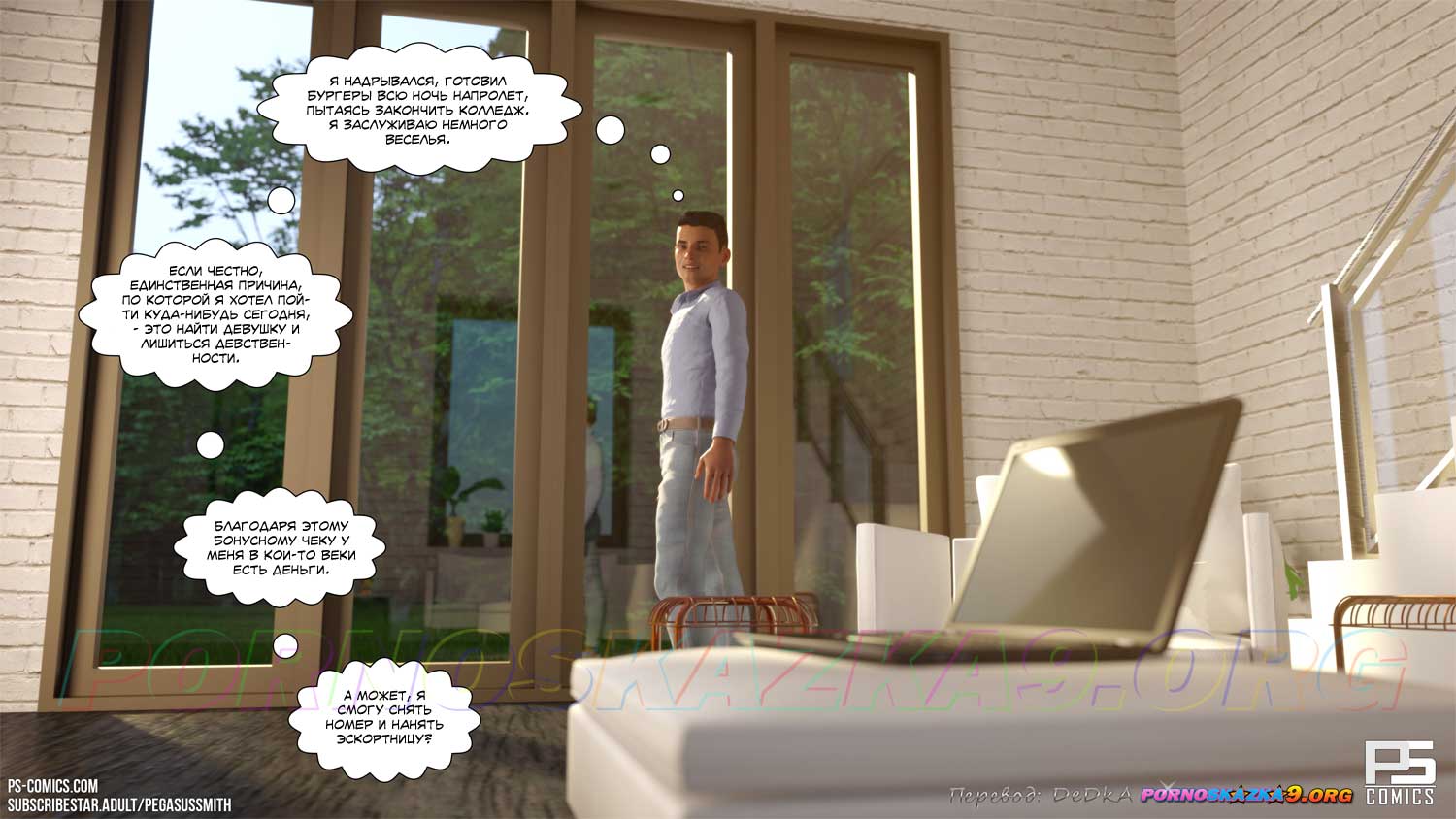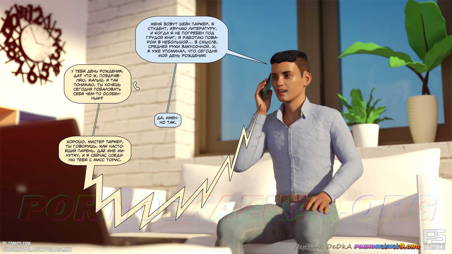 Порно комикс Эскорт. Часть 1. В день своего восемнадцатилетия Шейн Паркер твердо решил, что ему пора стать мужчиной. Он выбрал на сайте эскорт-агентства понравившуюся ему женщину и позвонил в агентство. Все сложилось идеально, Шейн снял номер в отеле и вечером в номере отеля именинник с нетерпением ждал свою красавицу…