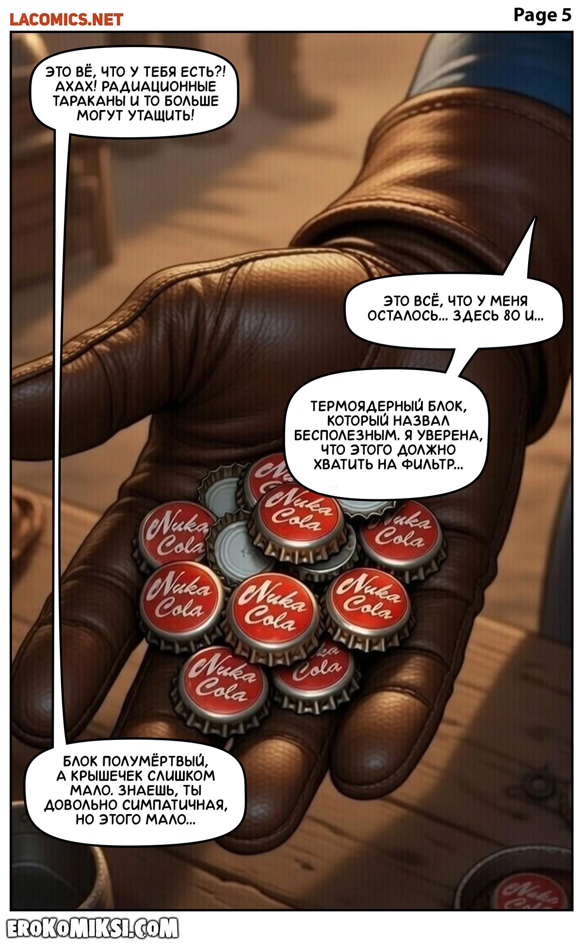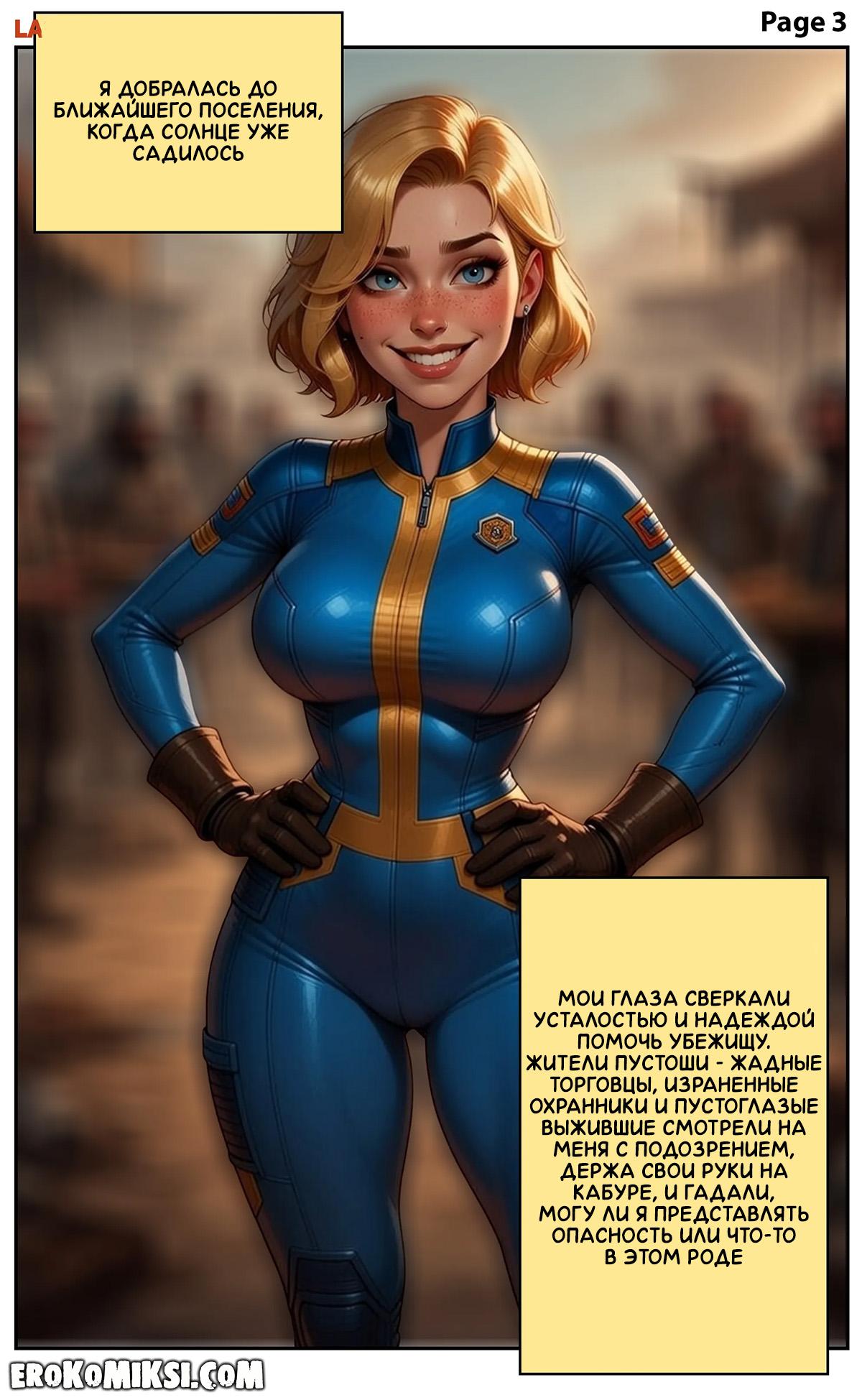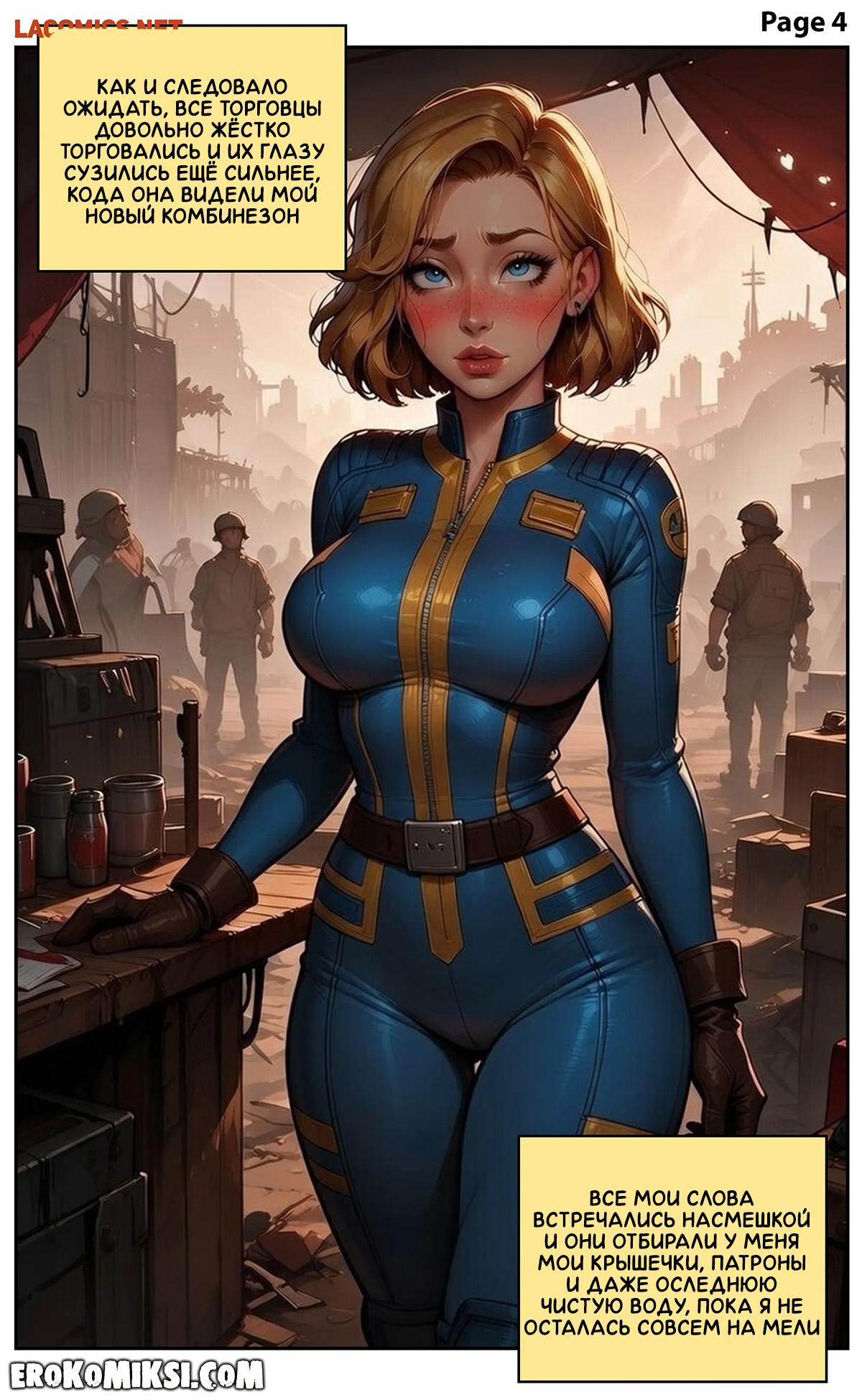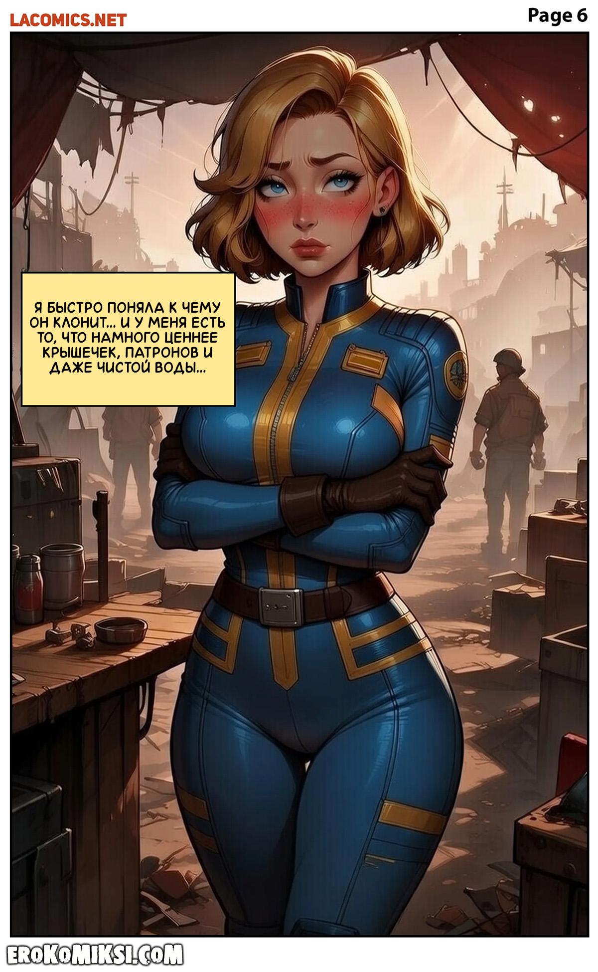Порно комикс Fallout. За пределами убежища. Сара выходит из убежища в поисках фильтра для воды, но её денег оказывается недостаточно, поэтому она решает договориться с торговцем иным способом, и позволяет ему как следует оттрахать свои тугие дырочки…