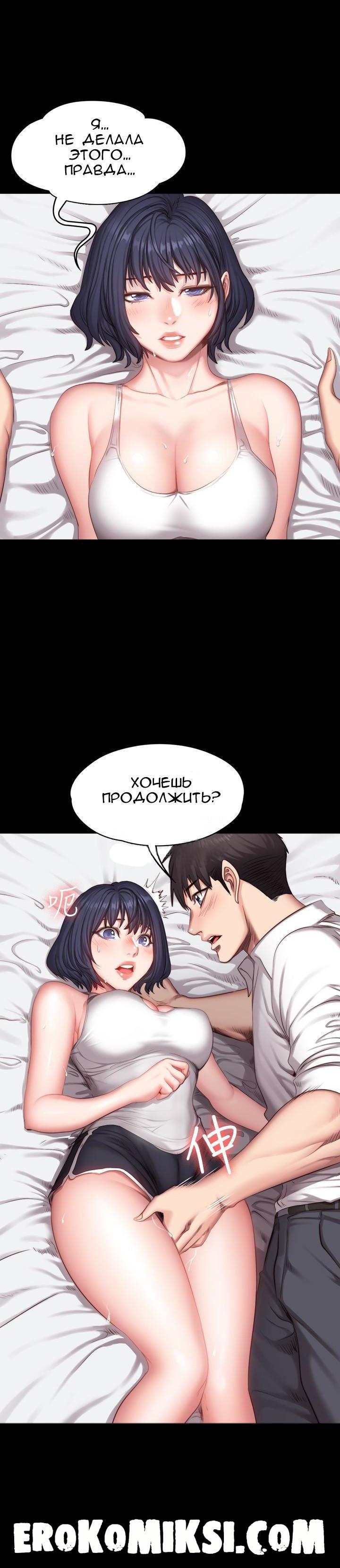 Порно комикс Фитнесс. Часть 22. Без цензуры!!! Хенсу требует, чтобы Сангми созналась в том, что в ту ночь она трахнула его, однако девушка всё отрицала. Тогда Хенсу начал играть пальцами с её киской, Сангми пыталась его остановить, однако её это дико возбуждало, а после того, как Хенсу её поцеловал, она совсем поддалась возбуждению и кончила…