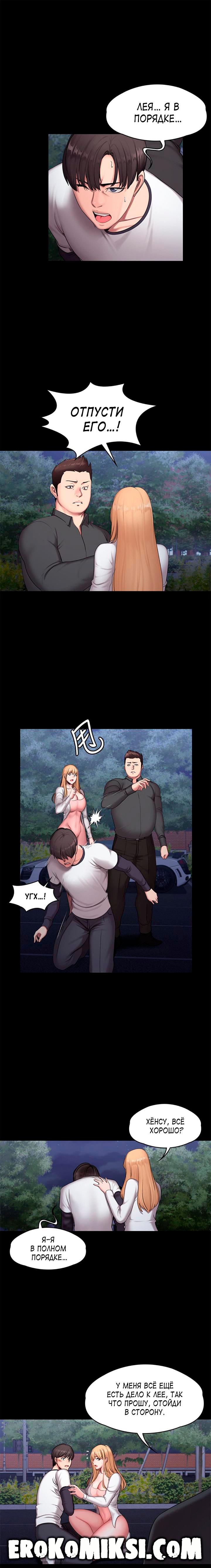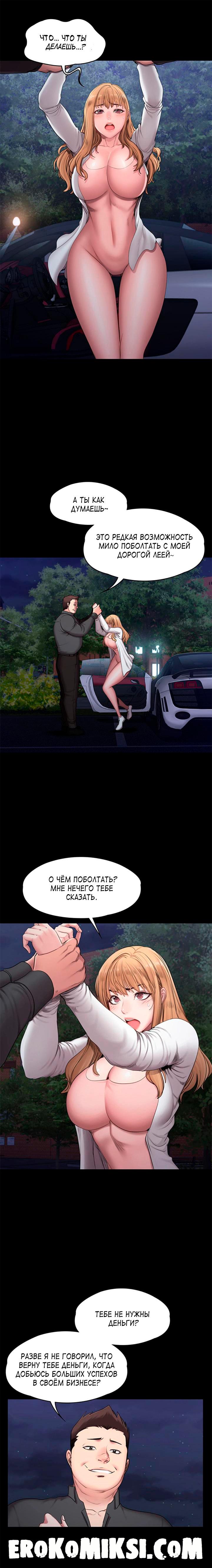 Порно комикс Фитнесс. Часть 57. Без цензуры!!! Лея видит в окно, как преследовавшая её машина уезжает и говорит Хенсу, что всё нормально. Подойдя к своей машине, на Лею нападает незнакомец, который требует от неё денег на какое-то дело, в котором она была ранее замешена. В момент их разборки подходит Хенсу, который всё же решил проверить что произошло с Леей. Он просит незнакомца оставить девушку в покое, но получает звездюлей…