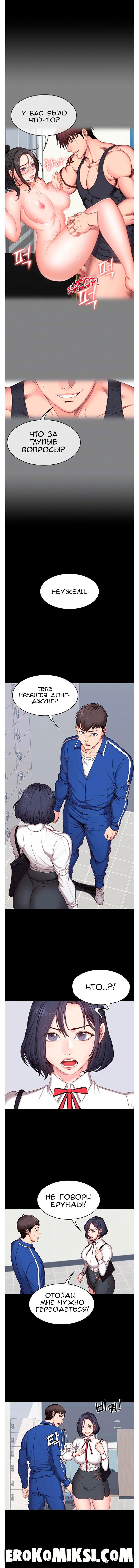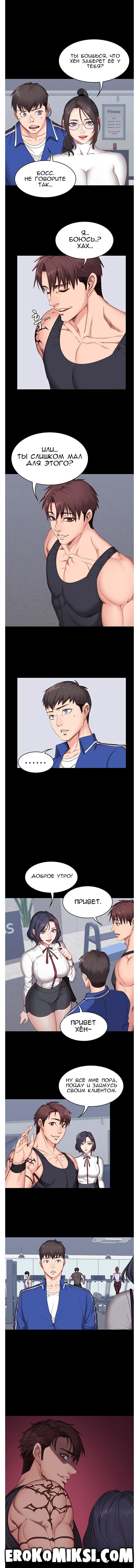 Порно комикс Фитнесс. Часть 7. Без Цензуры!!! Донг-Джу ссорится со своей клиенткой, которая занималась с Хенсу. А Хенсу тем временем ссорится с Сангми, из-за того, что она записалась на тренировки к Донг-Джу. Сон-Чжу, намекает Хенсу, что скорее всего, уже сегодня, Донг-Джу трахнет Сангми…