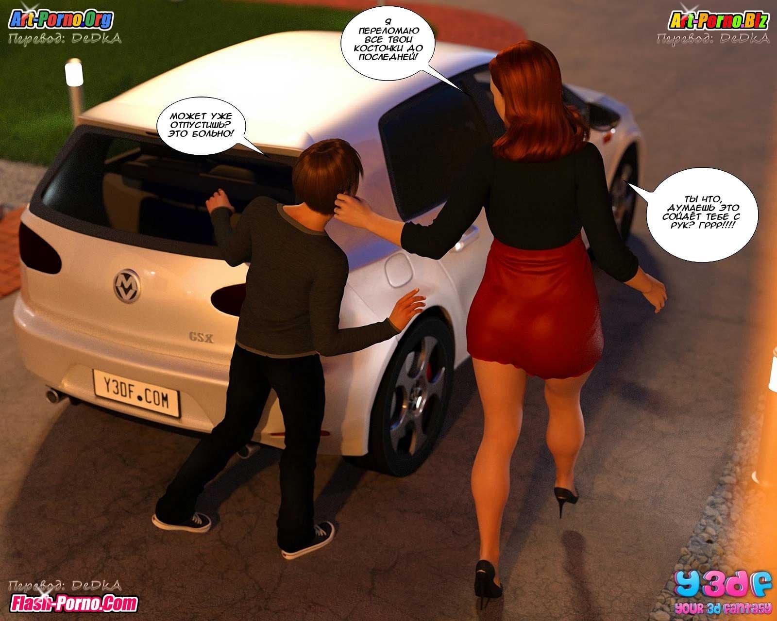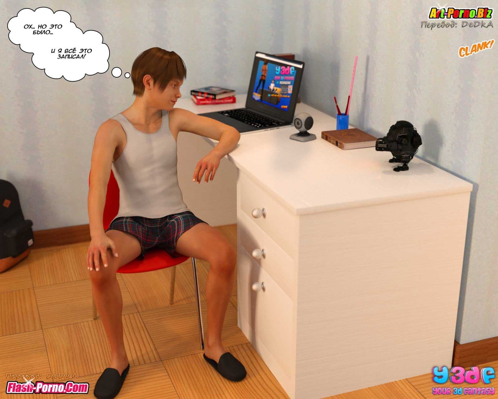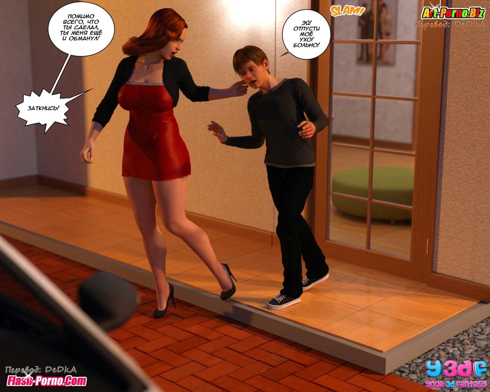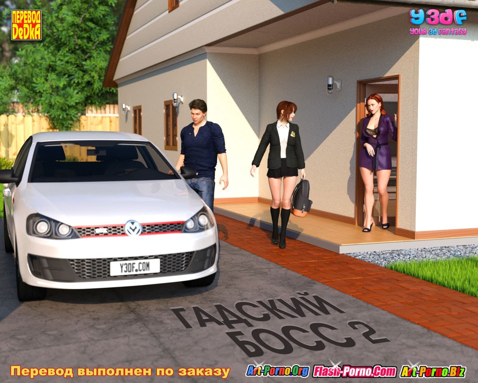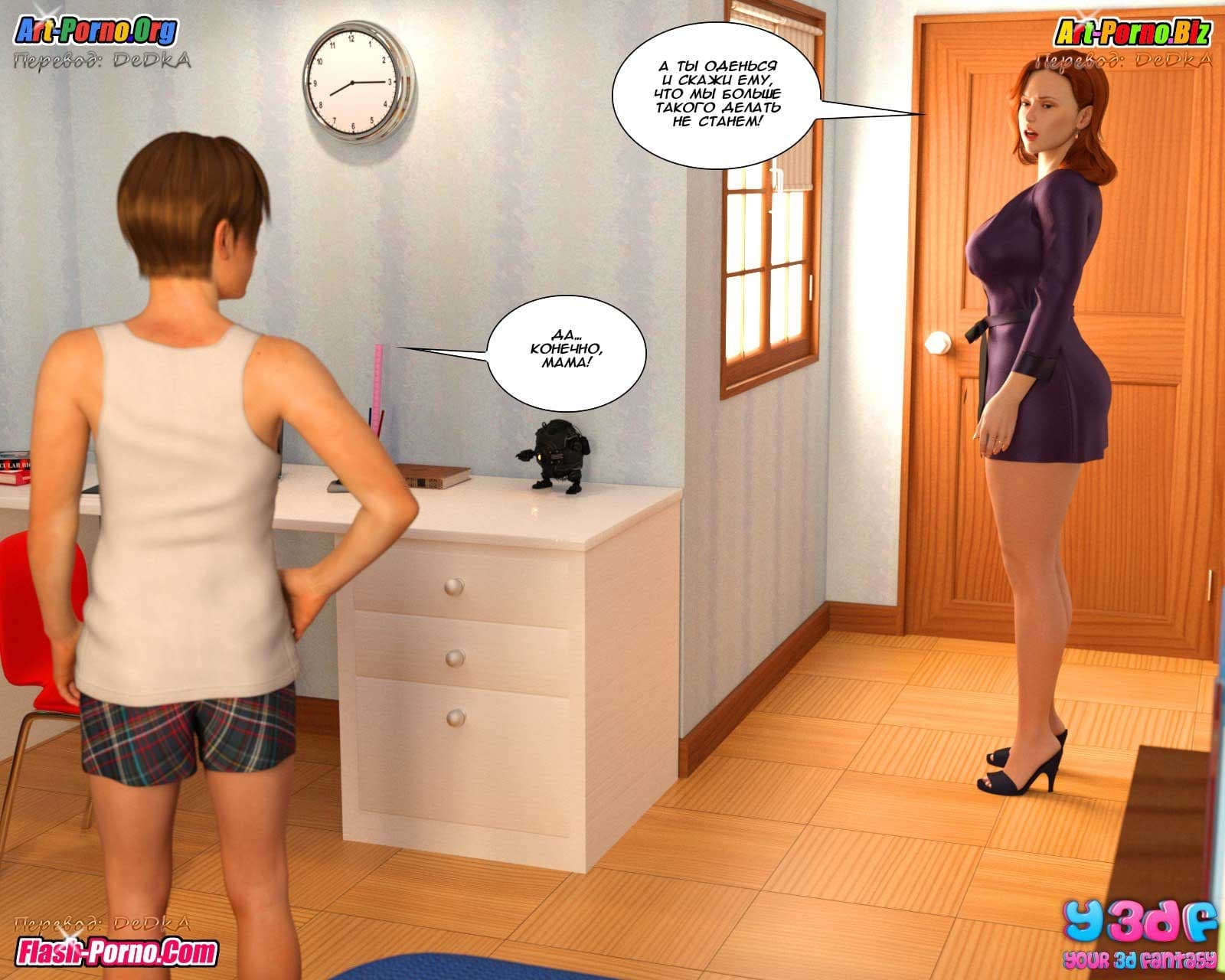 Порно комикс Гадкий босс 2 начинается с того, что утром, Билли, жалуясь на болезнь, не пошёл на занятия. А когда папаша и сестра уехали, сказал мамаше, что ночью босс отца скинул сообщение, в котором настаивал, чтобы они включили веб камеру и трахнулись, а иначе он выложит в открытый доступ видео тех событий, что произошли прошлой ночью. Жасмин потеряла дар речи от таких заявлений, а ещё она была поражена тому событию, что её сын был согласен с условиями босса. Только, пока не понятно, было ли данное сообщение с требованием, или хитрец Билли всё это придумал на ходу, чтобы переспать с мамашей…