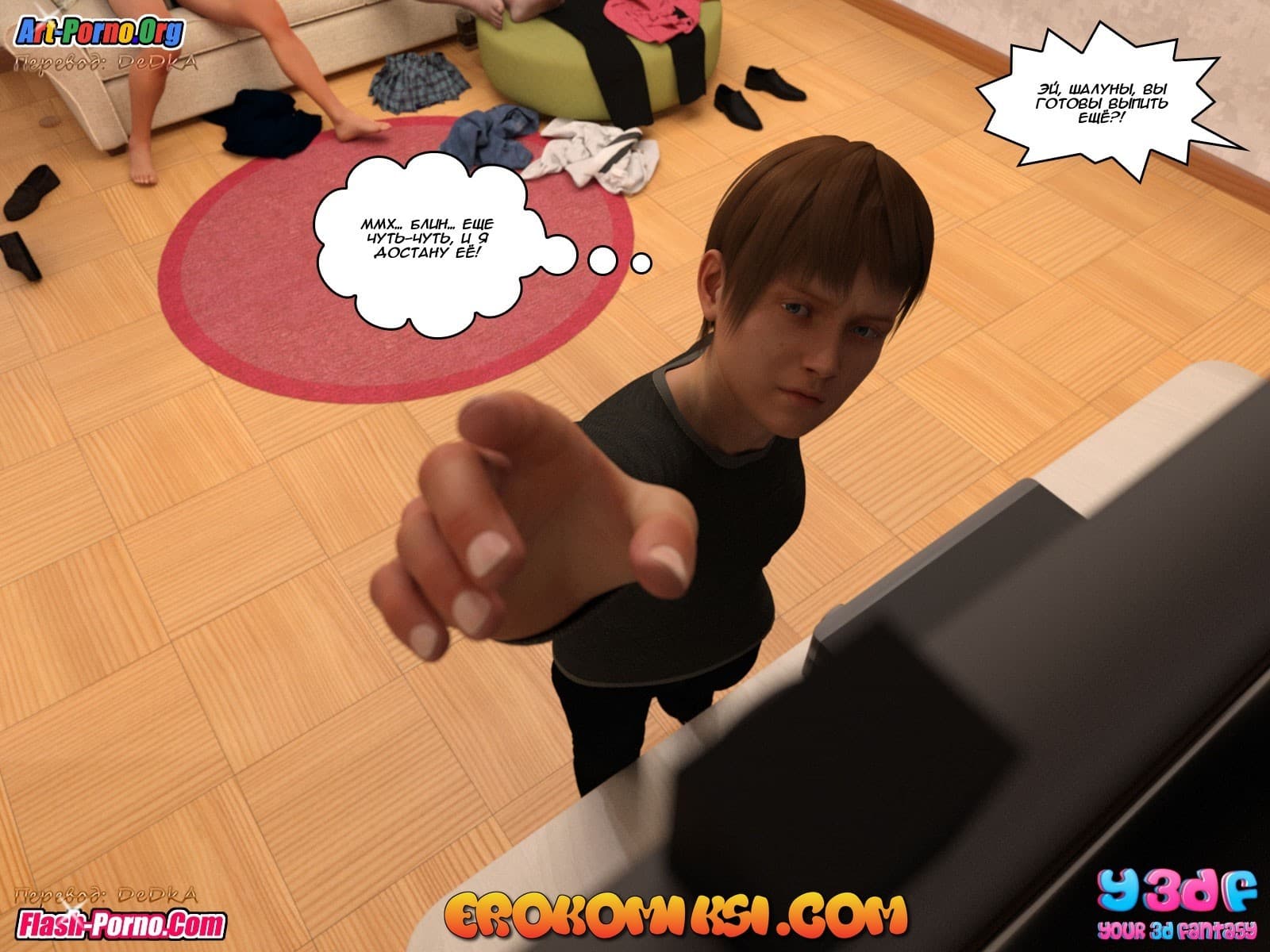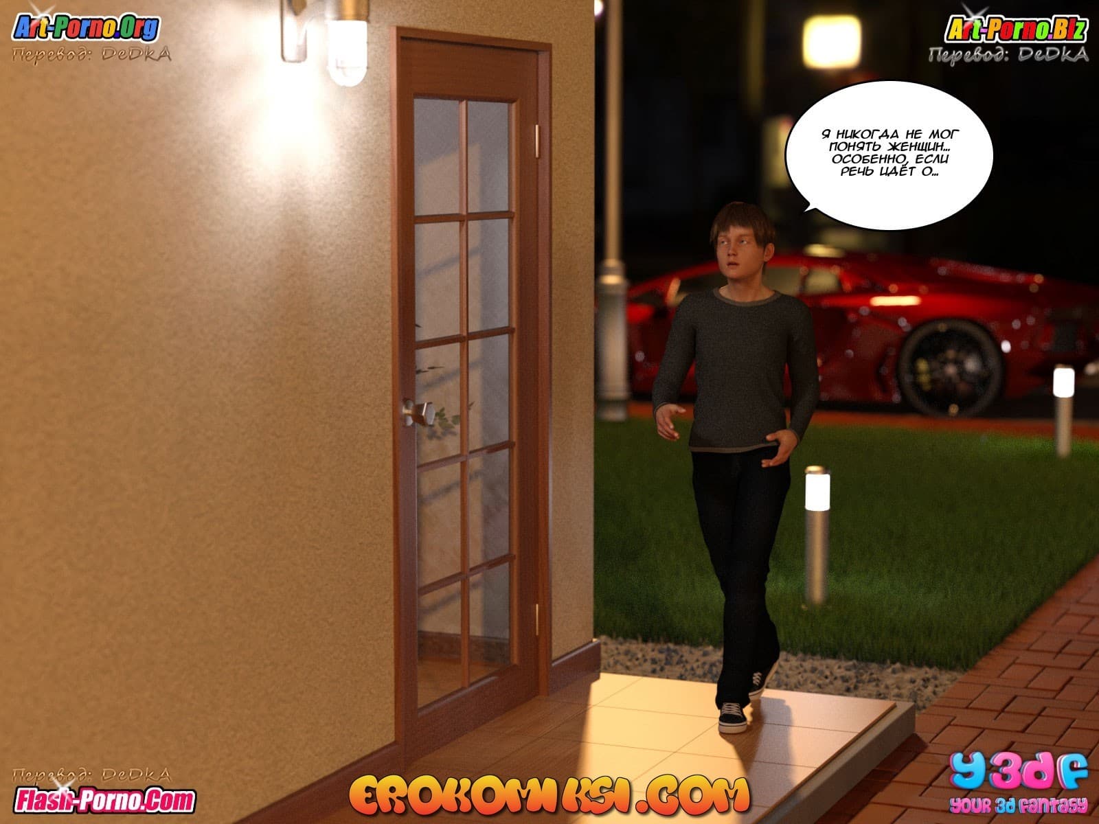 Порно комикс Гадкий босс 3 часть начинается с того, что добившись своего от взрослой мамаши, Билли был абсолютно уверен, что теперь ему незачем будет уговаривать милфу, и она будет ублажать его похоть по первому его требованию. Но, зря он на это рассчитывал! Подъехав к дому, Жасмин высадила парня, сказав в слух, что ей нужно заехать в аптеку, и при этом добавила, что-то типа, что случилось, уже никогда не повторится! Обескураженный Билли зашел в дом, и то, что он там вдруг увидел, ещё больше обескуражило его…
