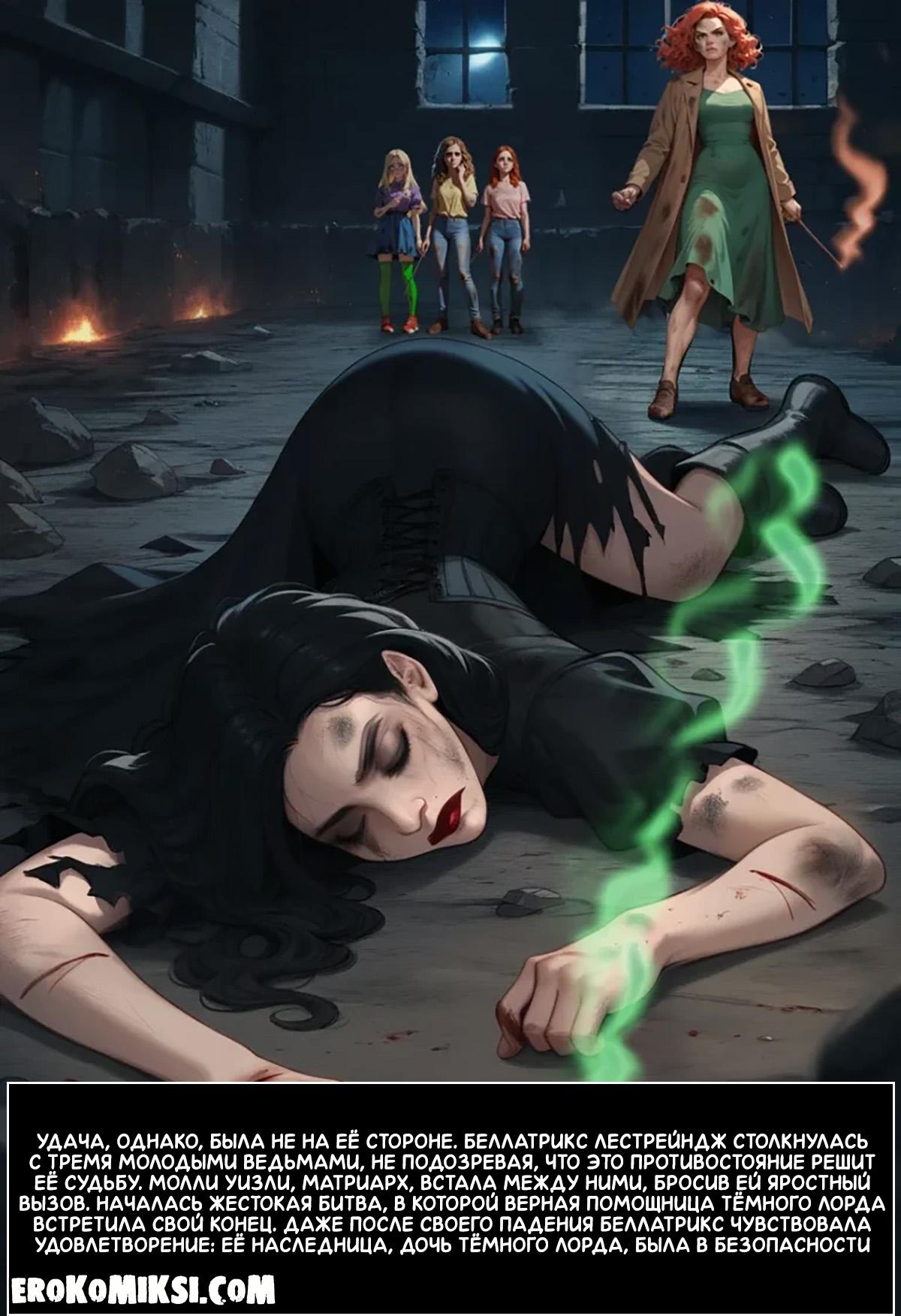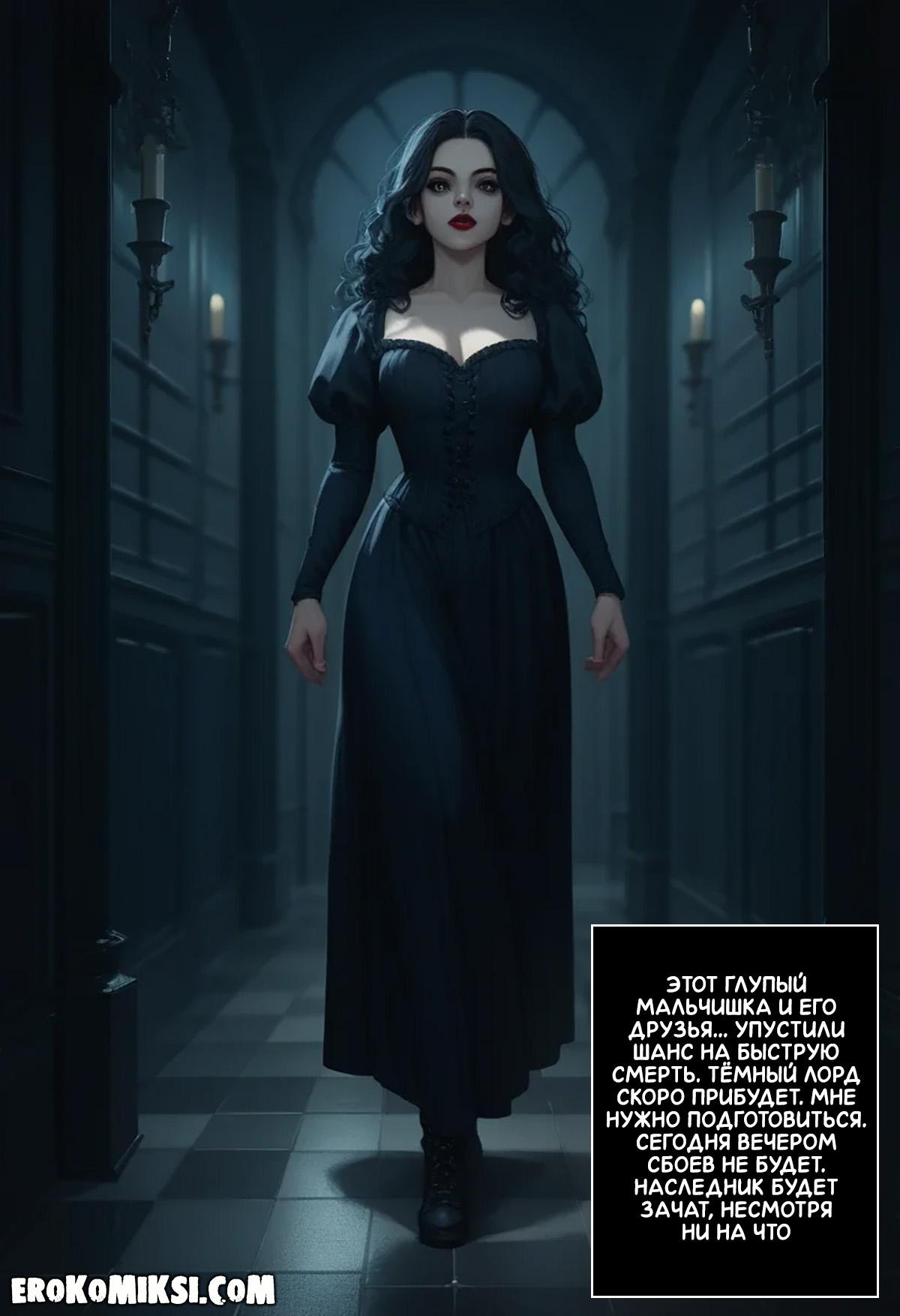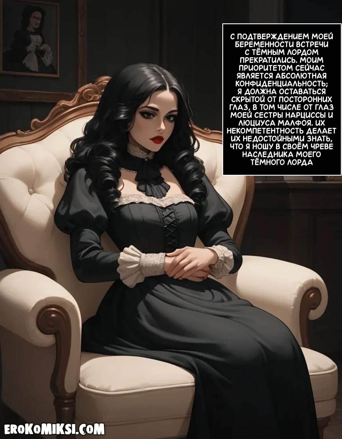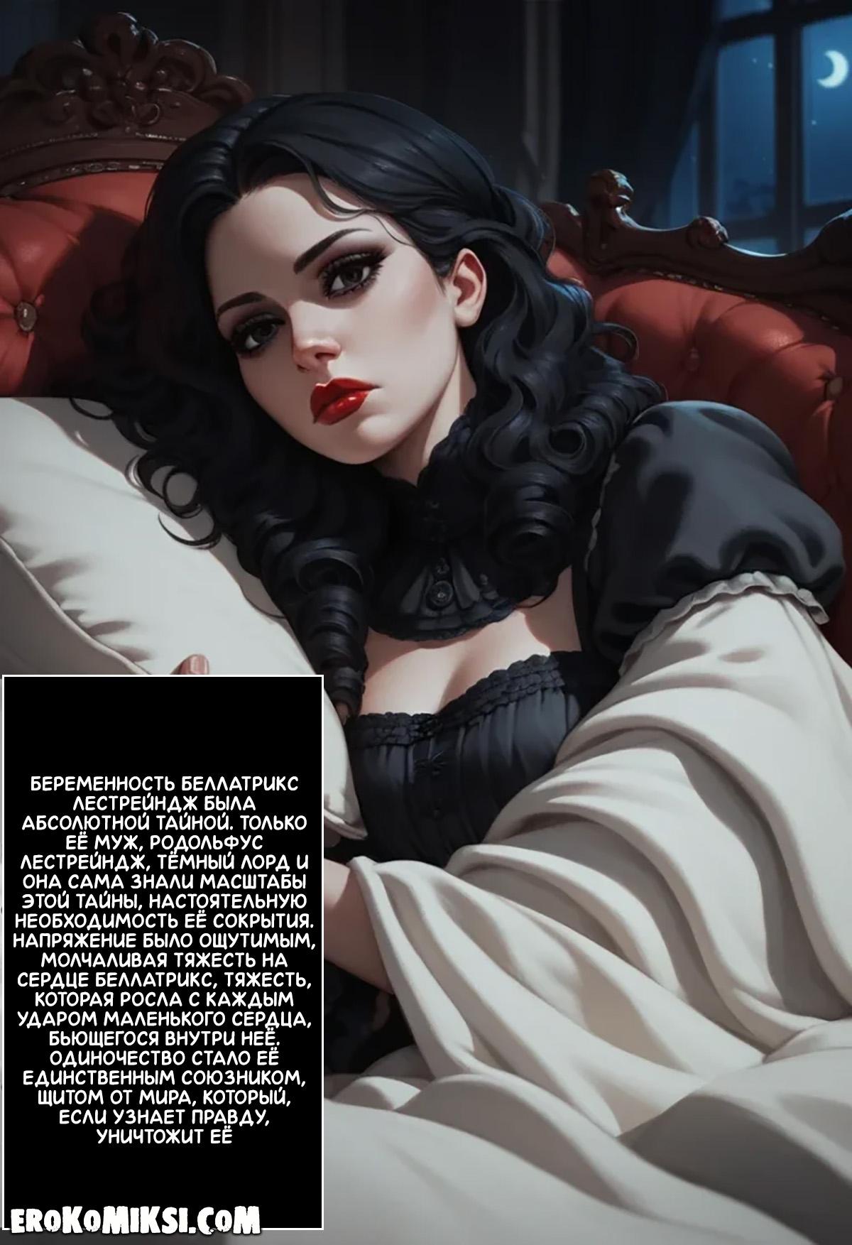Порно комикс Гарри Поттер. Беллатрисса Лестрейндж. Ночь зачатия. Беллатрисса была одержима Тёмным лордом и хотела родить ему ребёнка, поэтому, она каждую ночь приходила в его покои, где он трахал её тугую киску и наполнял своей горячей спермой…