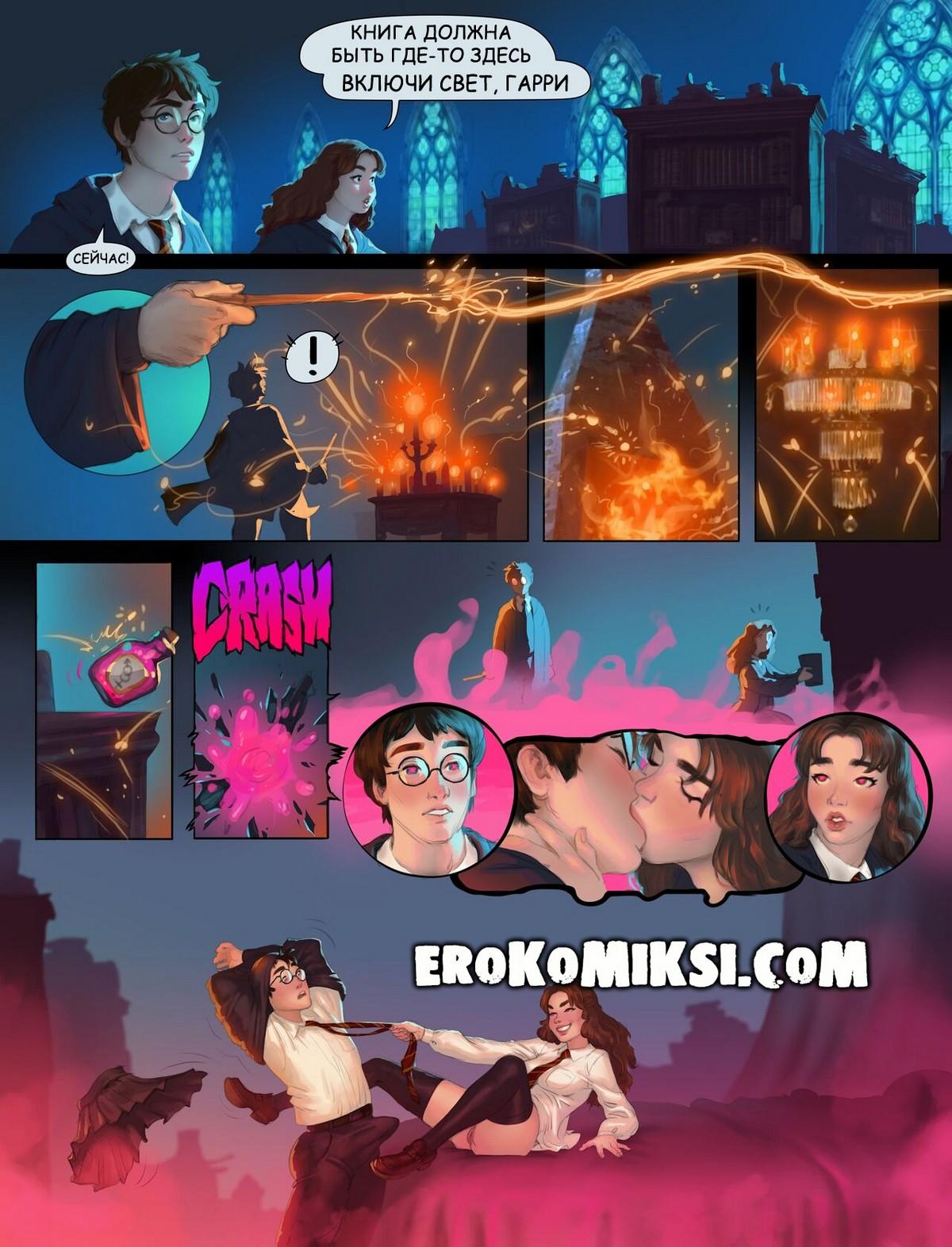 Порно комикс Гарри Поттер. Гарри и Гермиона в комнате требований. Гарри и Гермиона искали магическую книгу. И случайно уронила сильное зелье с феромонами. Феромоны так сильно заполнили комнату, что Гарри и Гермиона не смогли сдержаться от жёсткой ебли…
