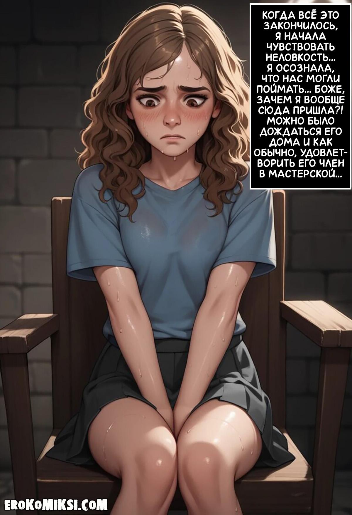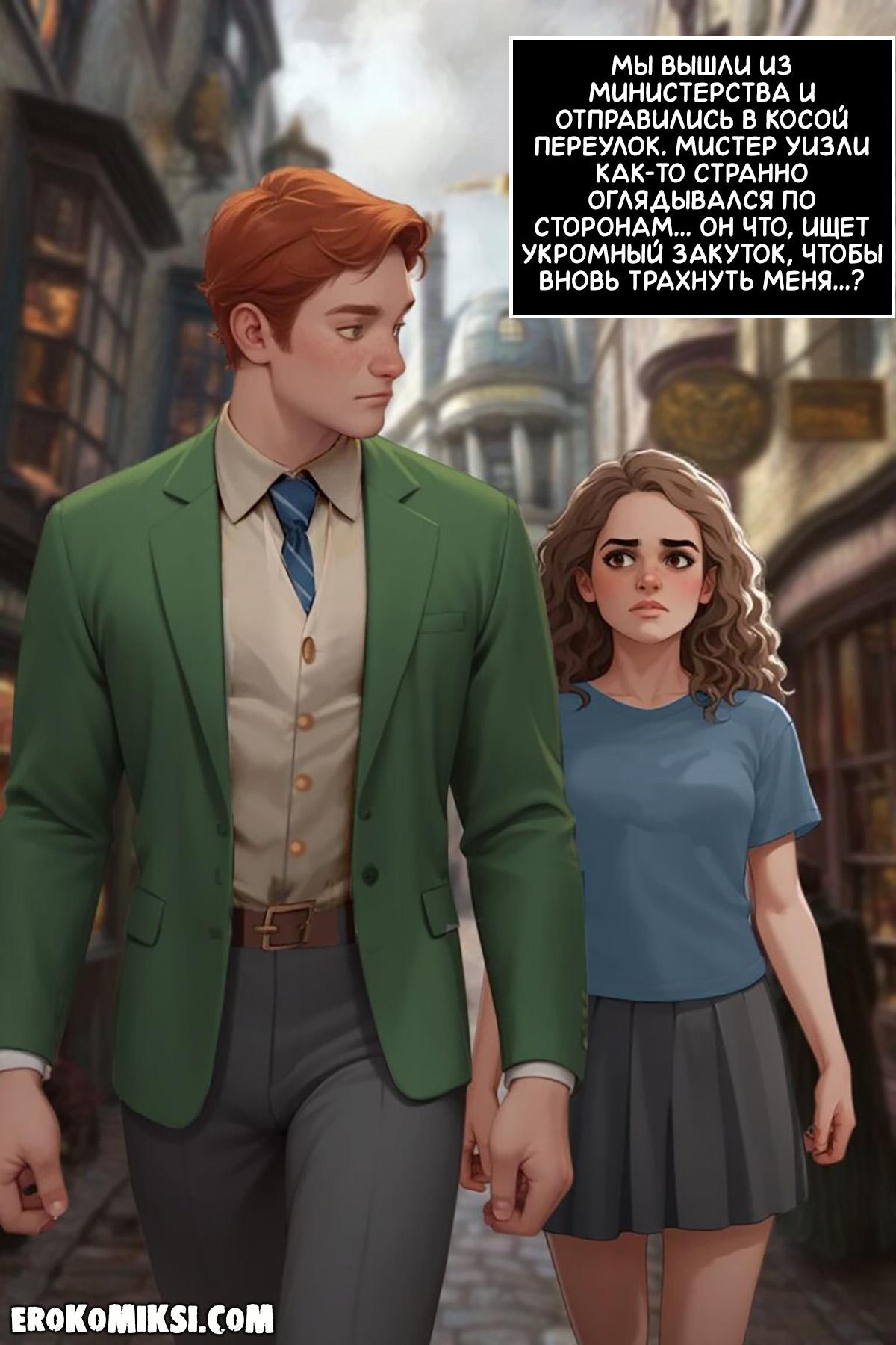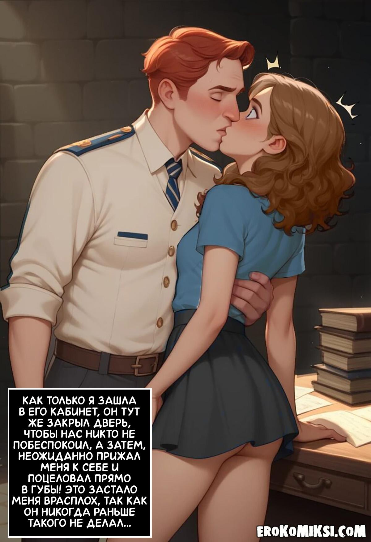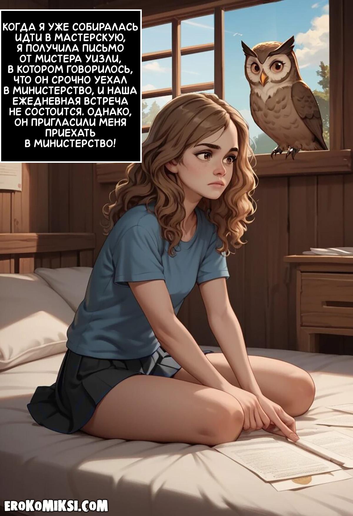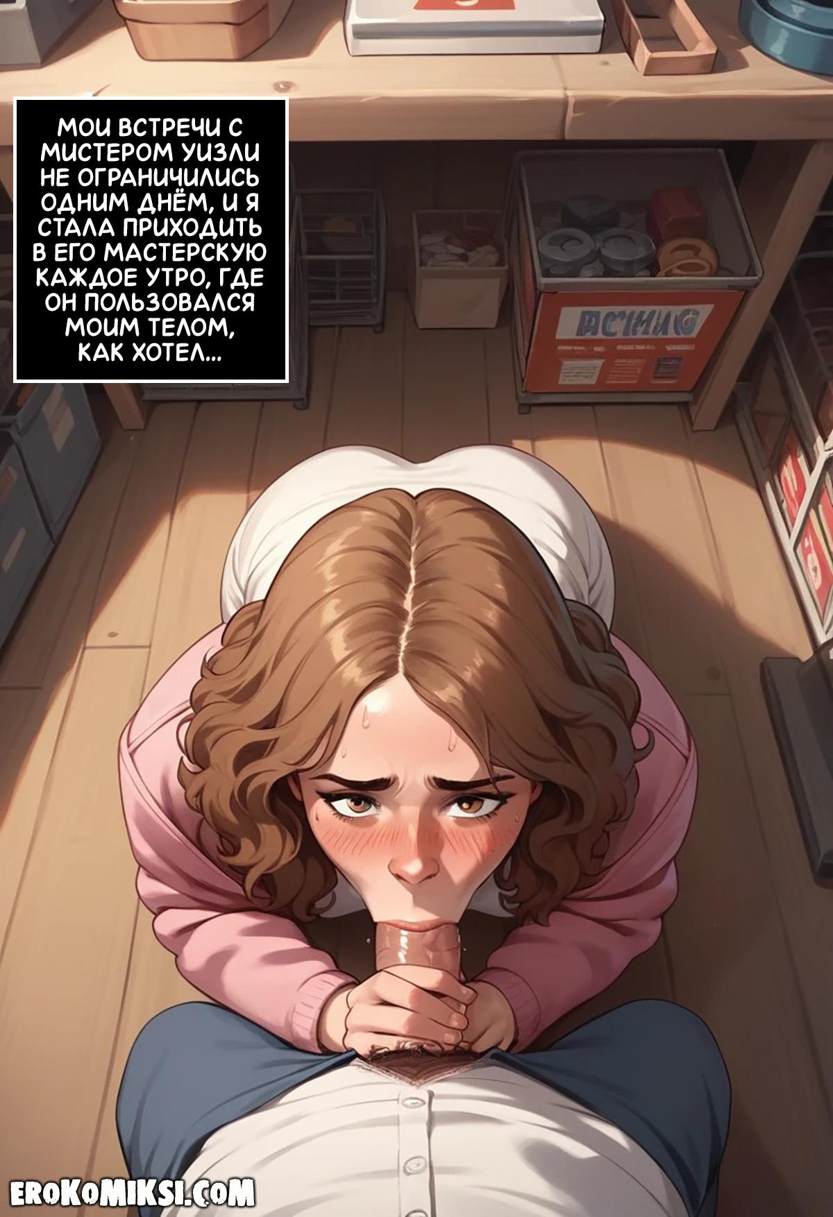 Порно комикс Гарри Поттер. Гермиона Грейнджер. Жизнь в Норе. Часть 2. Сексуальные встречи Гермионы и мистера Уизли продолжаются ежедневно, она приходит к нему в мастерскую, где мистер Уизли с удовольствием трахает тугие дырочки юной волшебницы…