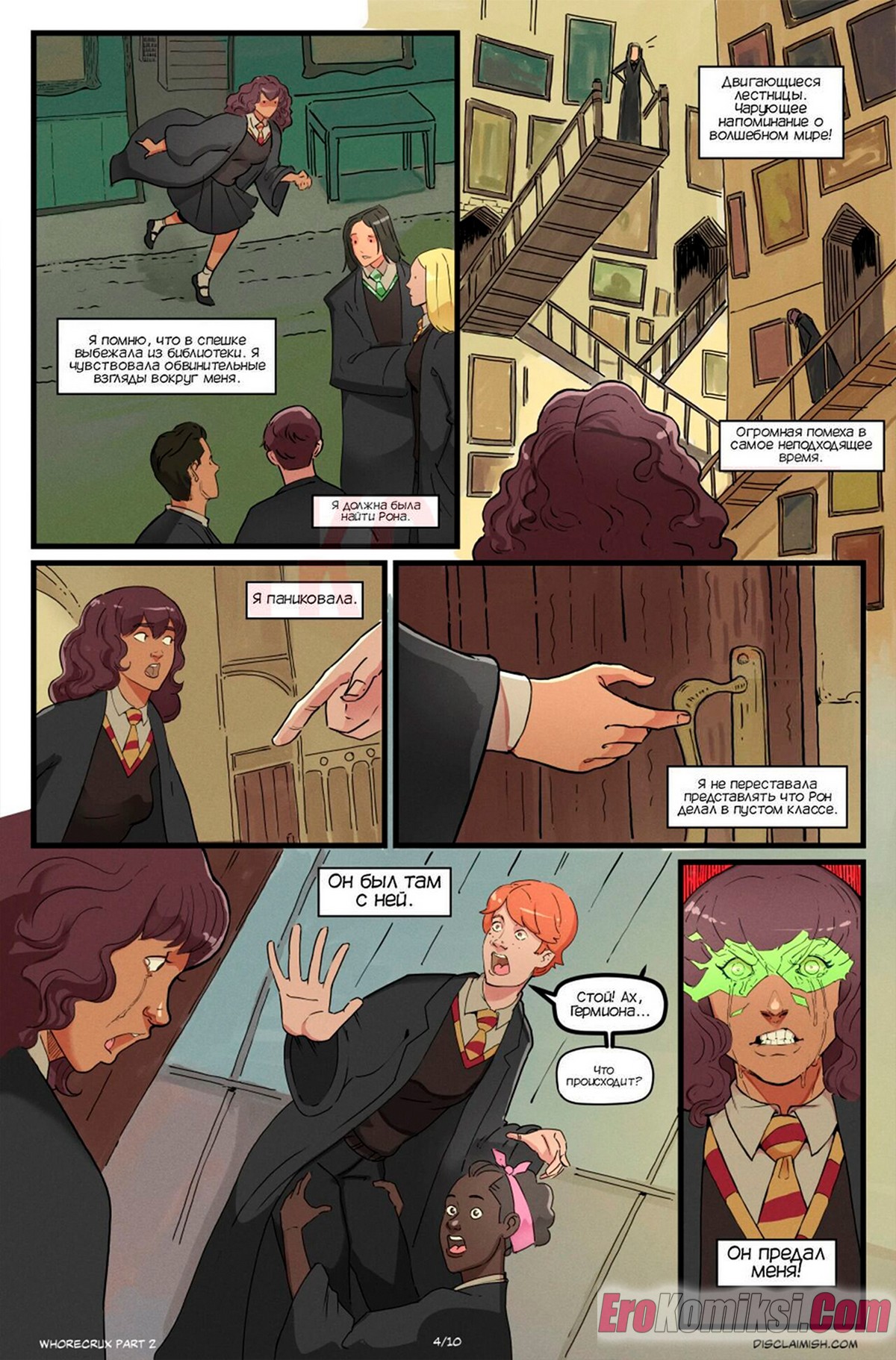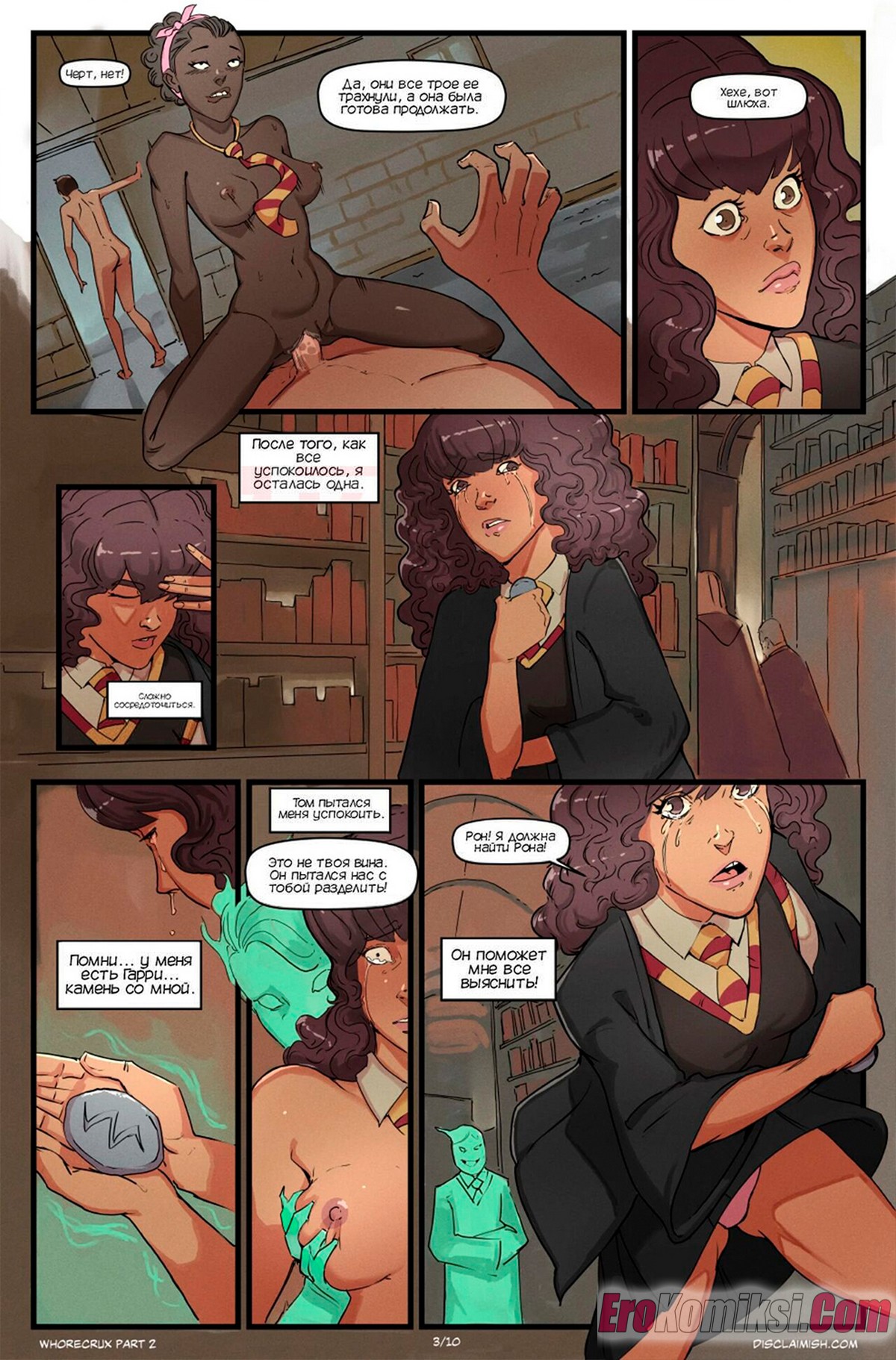 Порно комикс Гарри Поттер. Гермиона и Крестраж. Часть 2. Disclaimer Во время занятия горячая красотка Гермиона услышала, что новая девушка Рона на самом деле шлюха и ебется со всеми подряд. Она решила ее проучить за это и устроила ей незабываемую еблю.