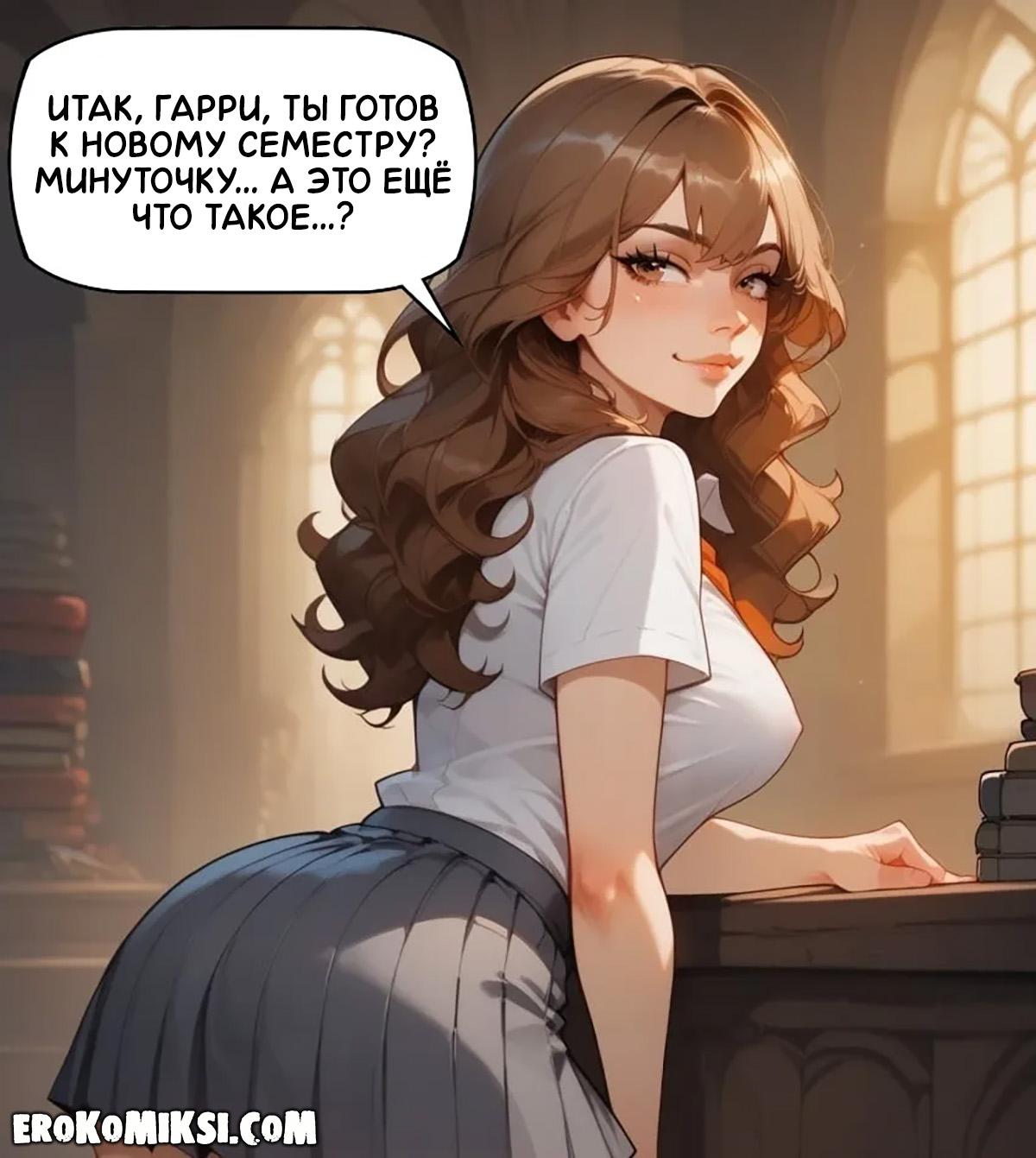 Порно комикс Гарри Поттер. Концентрация на учёбе. Гарри и Гермиона готовятся к новому учебному семестру, а чтобы ничто их не отвлекало от занятий, они решают хорошенько потрахаться и выплеснуть всю накопившуюся сексуальную энергию…