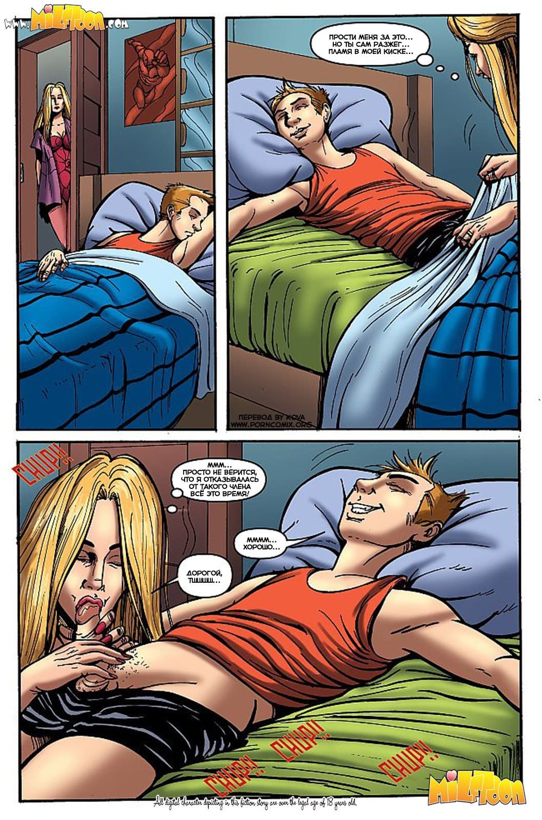 Представляем вам инцест комиксы на русском онлайн. Перед вами долгожданное продолжение данной развратной истории, созданной компанией милфтун. Речь в данной части пойдет о том, как известное нам семейство приезжает после ужина домой. Все собираются спать. Но, как, оказалось, отдыхать собираются только выросший сын и дочь. Озабоченные родители внимательно ждут, когда кто-нибудь из супругов «провалиться» в сон, дабы тут же пойти в чужую спальню, чтобы там развлечься по полной перед сном…