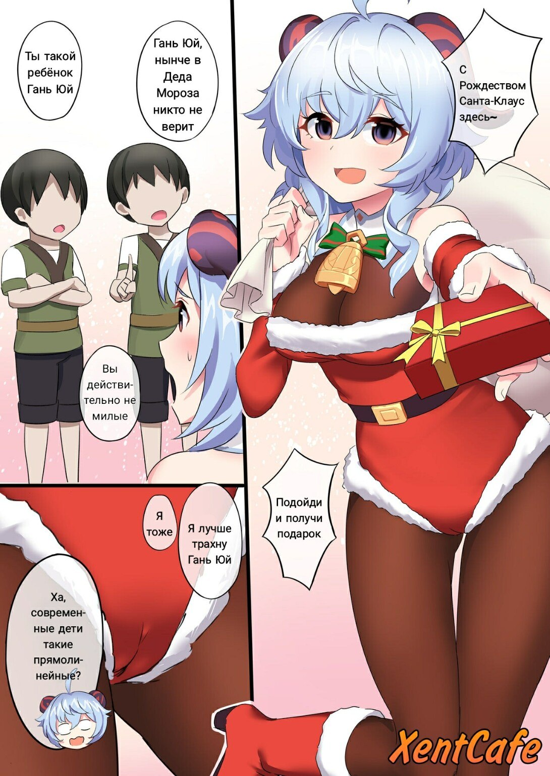 Порно комикс Genshin Impact. Гань Юй Горячая сисястая блондинка решила сделать подарок на Рождество двум молодым парням. Она разделась перед ними и дала им поласкать свои большие сиськи, после чего решила потрахаться с ними.