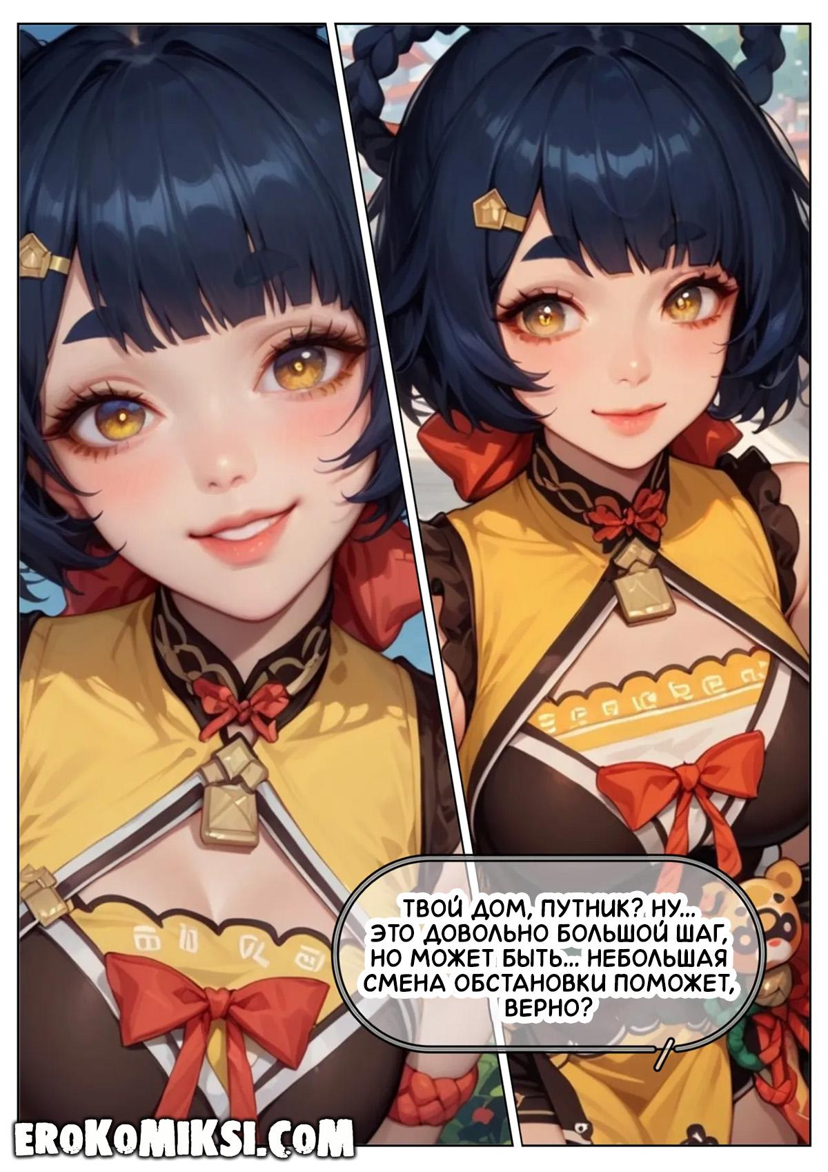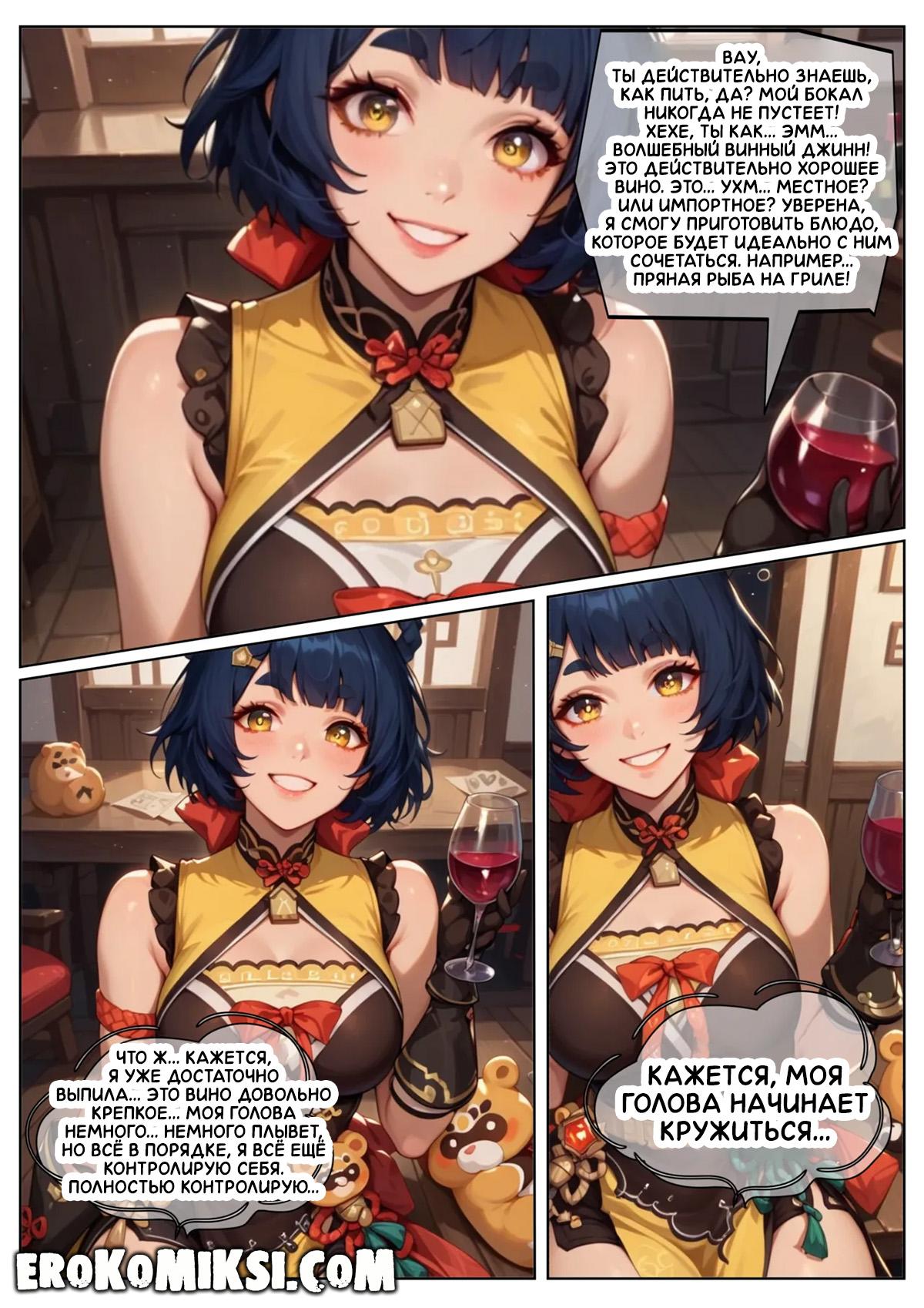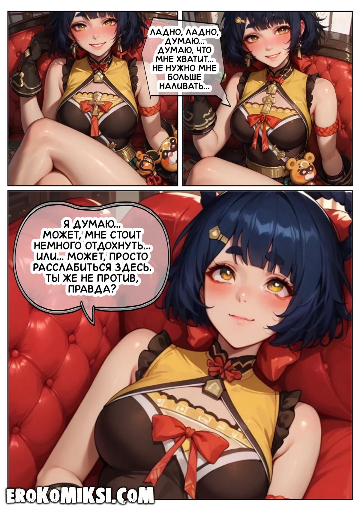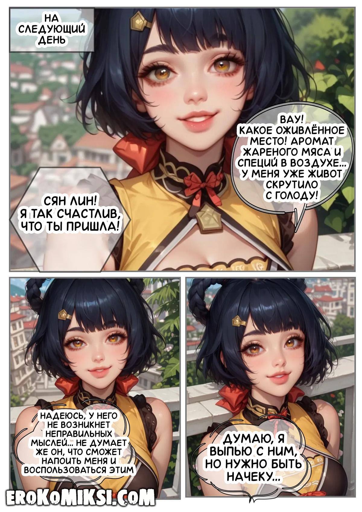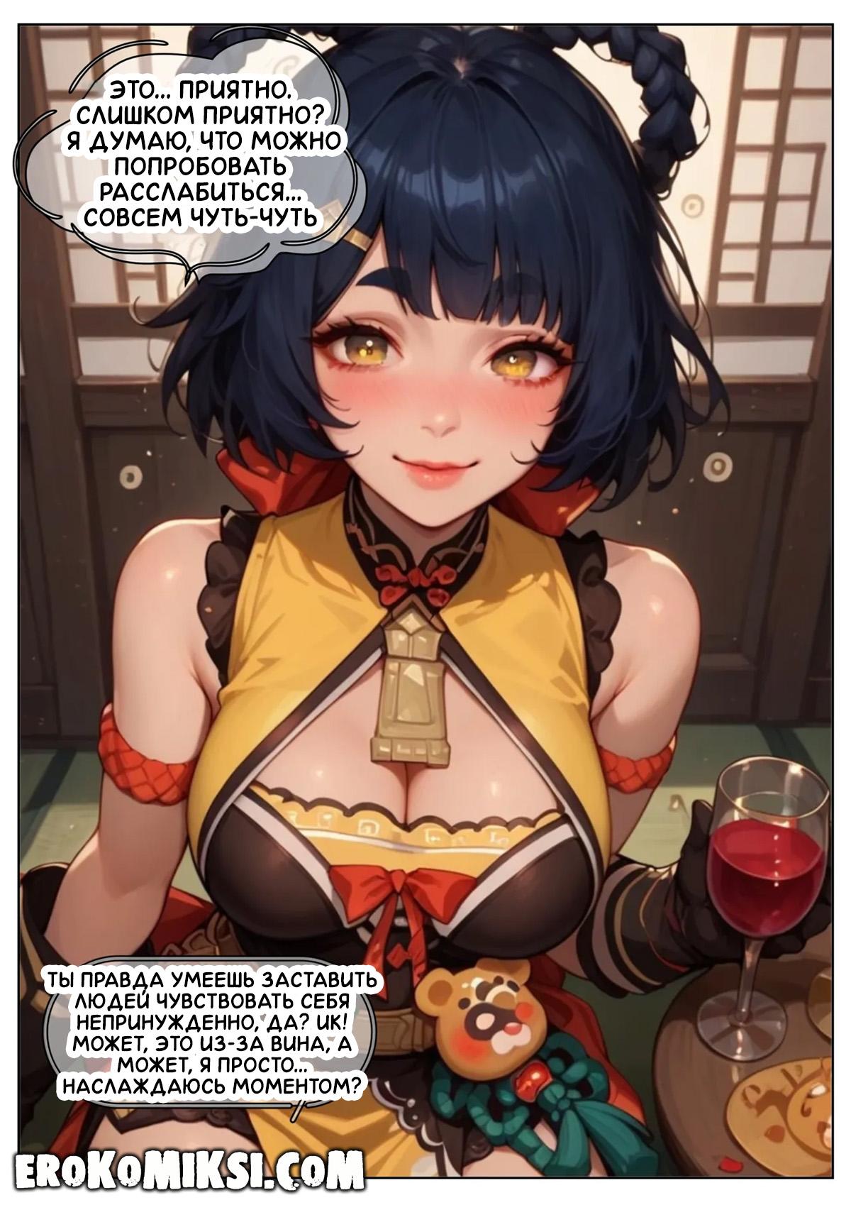Порно комикс Genshin Impact. Пепел наслаждения. Путник приехал в деревню, где встретил Сян Лин, которая ему сразу же приглянулась, и он решил пригласить её к себе. Когда девушка пришла, путник напоил её вином, от чего она охмелела и позволила путнику оттрахать её киску и задницу…