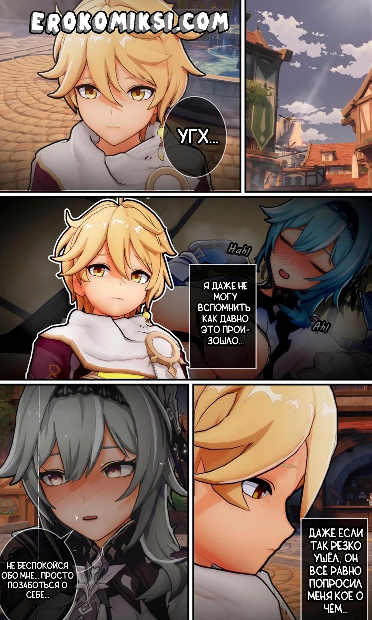 Порно комикс Genshin Impact. Я тебе нравлюсь. Часть 2. Эфир вернулся в Тейват после очередного долго путешествия, чтобы извиниться перед Еула, за то что покинул её. Но он совсем не ожидал, что горячая красотка сама предложит ему своё сексуальное тело…
