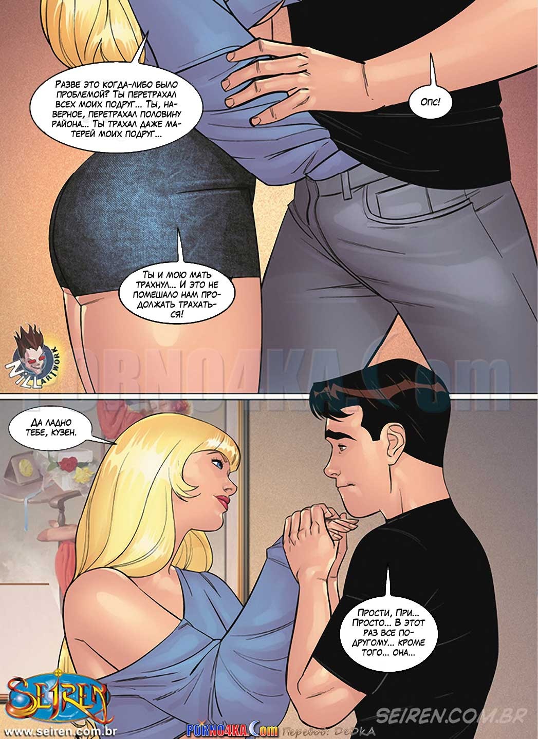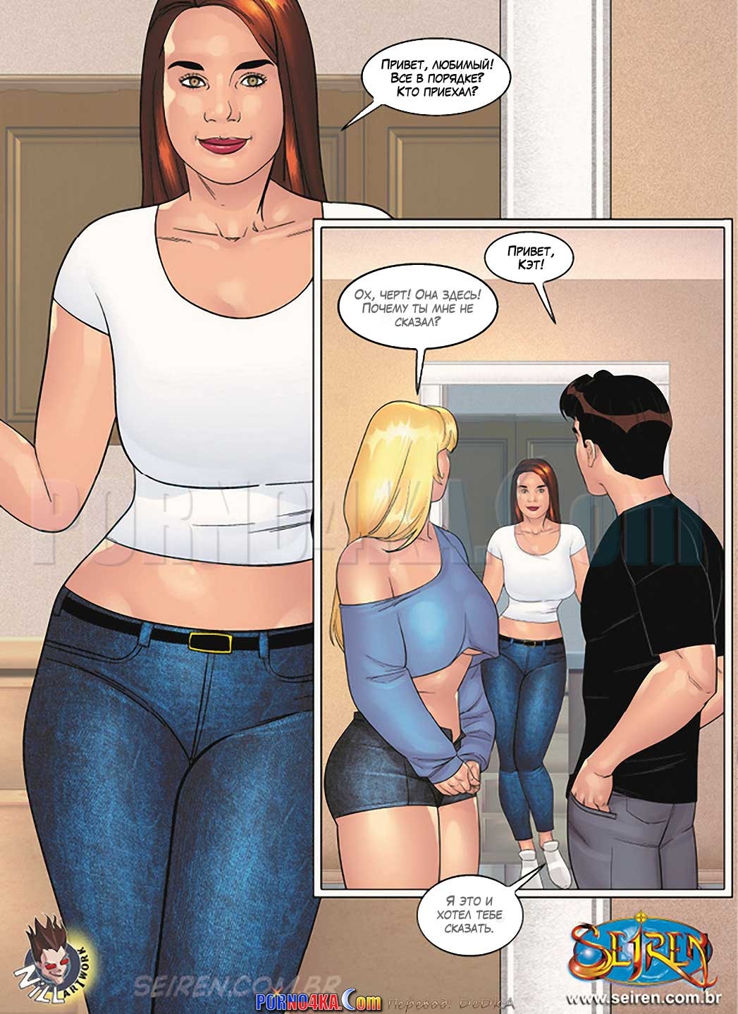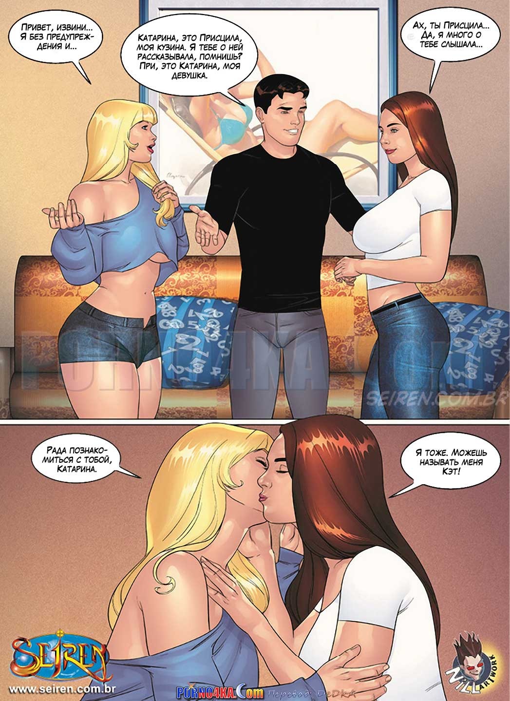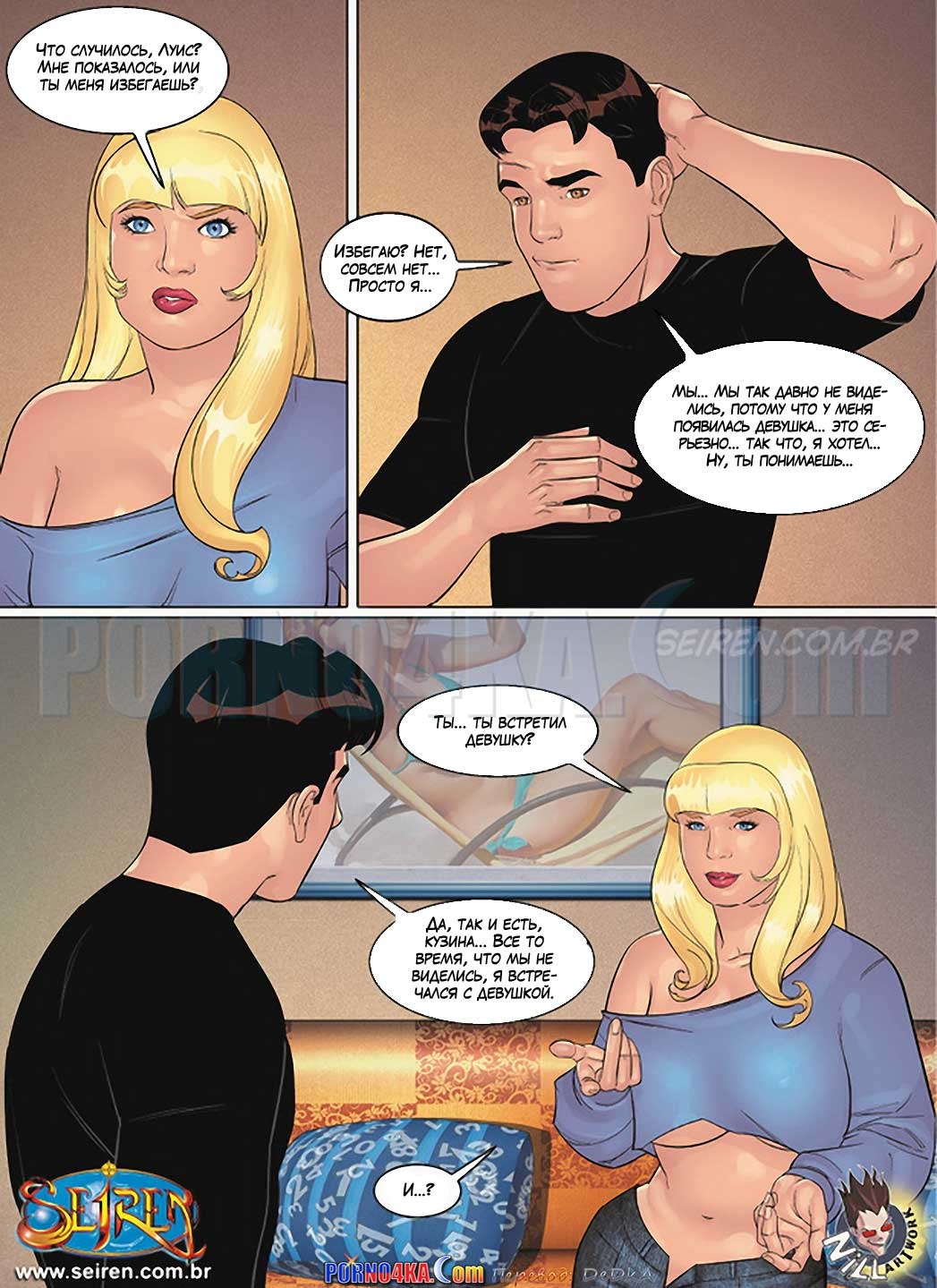 Порно комикс Горячая кузина. Часть 27. Присцила, соскучившись по сексу с Луисом без предупреждения пришла к нему домой, но оказалось, что у Луиса дома в это время была подружка, с которой у него все настолько серьезно, что может закончиться свадьбой! Но Присцила не привыкла сдаваться, она пришла за сексом и намерена получить то, за чем пришла…