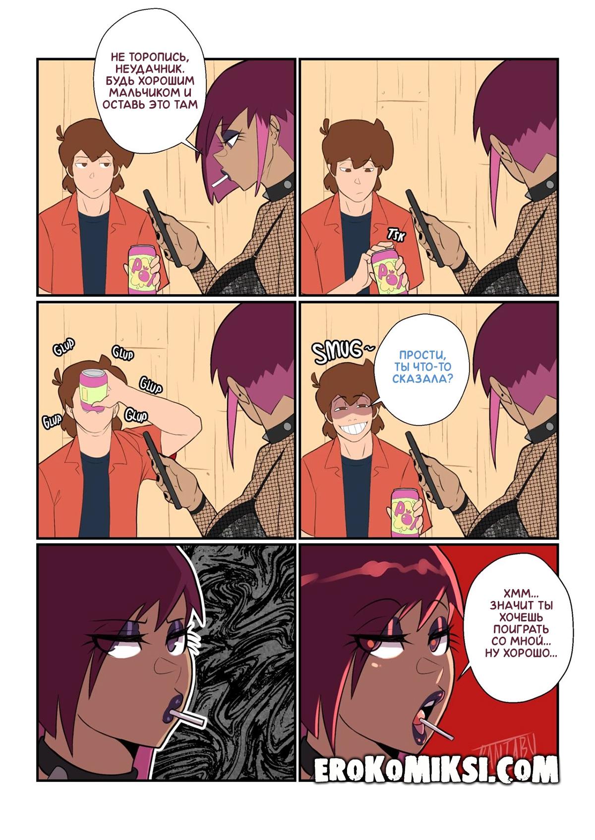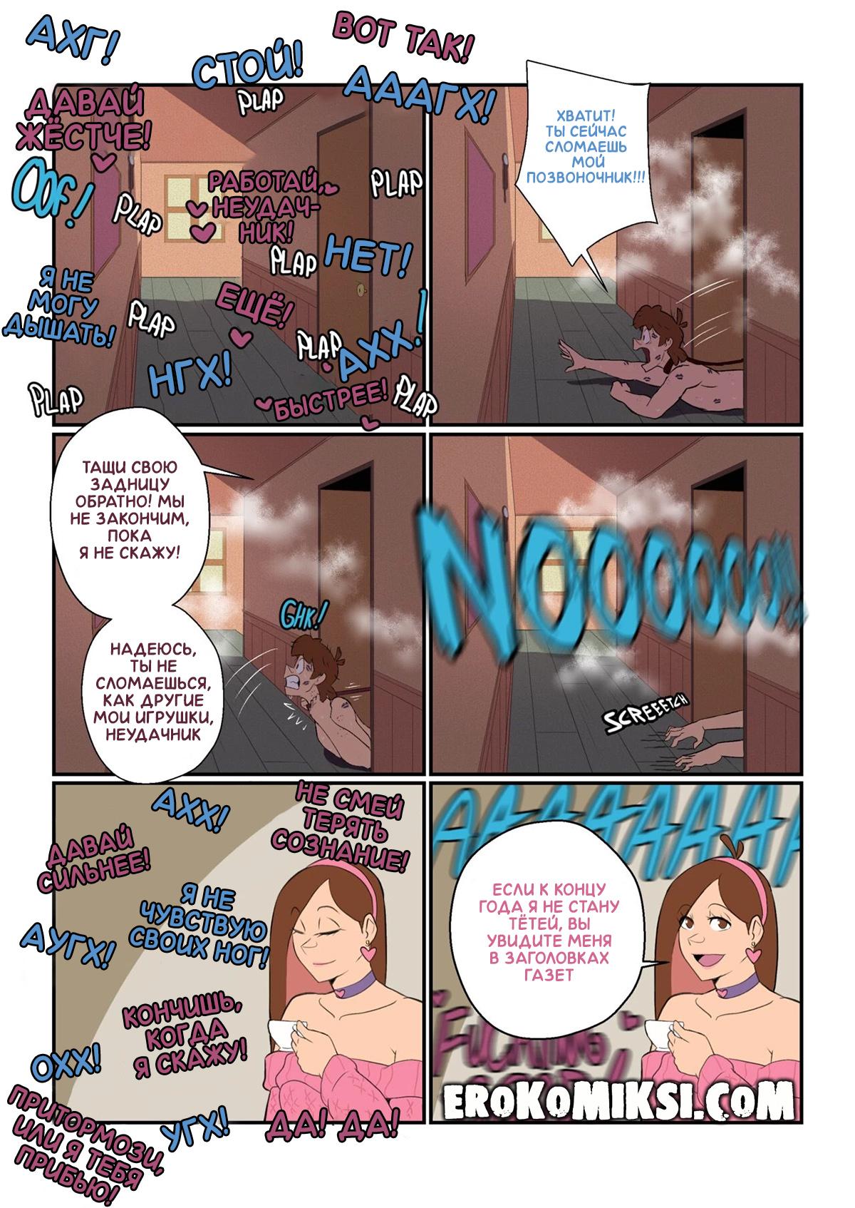 Порно комикс Гравити Фолз. Диппер и Тэмбри. Диппер замещал Венди в её магазине и в это время, тут явилась бунтарка Тэмбри, которая начала общаться в своей грубой манере и унижать Диппера. Парень решил дать ей отпор и начал дерзить, чем вызвал её недоумение и Тэмбри решила проучить наглого мальчишку, она отвела его в подсобку и начала трахать, требуя извинений за его дерзость…