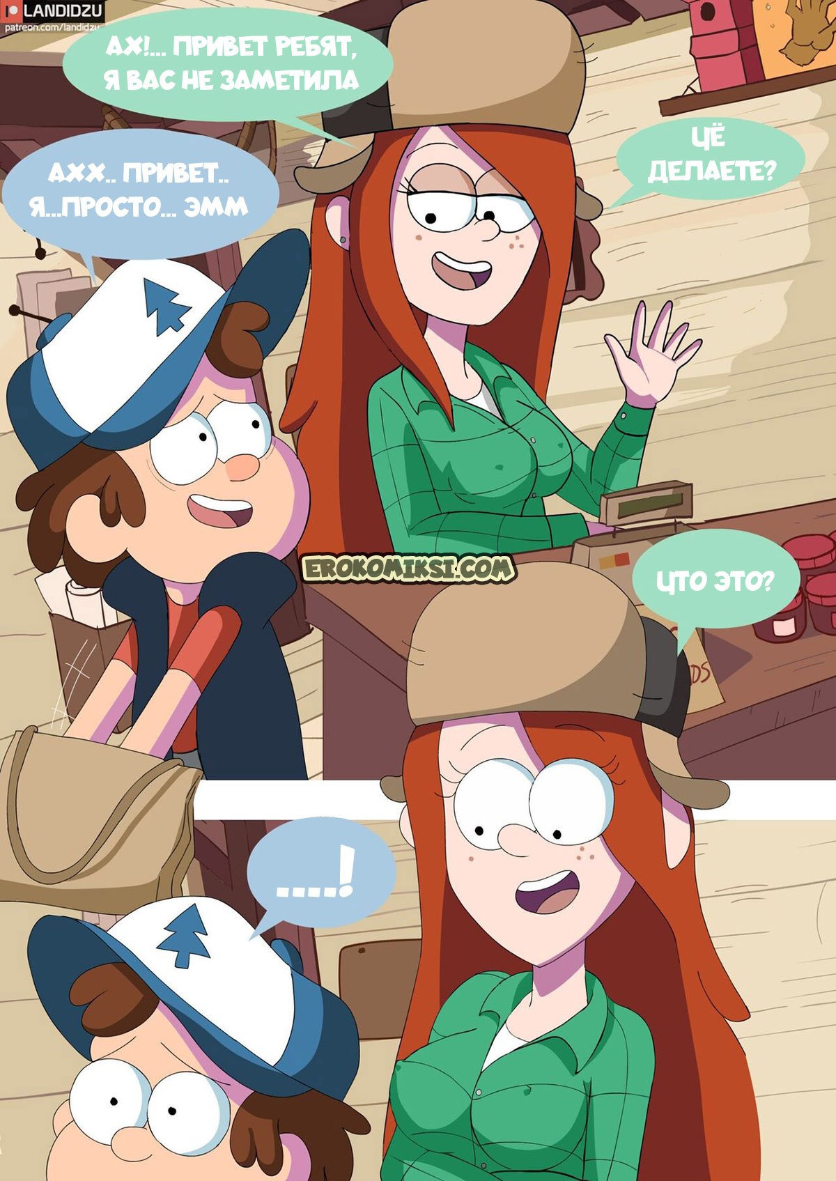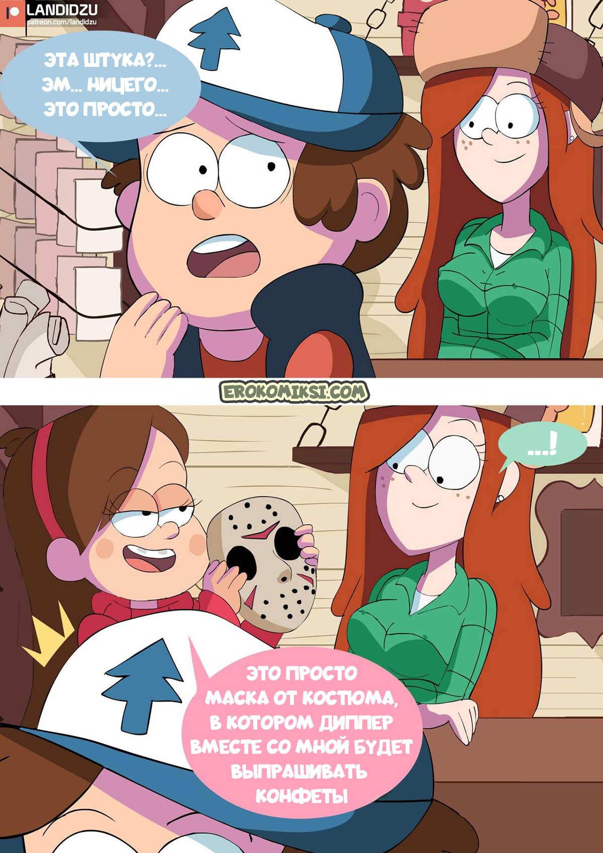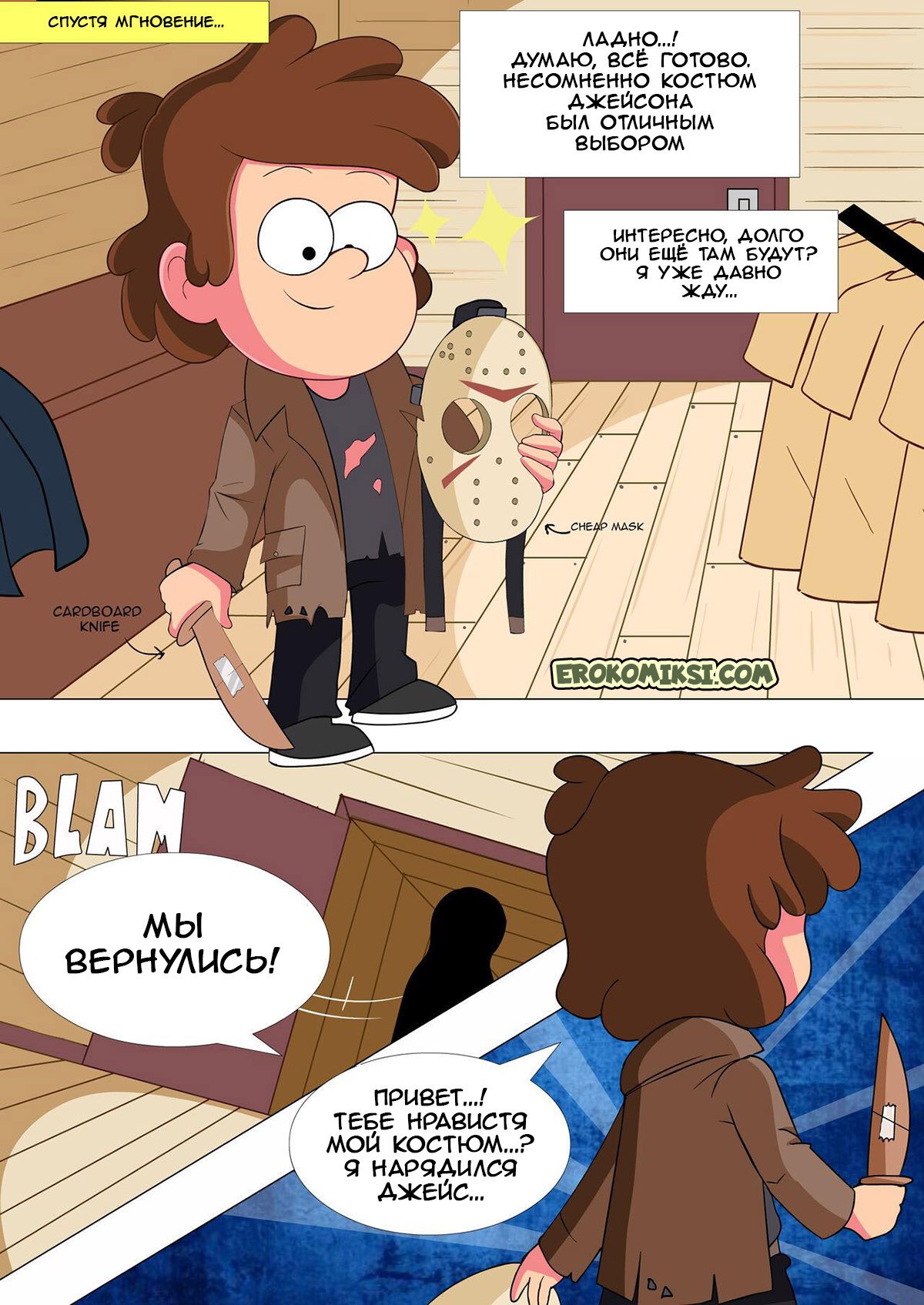 Порно комикс Гравити Фолз: Кошелек или жизнь. Диппер и Мэйбл собираются пойти на хэллоуин, но прежде они приглашают с собой Венди. Девушка хотела бы с ними пойти, но не может из-за работы в хижине чудес. Тогда она предлагает друзьям остаться на ночь с ней в домике за просмотром фильмов ужасов, и приодеться в костюмы, а конфеты можно взять из магазина. Ребята соглашаются и решают провести ночь вместе. Однако у Венди нет костюма и Мэйбл одалживает ей свой запасной наряд. Костюм немного маловат, но зато Дипперу видно, как сильно выпирают аппетитные части тела девушки…