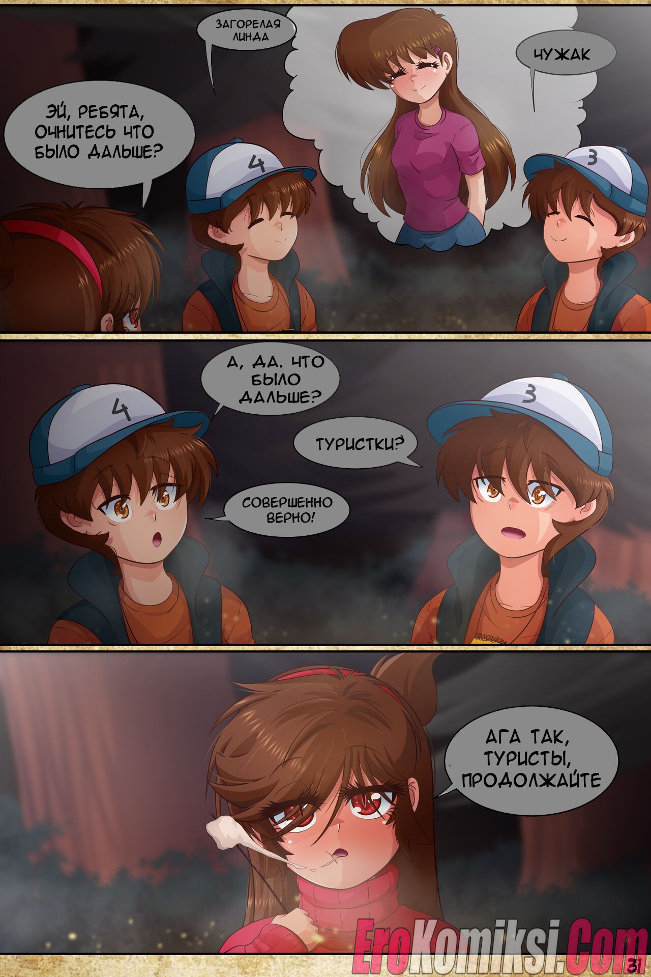 Порно комикс Гравити Фолз: Подделка. Часть 2. Gravity Fake. El Chasconsito. У Диппера появился двойник, который соблазняет сексуальных девушек своим большим хуем. Красотки раздеваются и отсасывают парню, после чего дают ему выебать свои пизденки…
