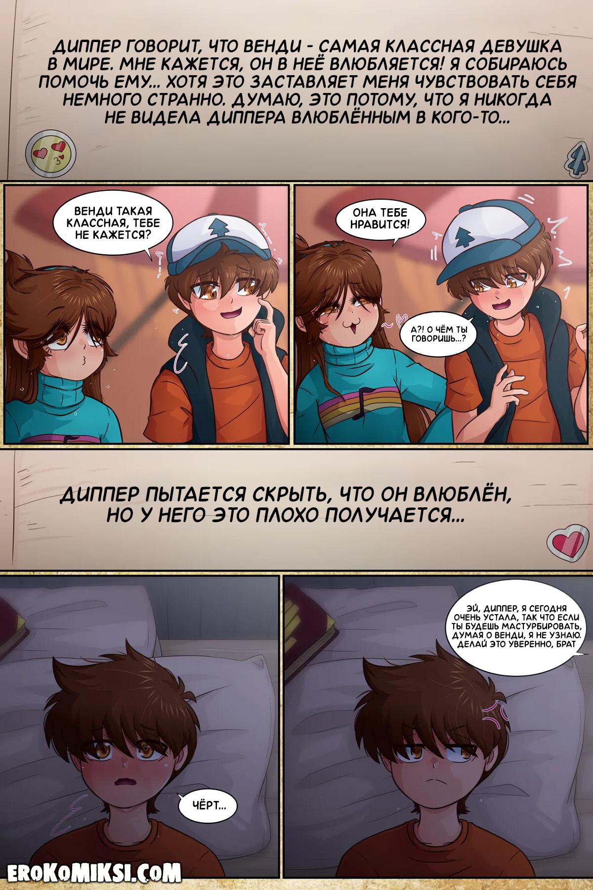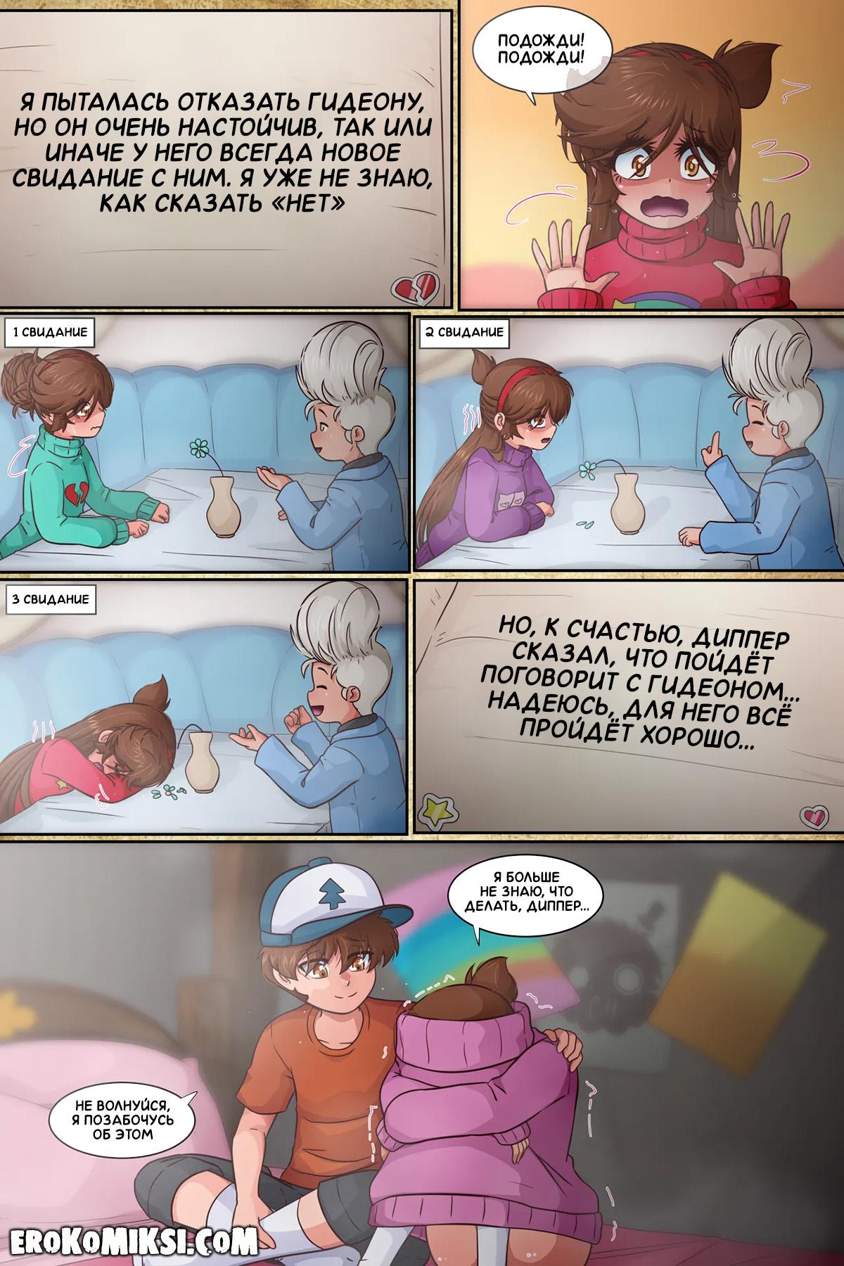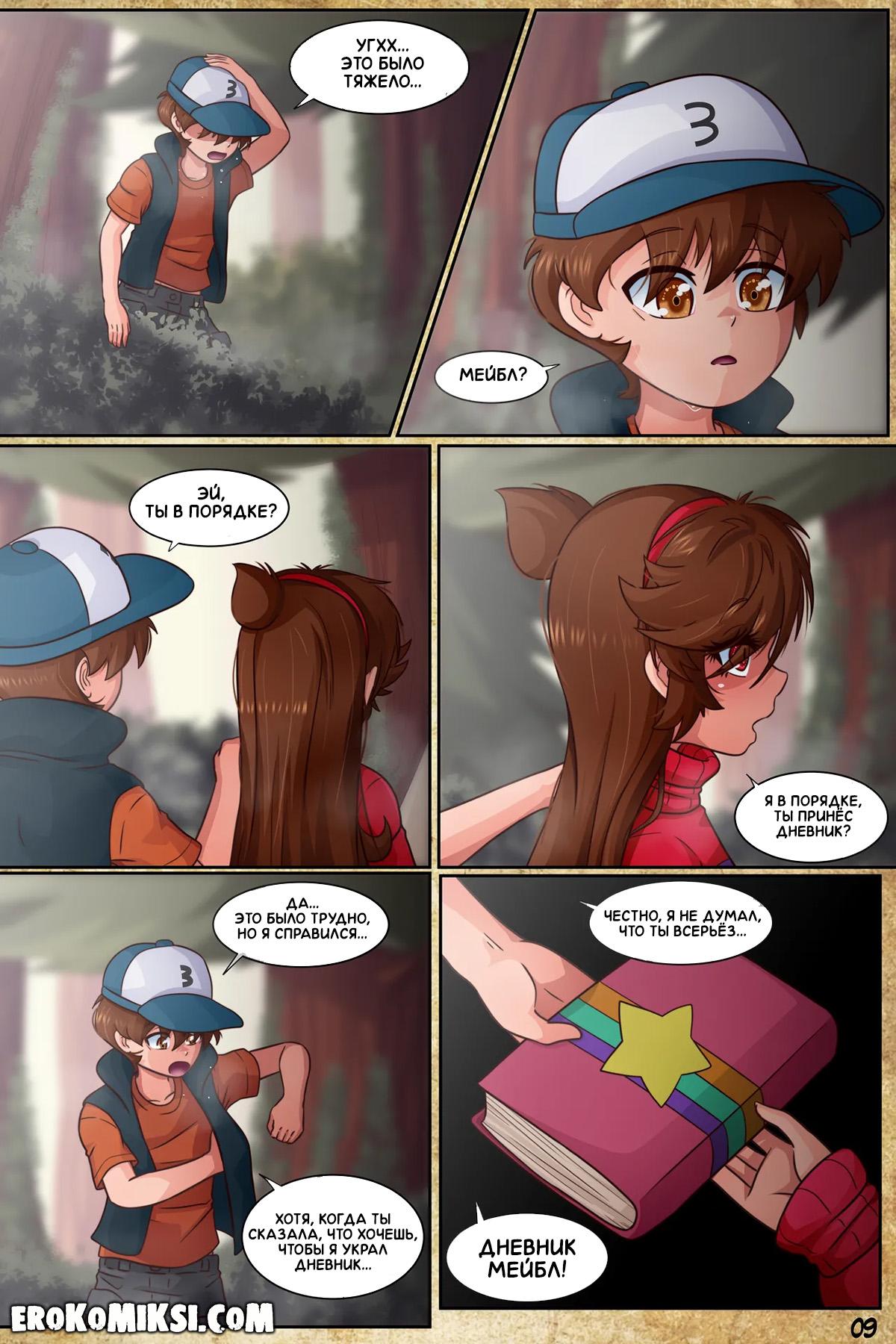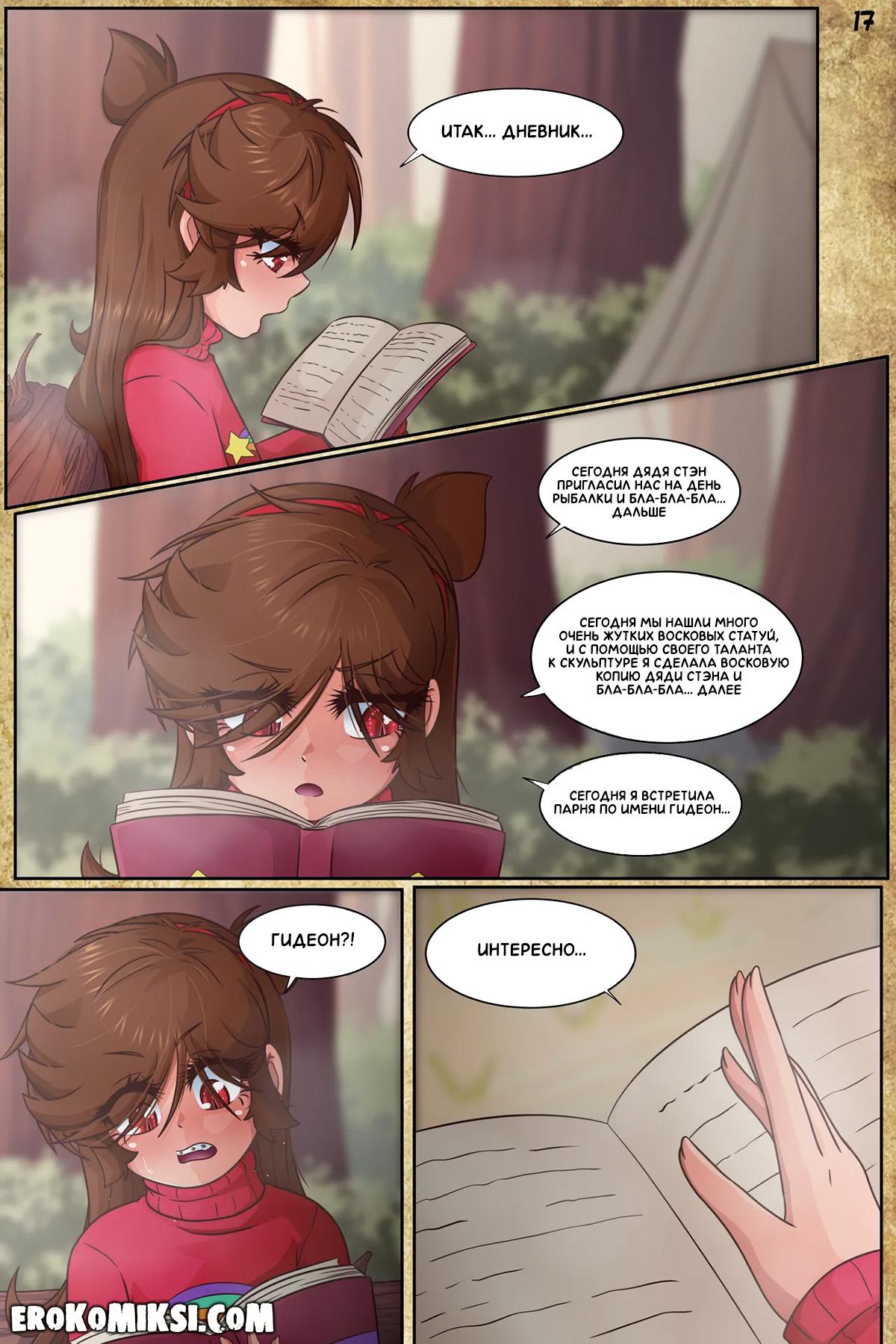 Порно комикс Гравити Фолз. Подделка. Часть 3. Антимейбл просит Диппера принести ей её дневник, и когда она получает его в руки и начинает читать, то понимает, насколько весело Мейбл с Диппером проводили время в городке Гравити Фолз.