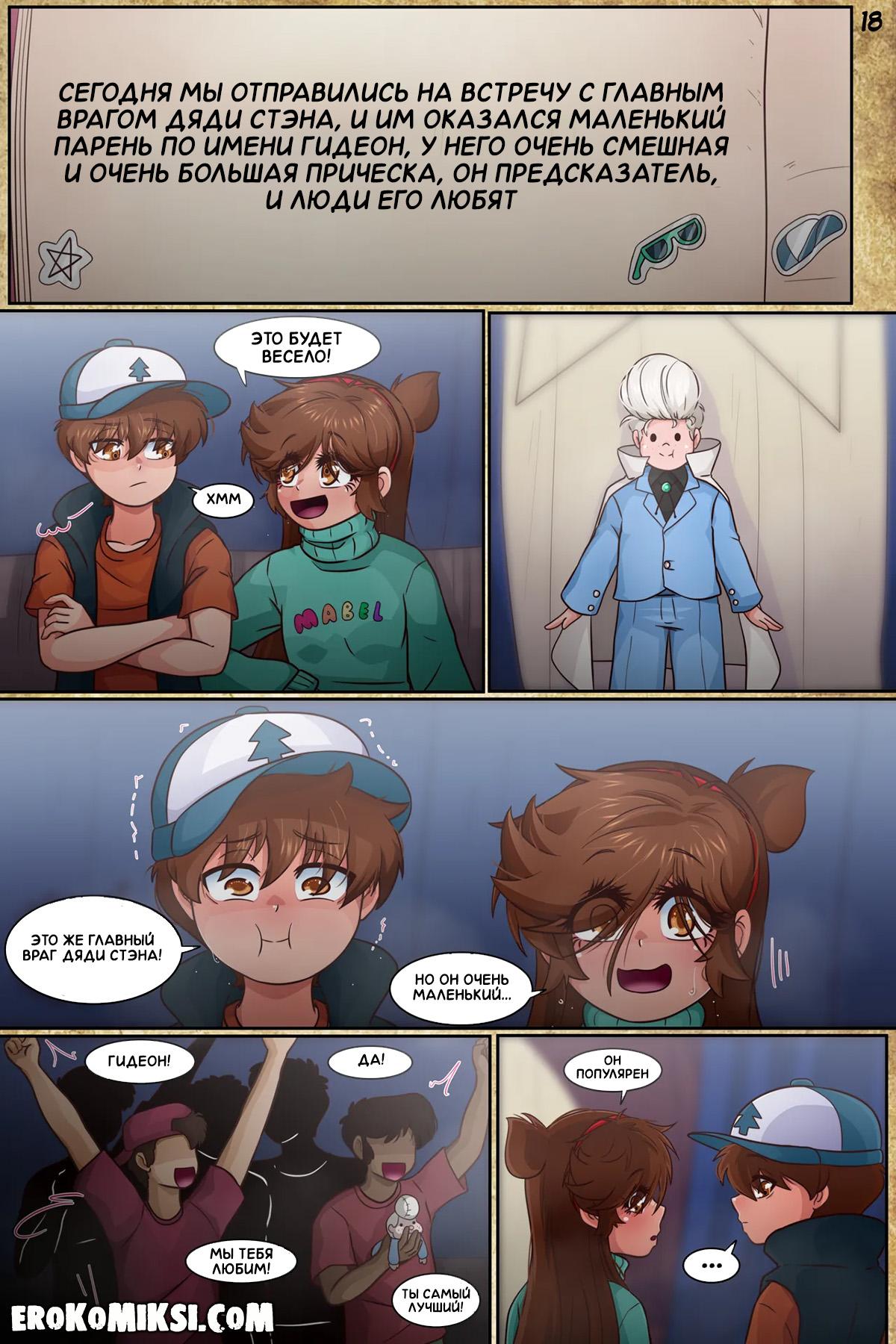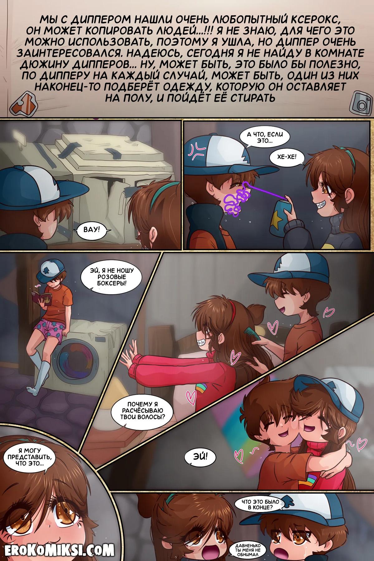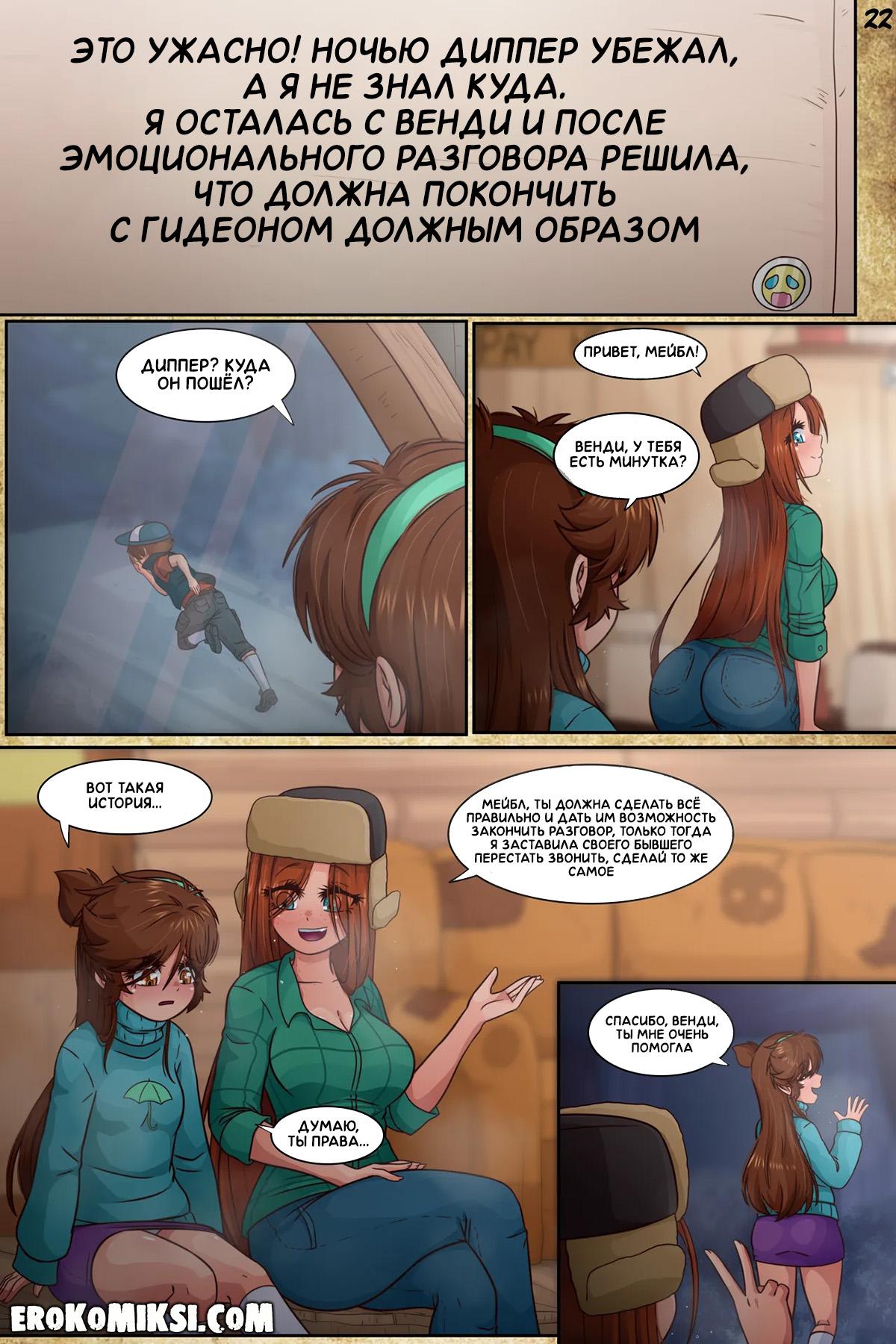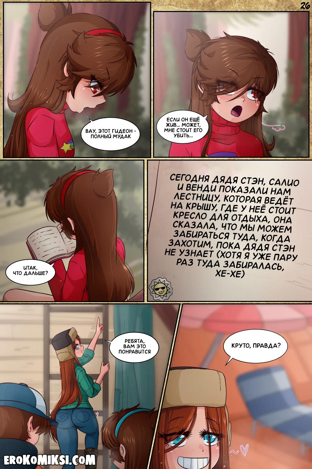 Порно комикс Гравити Фолз. Подделка. Часть 3. Антимейбл просит Диппера принести ей её дневник, и когда она получает его в руки и начинает читать, то понимает, насколько весело Мейбл с Диппером проводили время в городке Гравити Фолз.