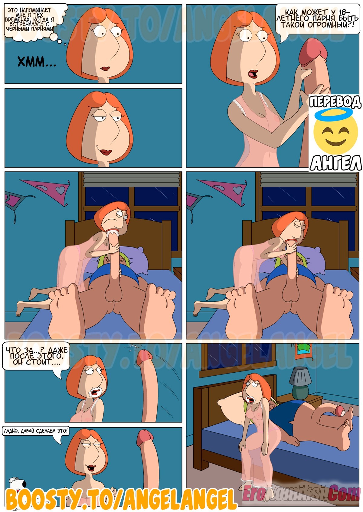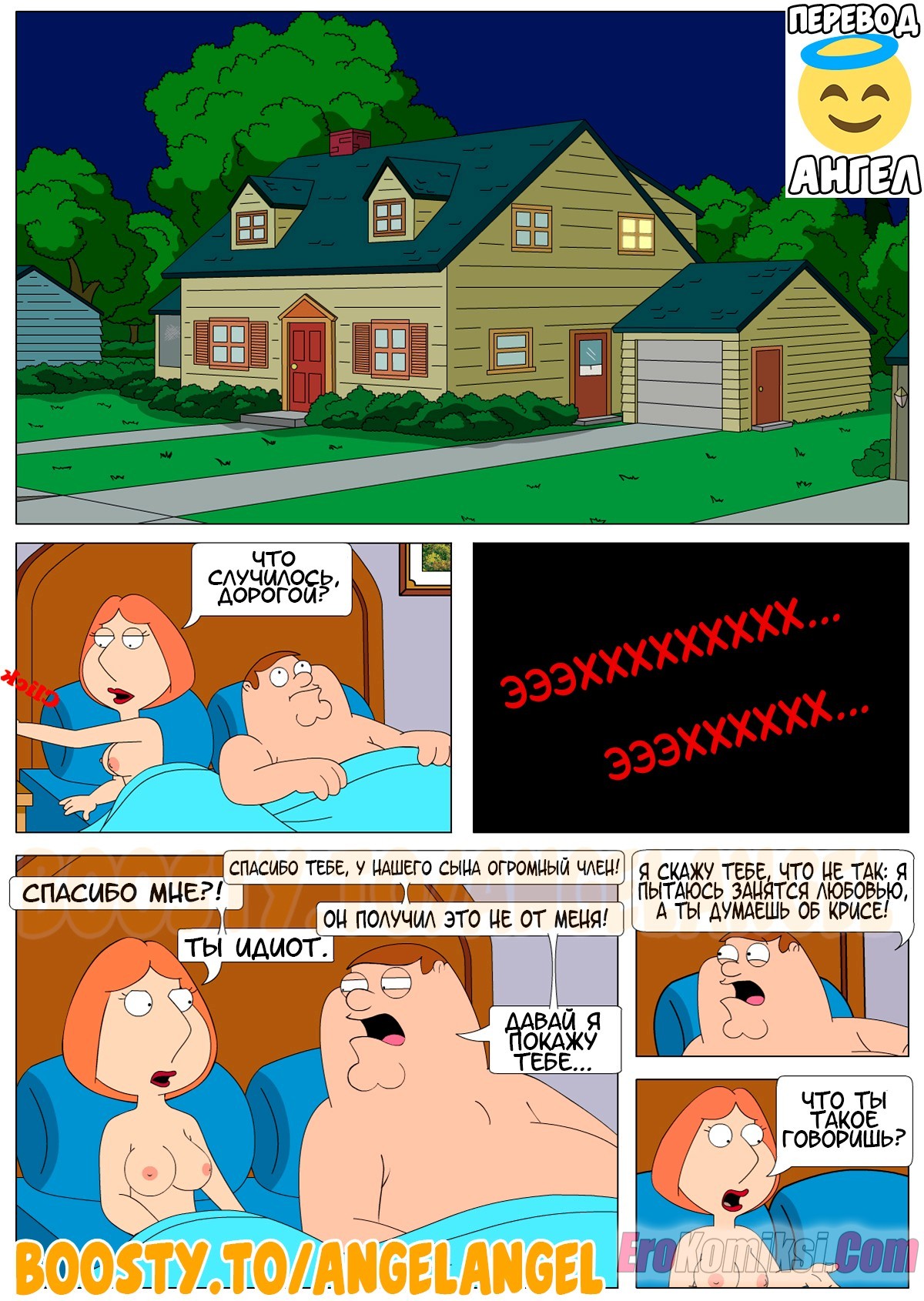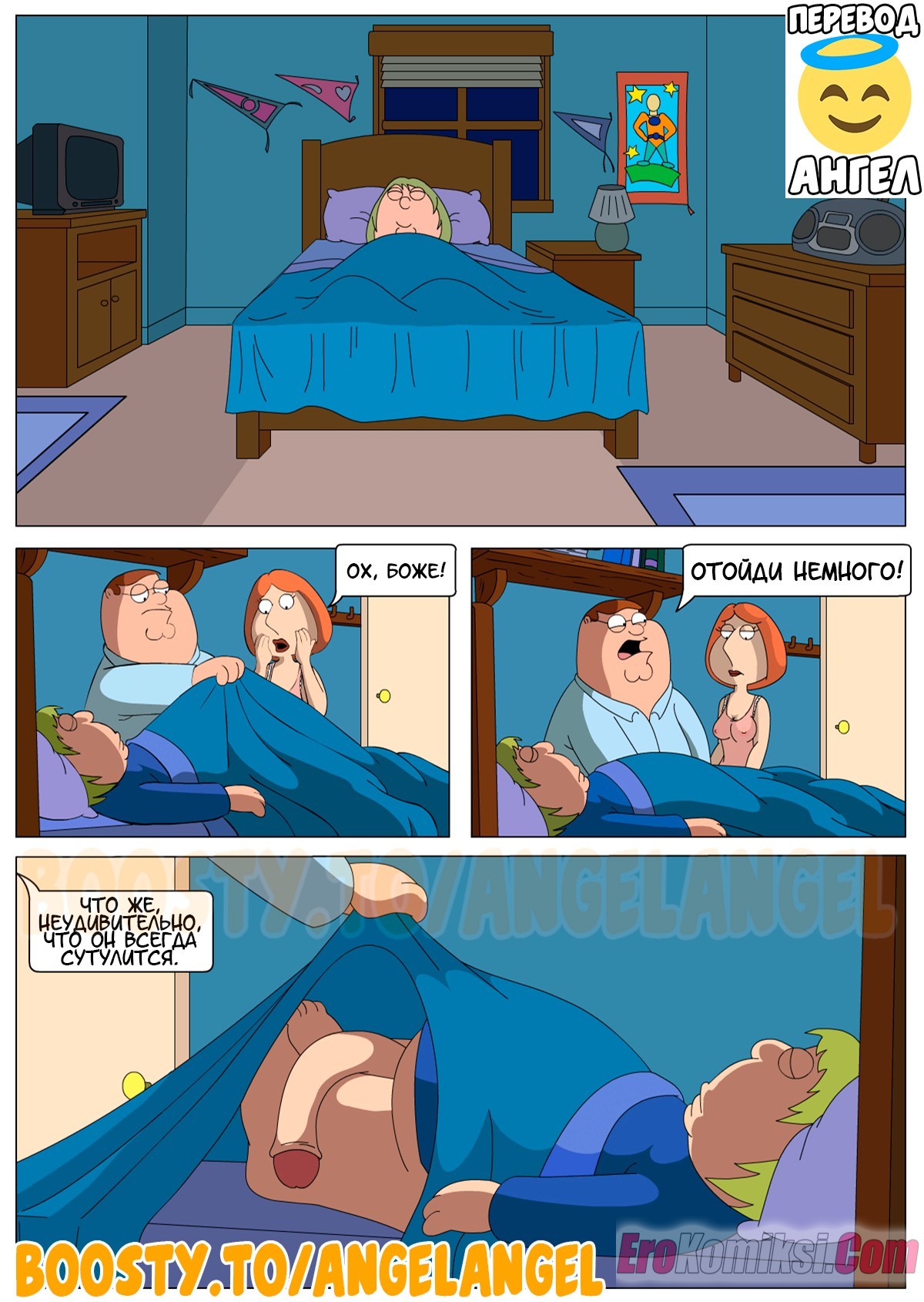Порно комикс Гриффины. Мать трахнула спящего. The Third Leg. Ночь в доме Гриффинов. Лоис решила поцеловать Криса на ночь, но после того, что она увидела, она не смогла остановится.
