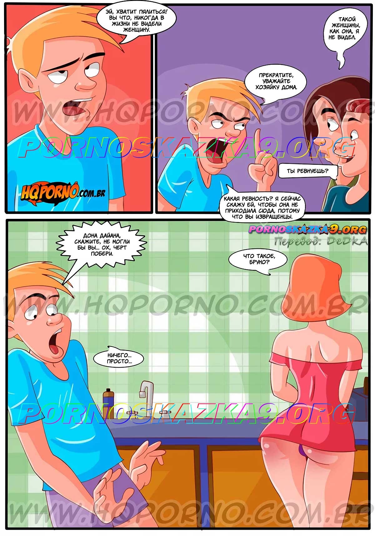 Порно комикс Гулящая семейка. Часть 1. Дона Дайана приготовила для Бруно и его друзей пирог. Но пирог был очень горяч, и пришлось подождать пока он остынет. Тем временем…