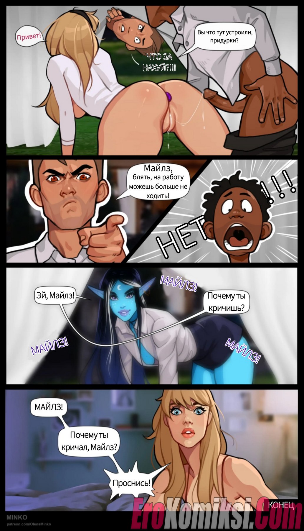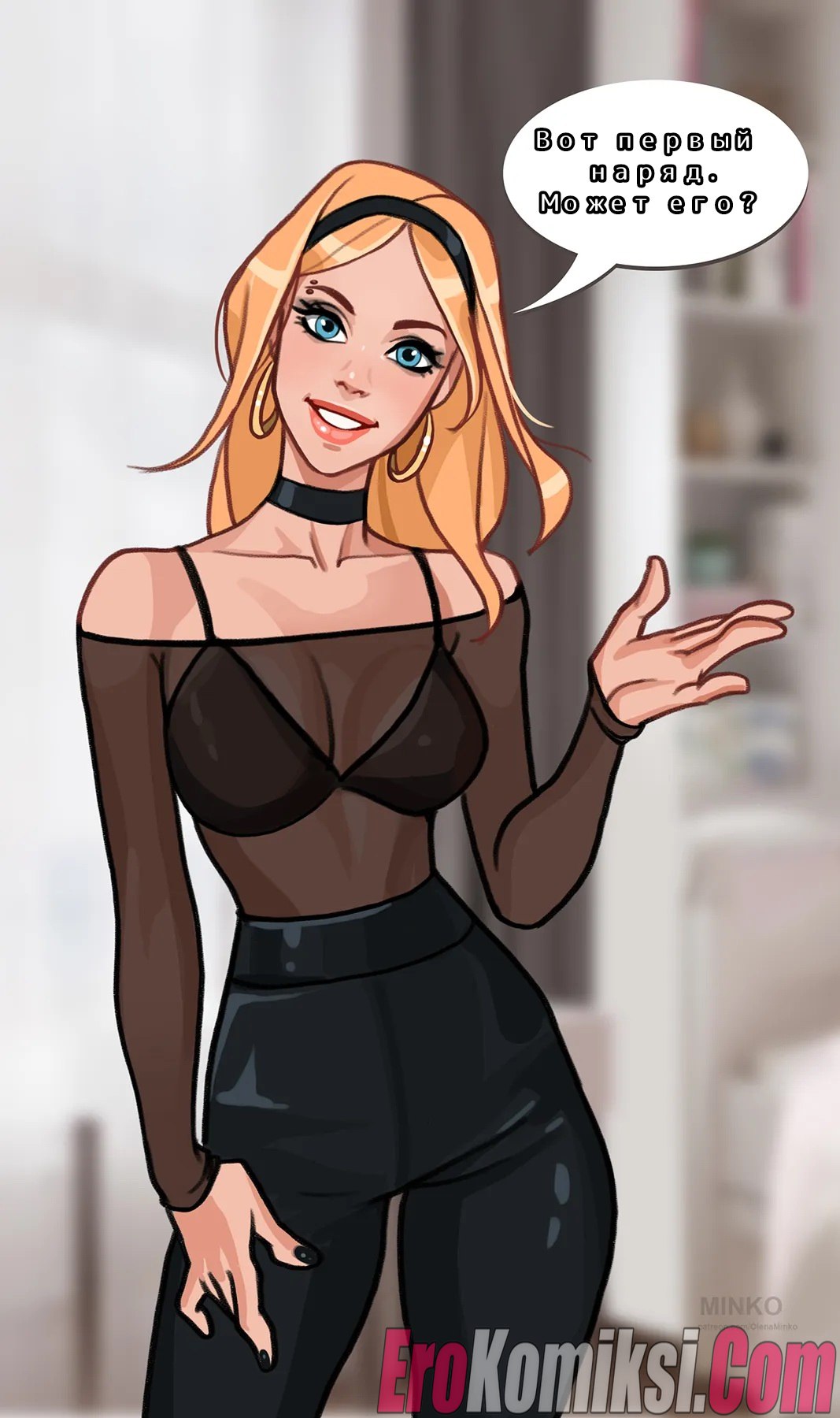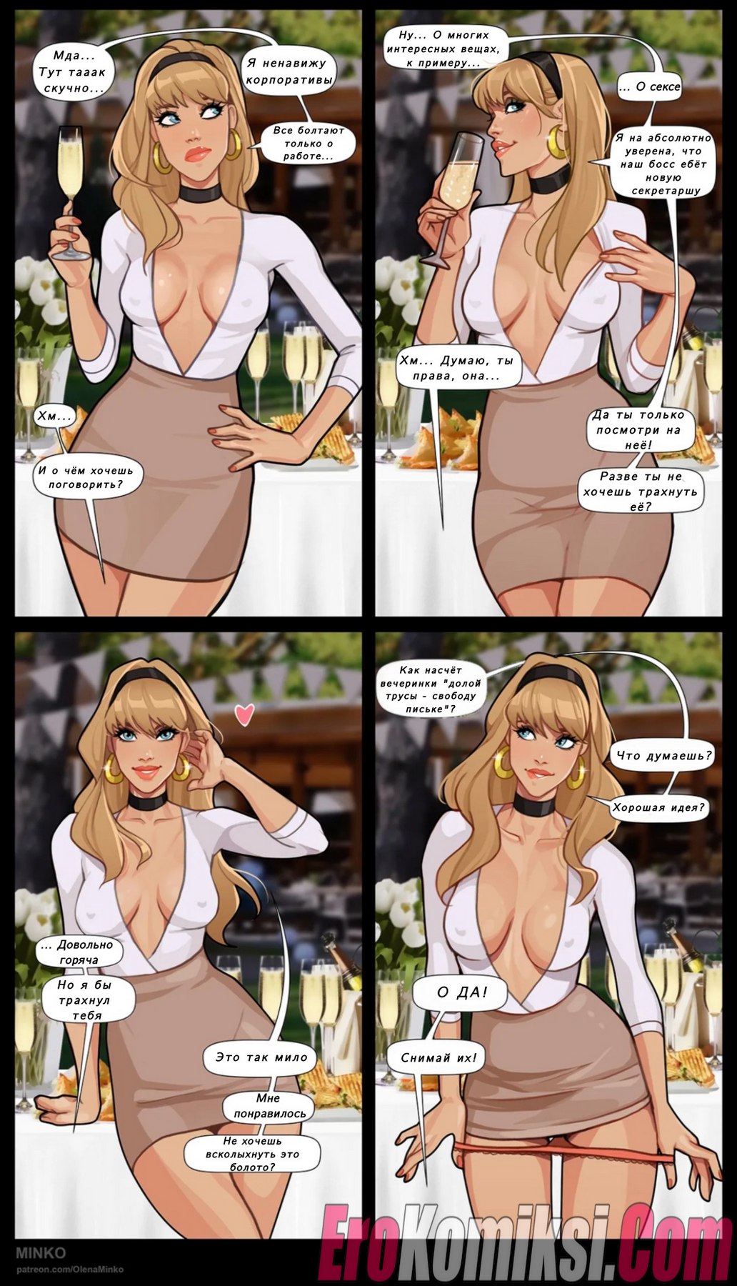 Порно комикс Гвен. Безумный корпоратив. Гвен просит выбрать наряд ей на корпоратив, не все варианты ее устраивают. Но все же находит, что надеть, правда, в любом случае этот наряд она испачкает в сперме…