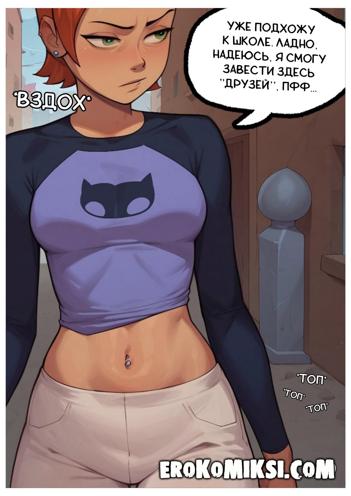 Порно комикс Гвен. Неожиданный урок. Гвен собирается в свой первый день на учебу, но она не ожидает, что ждёт её впереди…