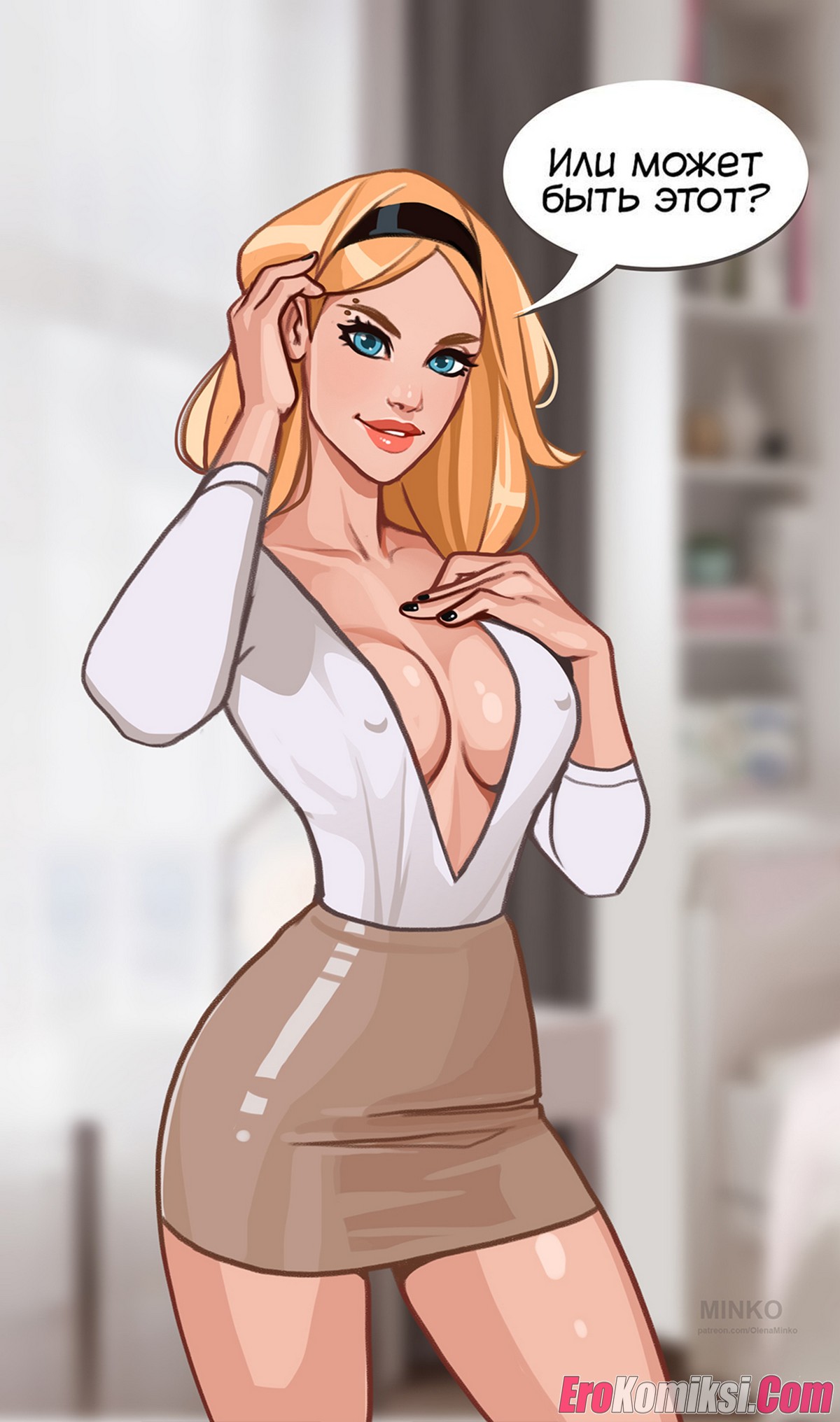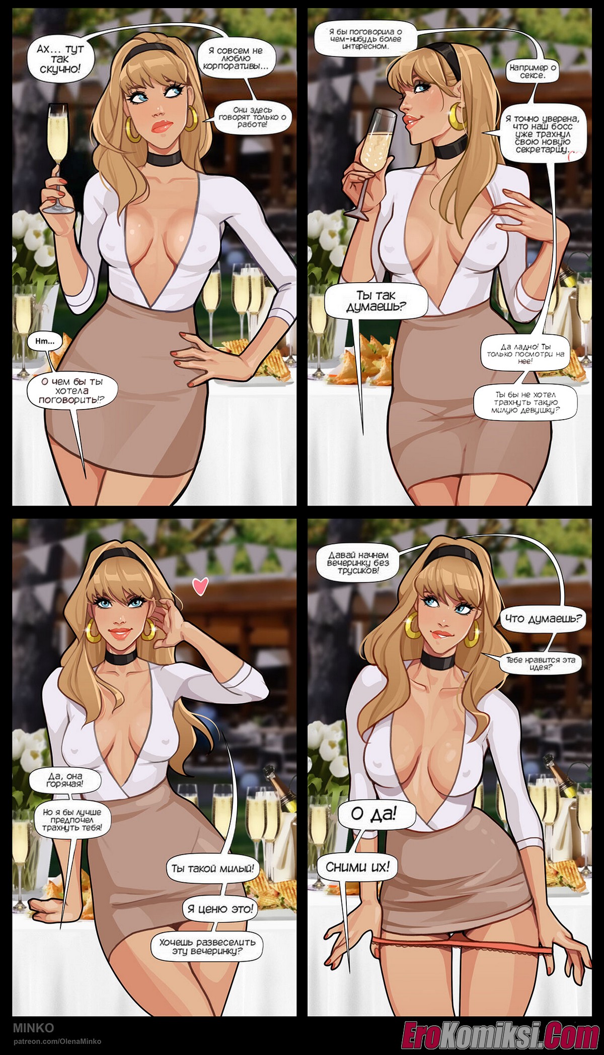 Порно комикс Гвен. Вечеринка. Crazy Corporate Party. Olena Minko Горячая сисястая блондинка отправилась на корпоратив со своим парнем. Девушке было скучно, поэтому она решила повеселиться с парнем. Сучка сняла трусики и стала сосать хуй парня, после чего дала ему себя выебать.