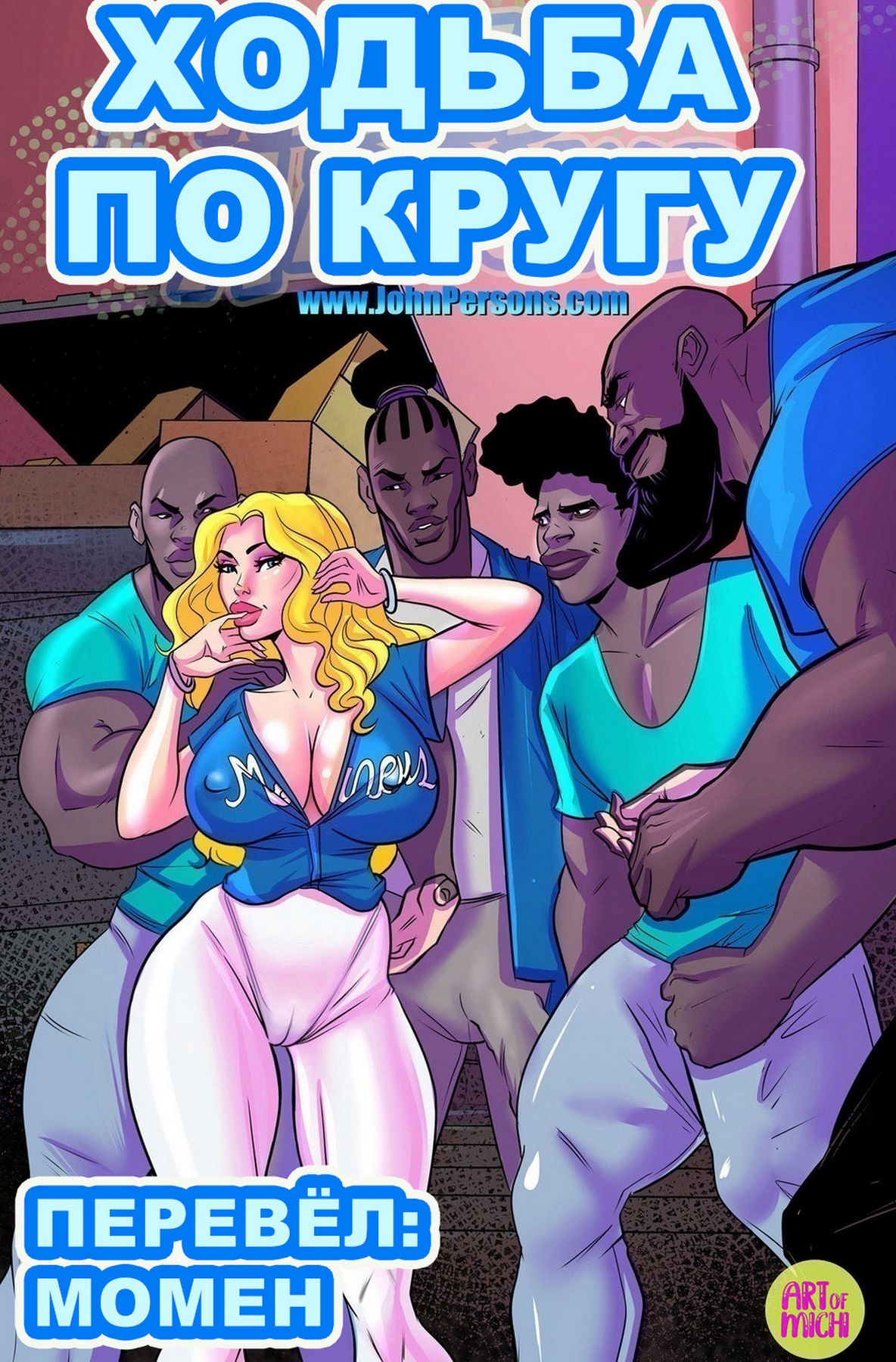 Порно комикс Ходьба по кругу. После матча своей любимой спортивной команды группа ребят заприметила красивую девушку и начала к ней подкатывать. Конечно же она пошла в отказ, но приглядевшись к ним поближе, она согласилась провести с ними какое-то время…