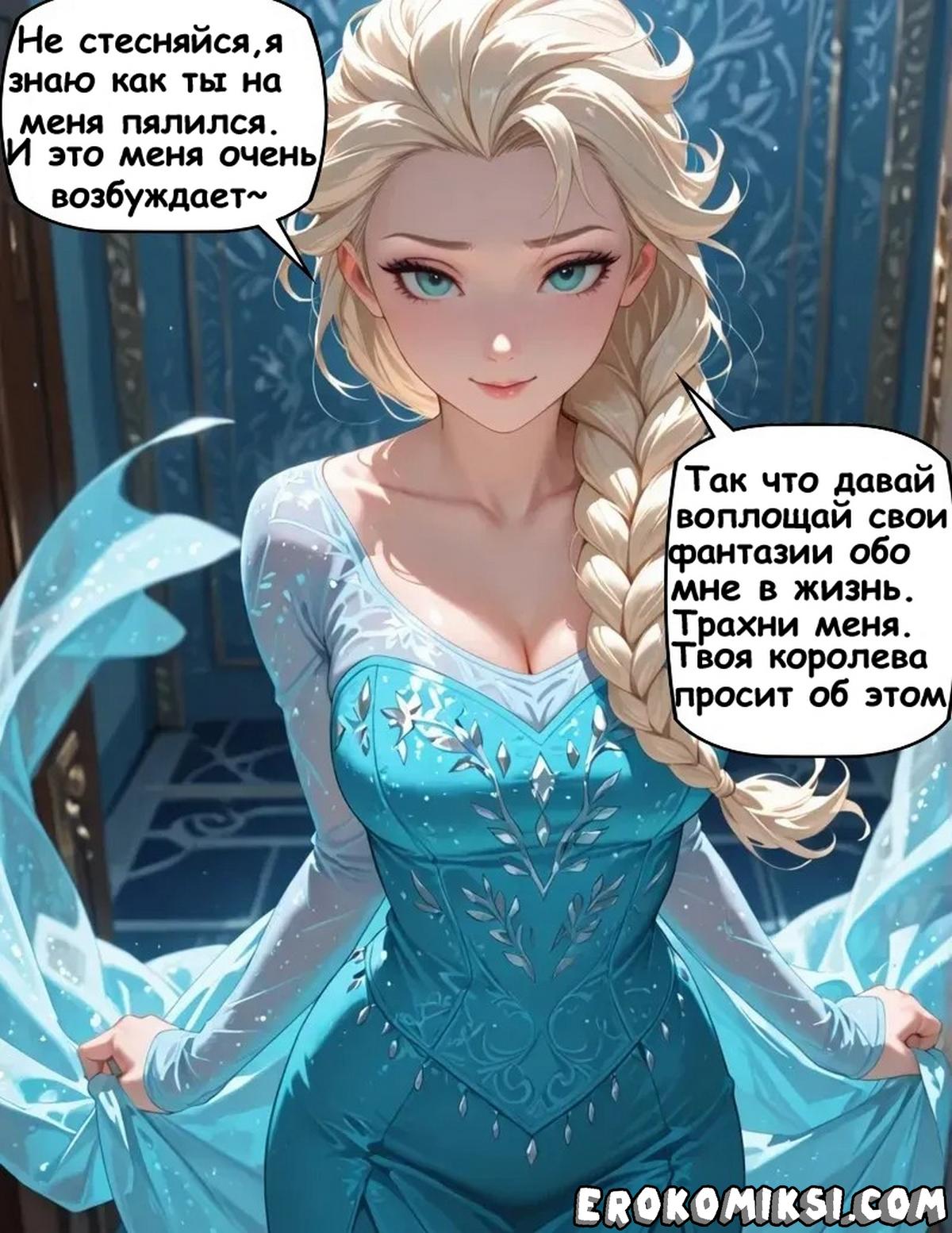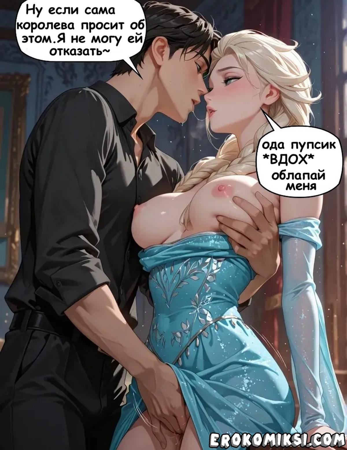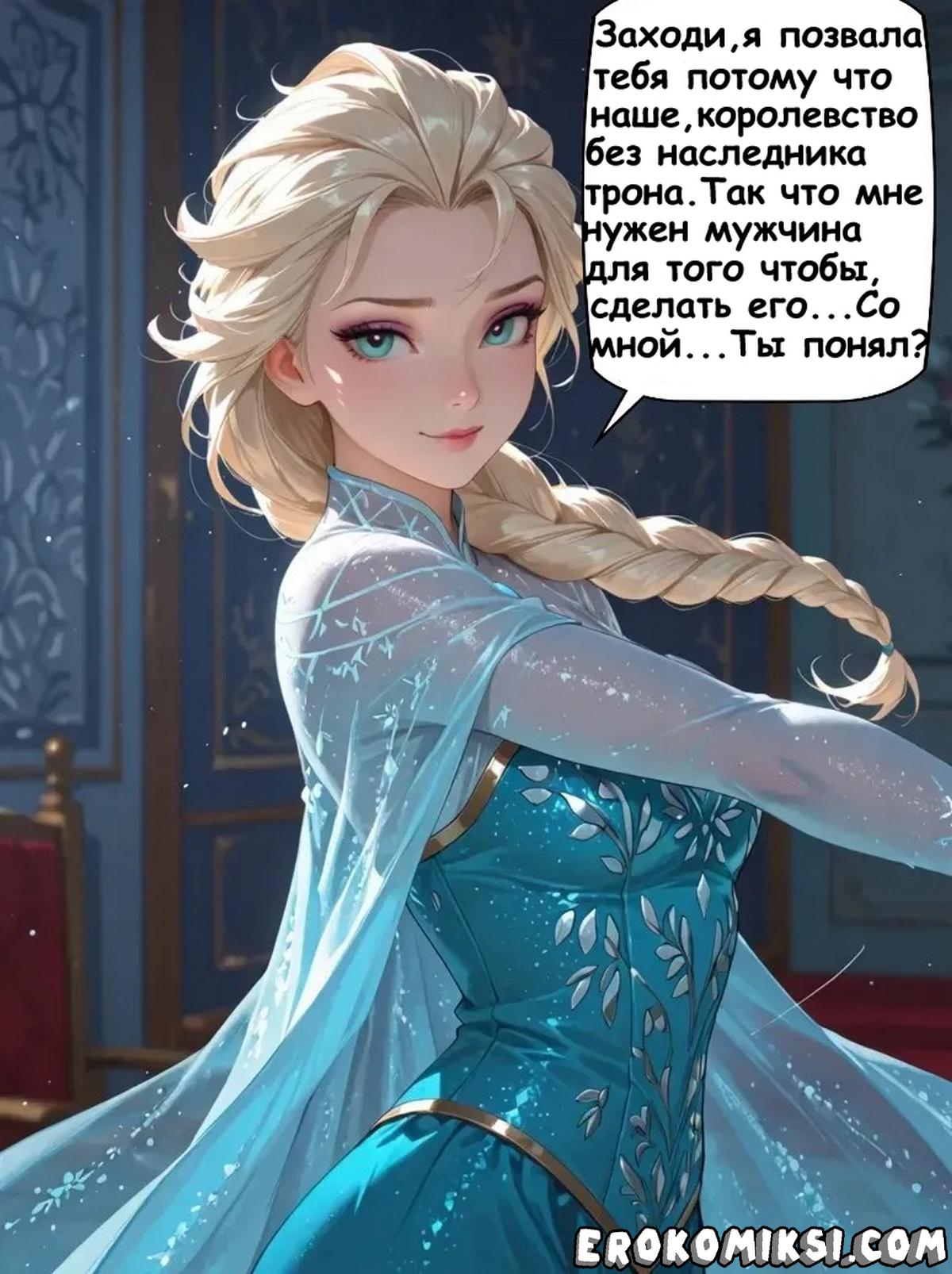 Порно комикс Холодное сердце. Эльза хочет секса. Frozen. Elsa Needs a Breeding Горячая блондинка Эльза позвала к себе в комнату парня, желая пошалить. Она разделась и отсосала большой хуй своего дружка, после чего раздвинула ножки и дала ему себя выебать, кончая в нее…