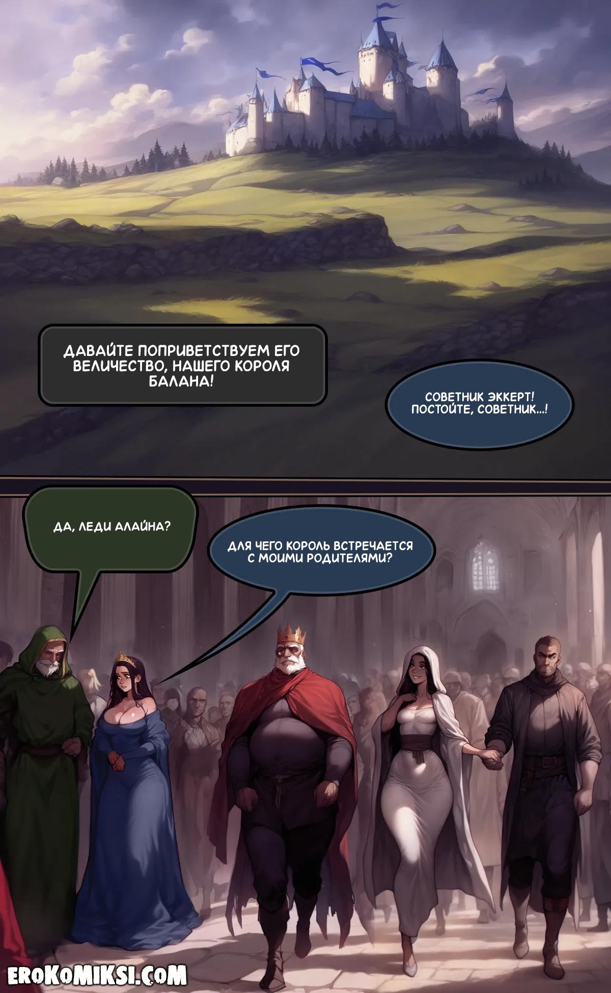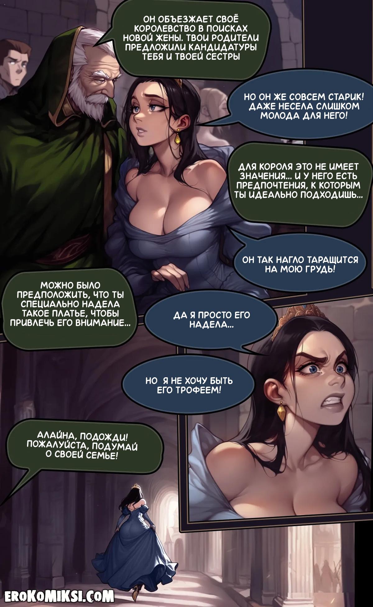 Порно комикс Хроники Харпера: Новая королева. Эпилог. Много лет назад, король Балан искал себе молодую жену и его выбор пал на Алайну, которая не хотела выходить за старика, однако, советник короля загипнотизировал красавицу, и она стала его женой, родив ему кучу детей…