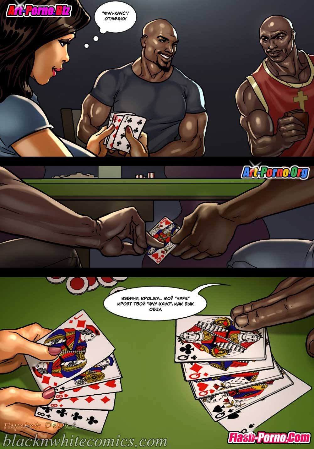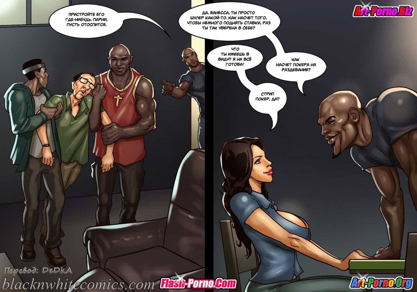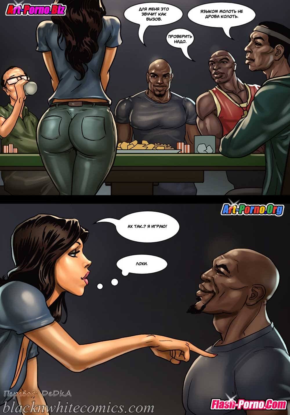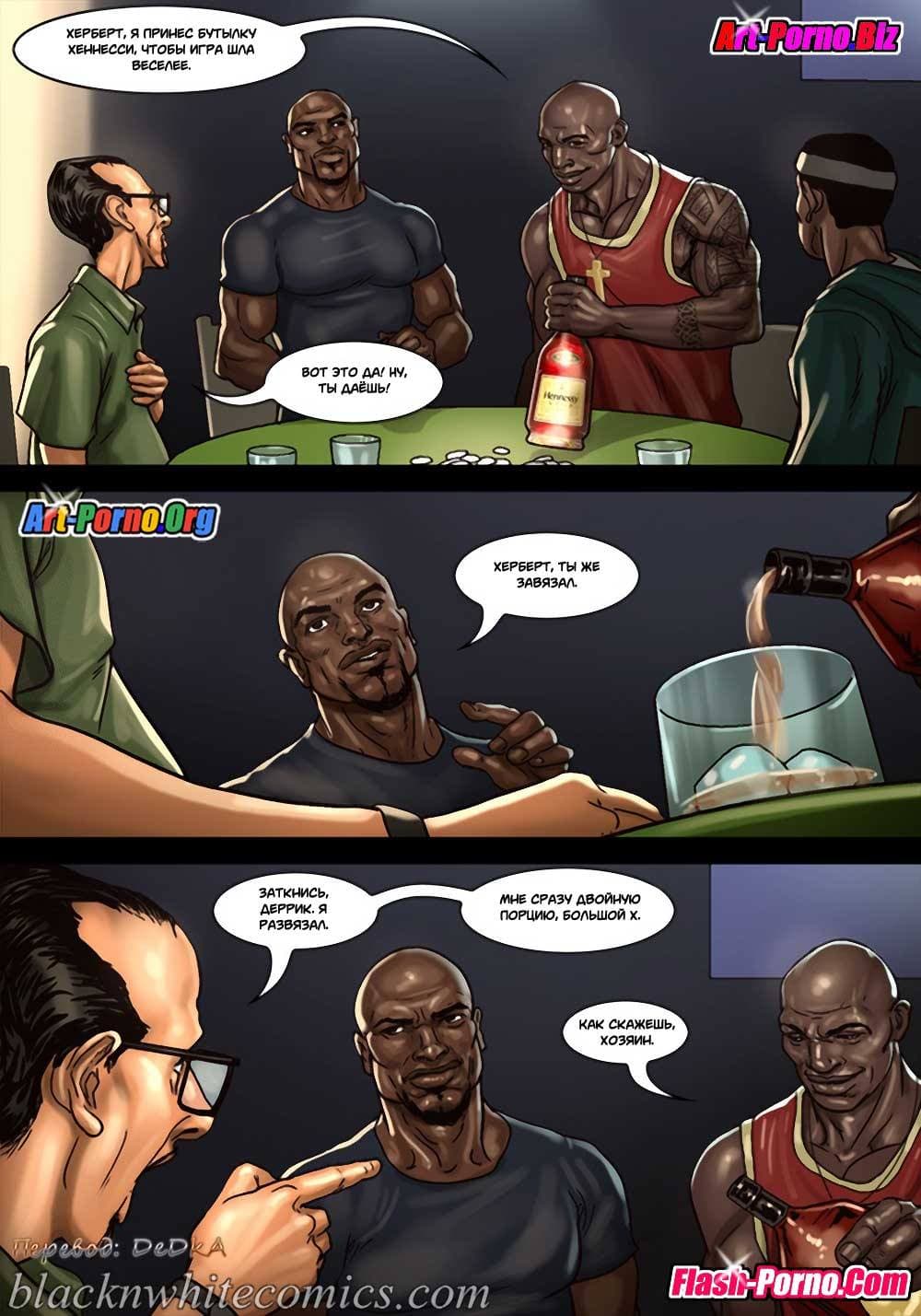 Игра в покер продолжается, а межрассовые порно комиксы об измене покажут, с чего начинались события второй части великолепной и очень возбуждающей истории. Так с наступлением вечера в очередной раз чернокожий друг привел к своему корешу своего младшего брата и ещё одного негра для компании. Хозяин был в настроении, и пригласил гостей в дом, тем более они принесли с собой бытулочку Хеннесси. Спустя некоторое время глава дома нажрался и уснул. Зато его большегрудая женушка и ее подруга решили продолжить игру с тремя неграми, но уже не в карты, а в нечто гораздо более интересное…