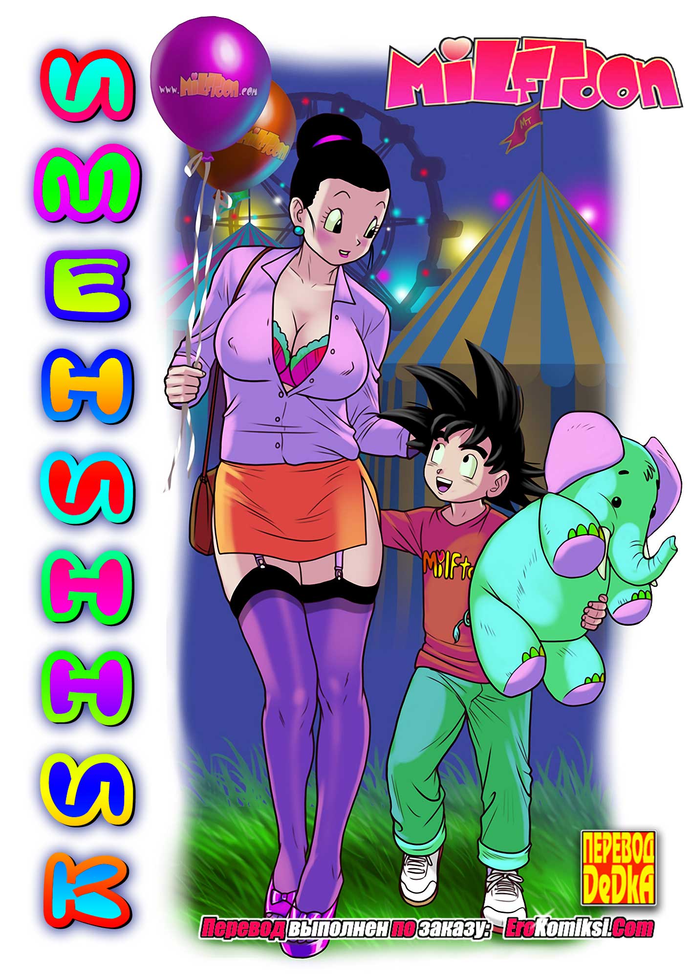 Порно комикс Именинник является пародией на аниме сериал под названием «Dragon Ball» или «Жемчуг дракона». Так, Готен проснулся в прекрасном настроении, потому что сегодня наступил его день рождения, которого парень так долго ждал. Пройдя на кухню, Готен увидел свою сексуальную мамочку в очень коротенькой юбке, которую Готен просто обожал. Но не все было, как хотел именинник, ведь мамаша была вовсе не одна, а вместе с мастером Роши. Это обстоятельство не радовало Готена. Зато мамаша дала понять, что поздравит Готена немного позже, и при этом он может просить у нее буквально все, что пожелает…