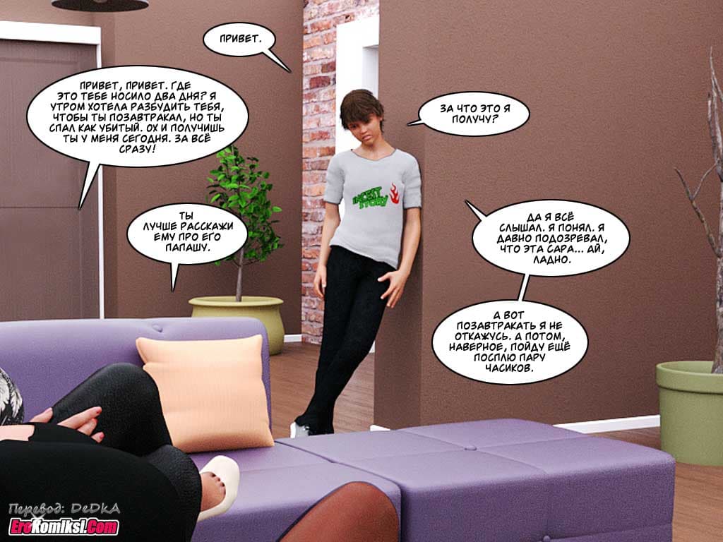 У Дэна появилась возможность проверить действие препаратов, которыми они с Томом запаслись накануне. Чай с «приправами» сработал так, как Дэн и ожидал. Поэтому, вскоре мать Дэна, которой в чай Дэн подсыпал снотворное, внезапно захотела спать, и она отправилась вздремнуть в свою спальню, а тётя Дэна, которой в чай Дэн подсыпал возбудитель, так же внезапно захотела трахаться и она, убедившись, что мать Дэна действительно уснула, отправилась в спальню к племяннику…