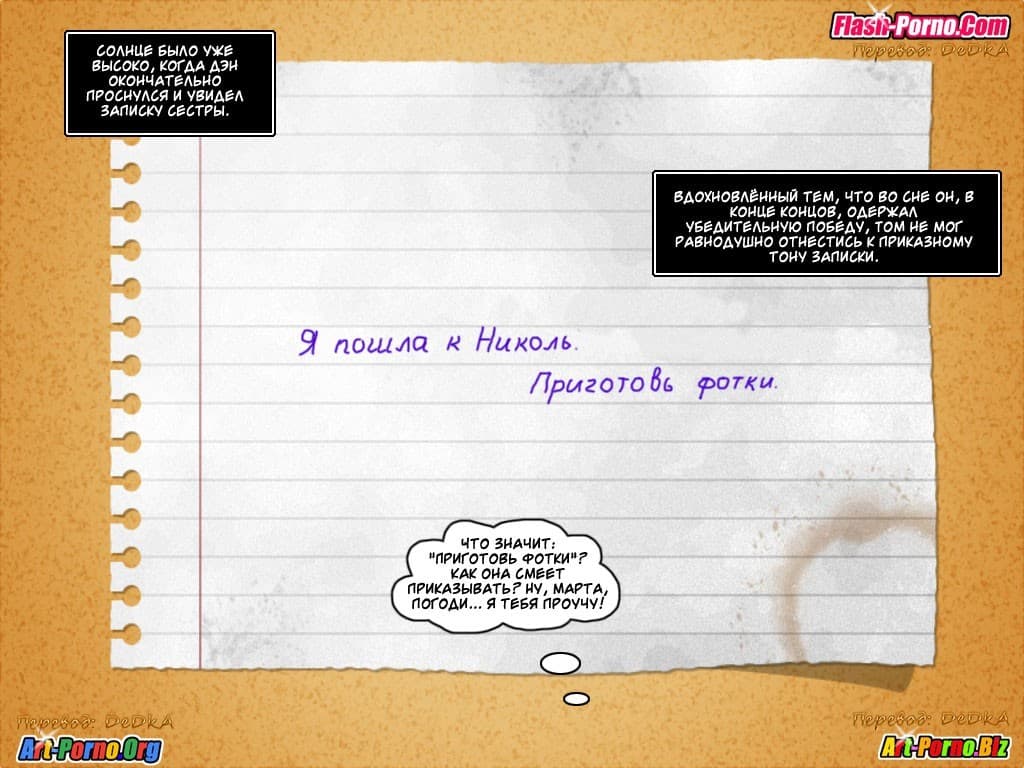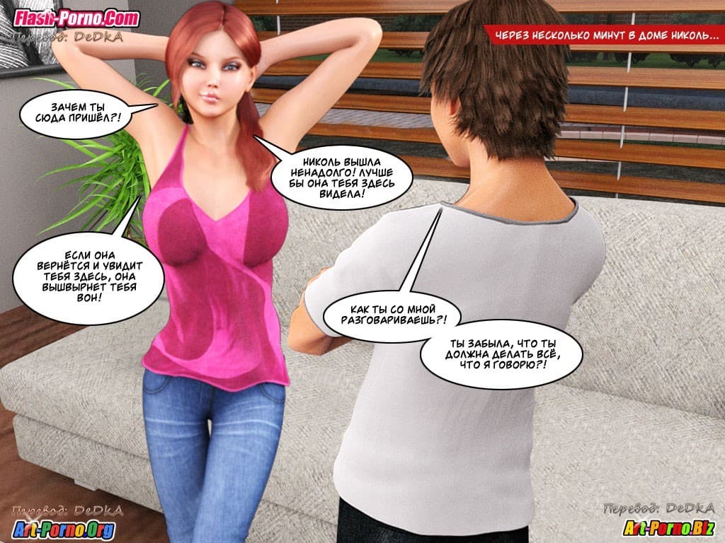 Популярные инцест комиксы 3д продолжаются. Похотливый герой крайне удачно начал свои каникулярный отпуск. Конечно, в первое раннее утро его каникул парня, хоть и отправили за газетой, и к зрелой тёте помочь, и за тяжелым багажом сестры в аэропорт сгонять. Но это все ничего, ведь позже он уже сам многим диктовал свои условия, причем, крайне развратного характера. Потому что хитрец знал, как нужно шантажировать аппетитных «цыпочек» и нагло разводить их на секс. Но всё только начинается, и второй эпизод этого комикса для взрослых раскроет новые подробности данной эротической истории.