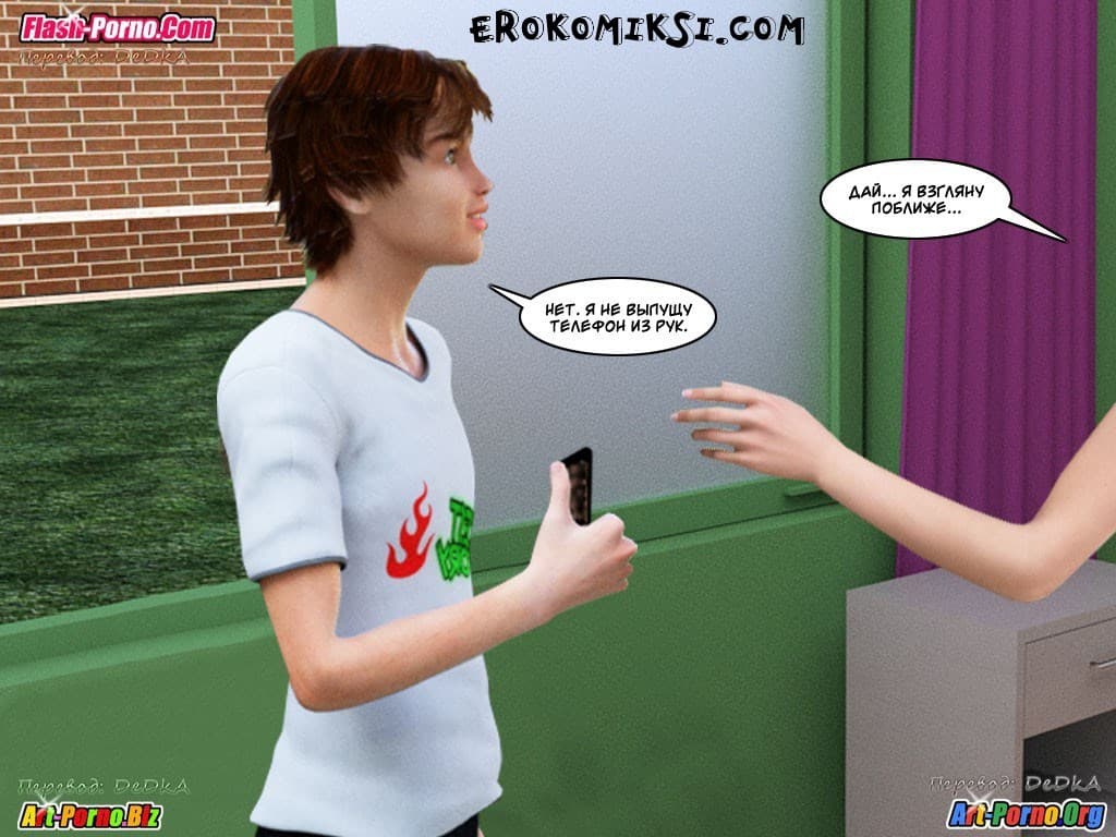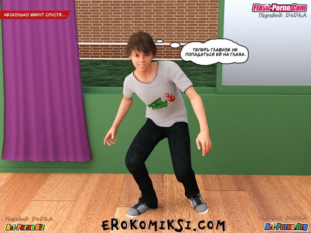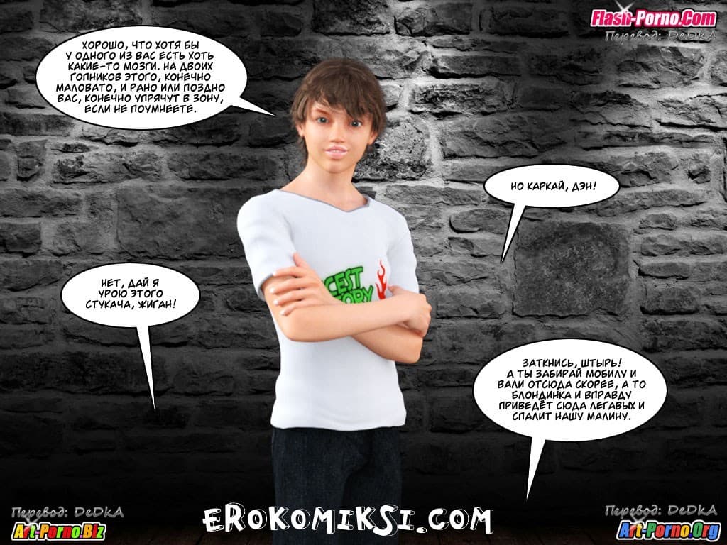 Перед вами порно комикс инцест история 3 эпизод первой части, который вы так просили выложить на сайте. События данного произведения начинаются с того, что когда подружка сестры озабоченного главного героя застукала его с поличным, в тот момент когда он занимался с сестрой бурным сексом, у брата и сестры не осталось никакого другого варианта избежать крупных проблем, кроме как попробовать уболтать, увидевшую их девушку держать крепко свой длинный язык за зубами… Но каким образом это сделать..?