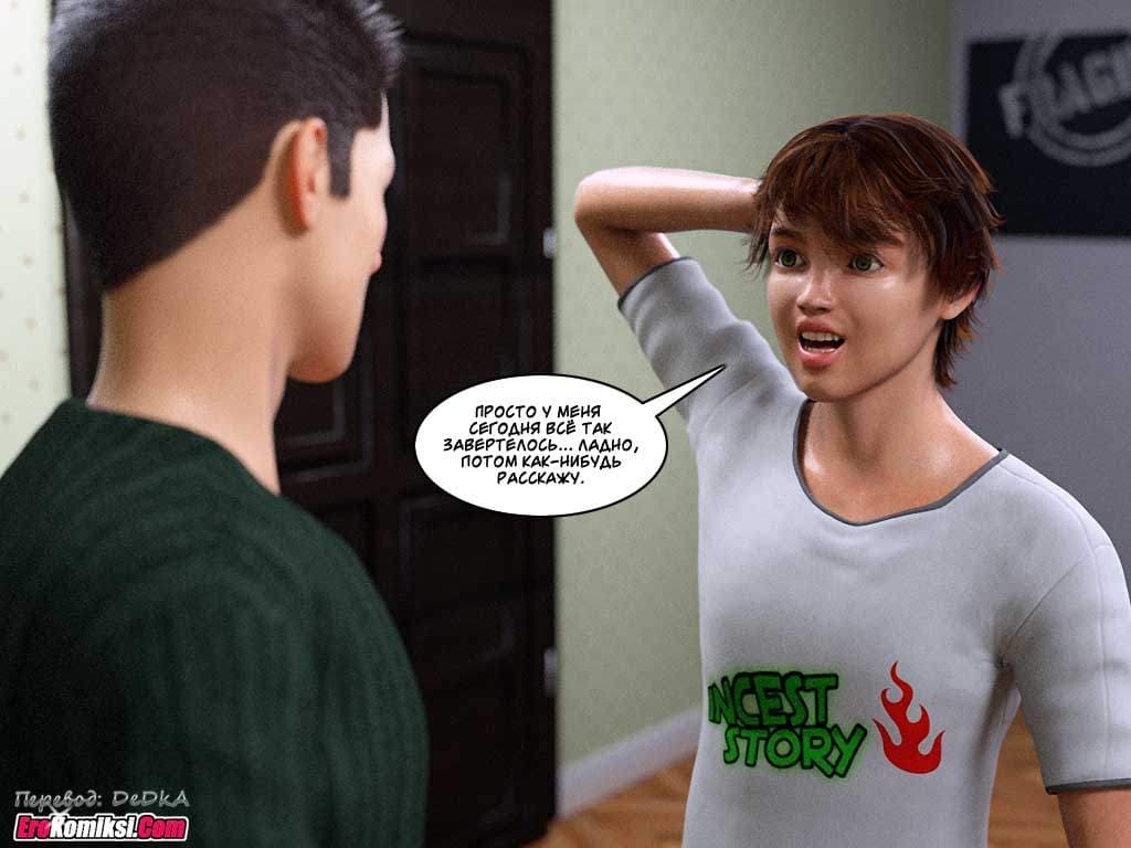 Долгожданный порно комикс Инцест история 5 часть, наконец, впервые вышел! В 5 эпизоде, все еще 1 части этой большой, но весьма развратной истории комикса произойдет кардинальное изменение развития событий. Тётя Дэна, Лиза, решает восстать против шантажа племянника и заявляет ему, что больше не желает подставлять ему свою задницу под член по первому его требованию. Этот смелый поступок плохо закончится для Бедной Лизы. Хотя, не исключено, что всё, в конце концов, пойдет ей на пользу…