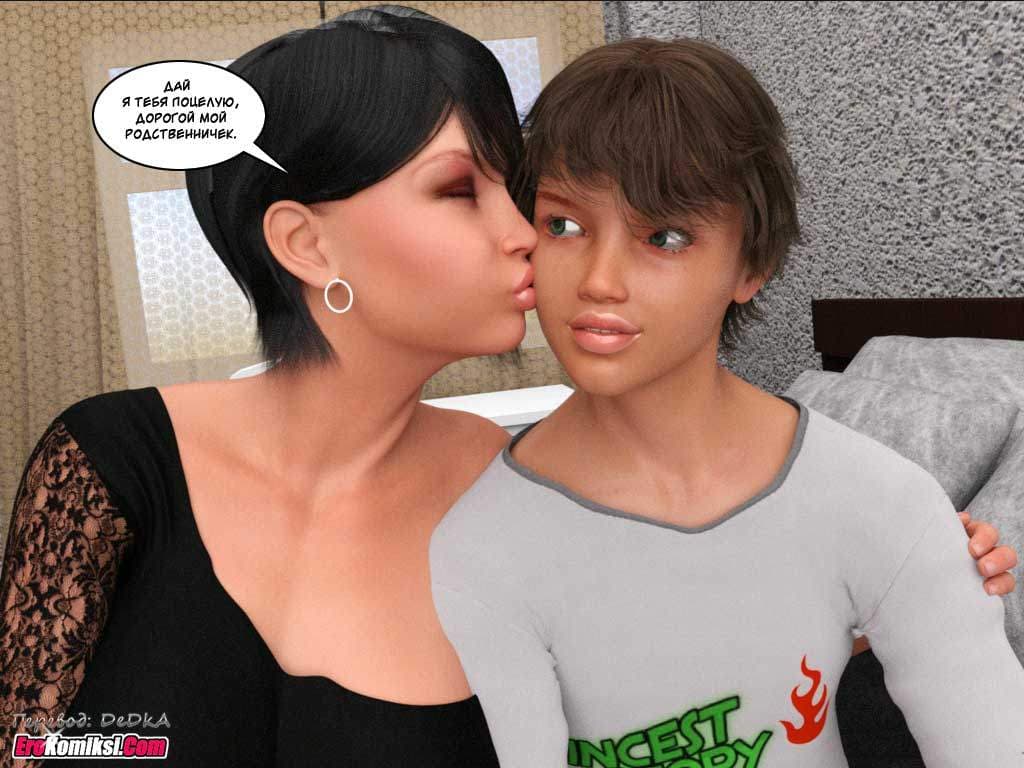 Порно комикс Инцест история в 7 части расскажет о том, что вернувшись рано утром от Тома, Дэн обнаружил у своей двери свою разлюбезную зрелую тётушку, что называется, с вещами. Сон Дэна о том, что муж тёти выгонит её из дома за измену, и она будет жить в доме Дэна на чердаке, оказался вещим. Племянник поздоровался с тётей, открыл дверь и… повёл её на чердак… А там…