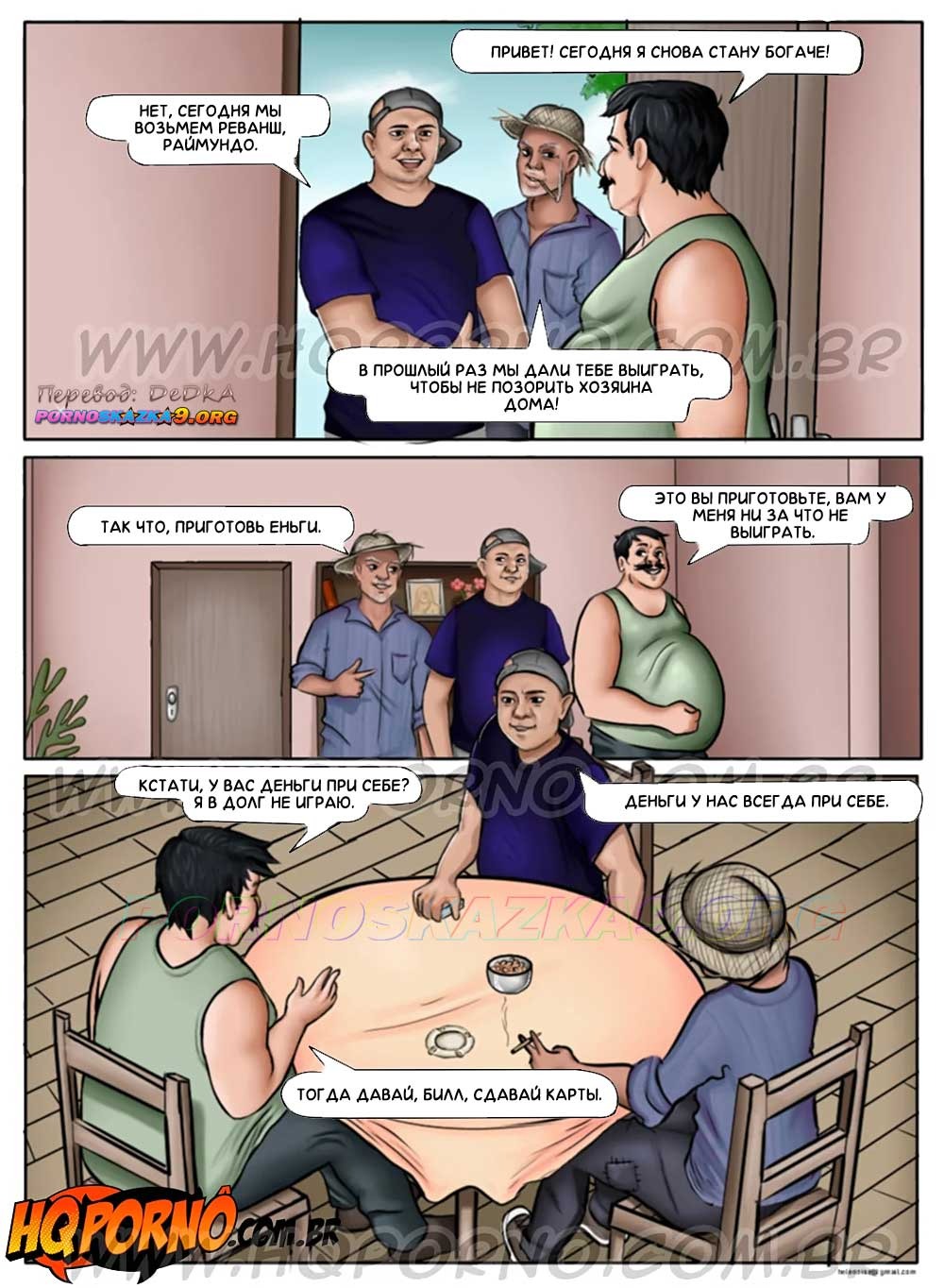Порно комикс Инцест на ферме. Часть 11: Кончай Билл. Раймундо пригласил друзей, чтобы поиграть в карты. Один из его друзей, Билл, увидев жену Раймундо, теряет разум от похоти и, воспользовавшись тем, что Раймундо пошел в туалет, пытается трахнуть жену друга…