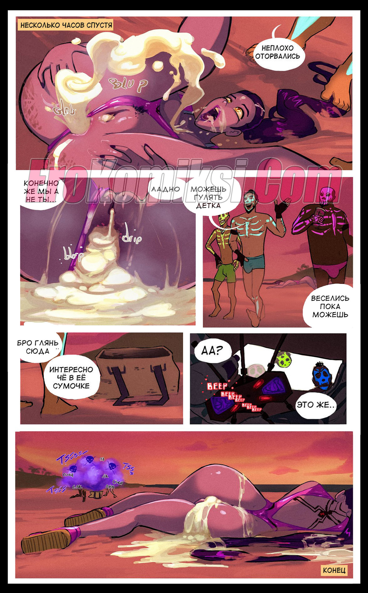 Порно комикс Ищем цыпочку. Cherchez La Femme. TheDirtyMonkey Несколько молодых парней подцепили сисястую брюнетку на пляже. Они потащили ее с собой, чтобы уединиться, а затем раздели и трахнули все ее дырочки, наполнив сучку своей спермой.