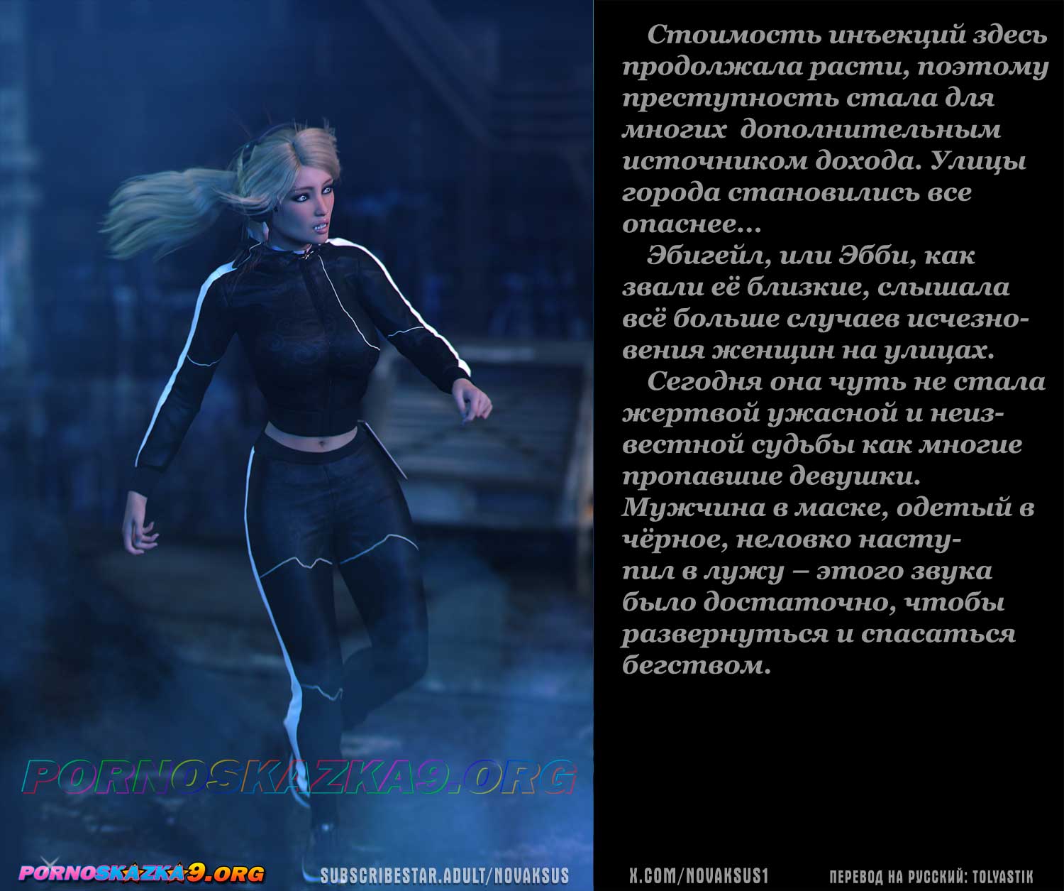 Порно комикс История Эбби. Часть 1. Недалекое будущее — плохая атмосфера, плохие люди, тесные пространства. Эбигейл пытается выжить в этом злом и жестоком мире, переполненном преступностью и откровенно садистскими законами… Интересно, куда ее заведет судьба-злодейка?