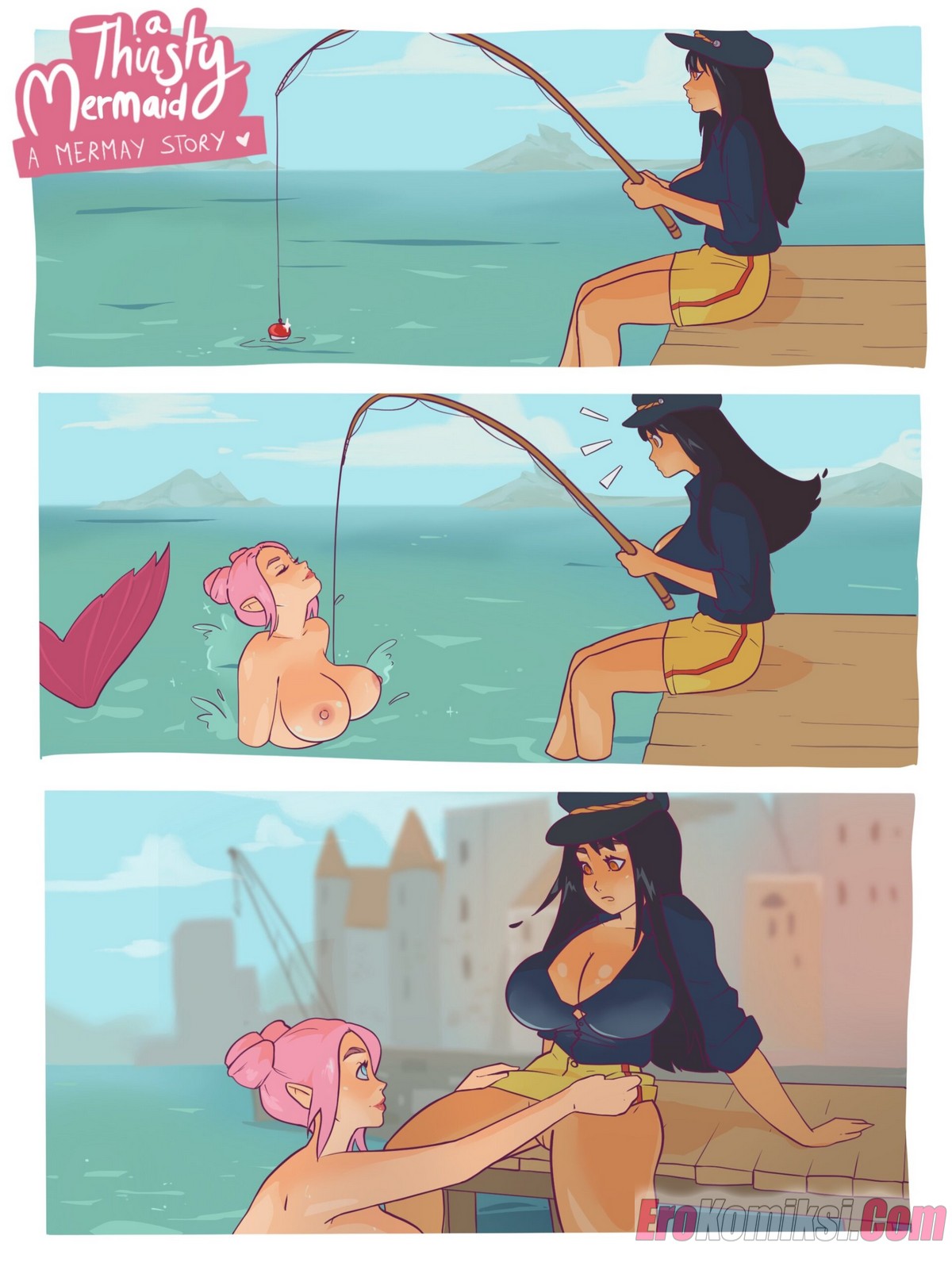 Порно комикс Измученная жаждой русалка. A Thirsty Mermaid. Hornyx Русалка познакомилась с горячей брюнеткой и потащила ее под воду. Там девушке пришлось сражаться с другой девушкой за свободу, занимаясь с ней страстной лесбийской еблей.