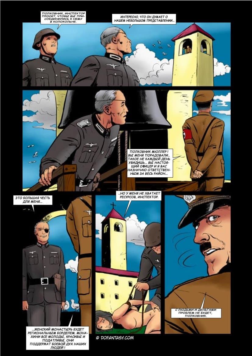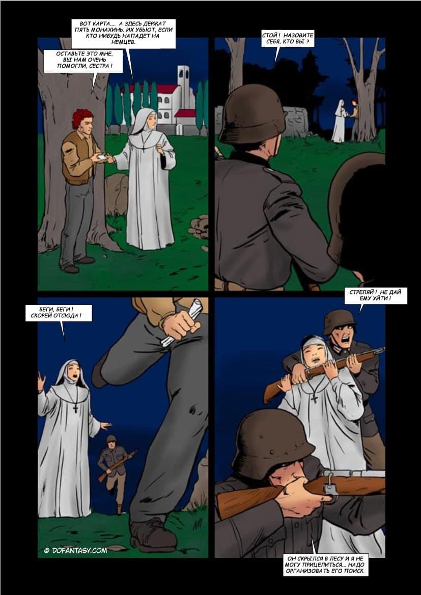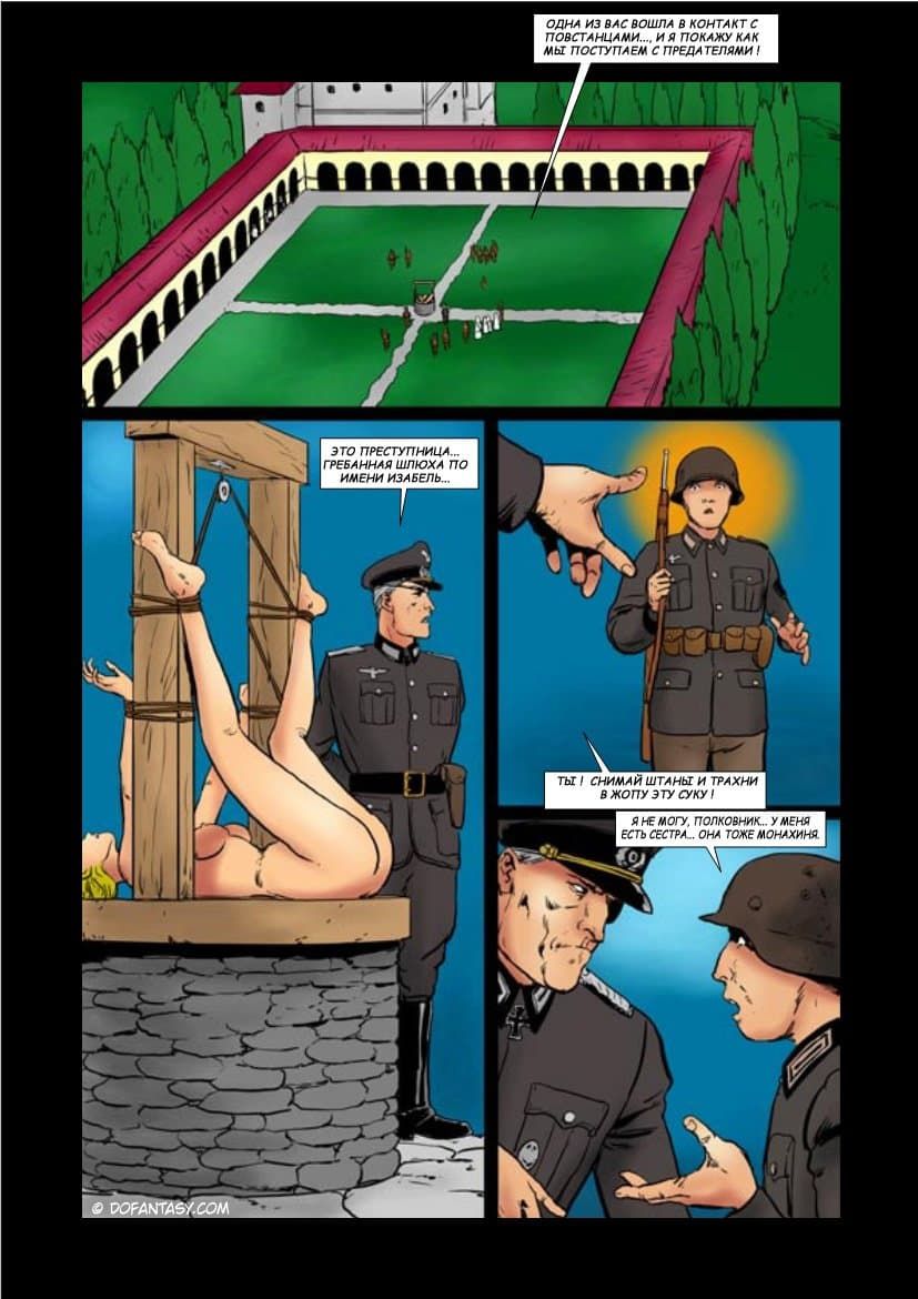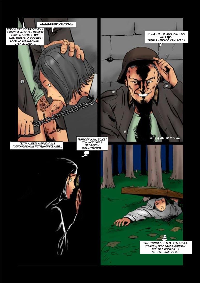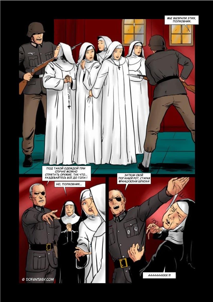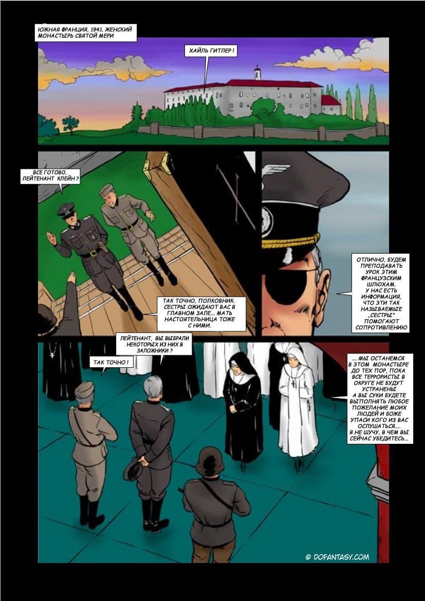 Комикс о том, как французский монастырь был захвачен фашистскими войсками. Молодые монахини были захвачены в заложники, а вскоре их стали насиловать. Девушек превратили в сексуальных рабынь, которых жестоко дрючили во все щели, не обращая внимание, на их мольбы. Вагины, попки и рты бедняжек постоянно наполнялись немецким семенем.