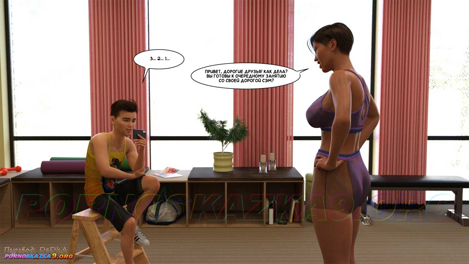 Порно комикс Как стать звездой порно. Часть 3. Хитрец Бен делает именно так, чтобы при съемке упражнений по фитнесу, получались особо сексуальные кадры, которые отлично зайдут пользователям с порно платформы онлифанс, и это у него хорошо получается…