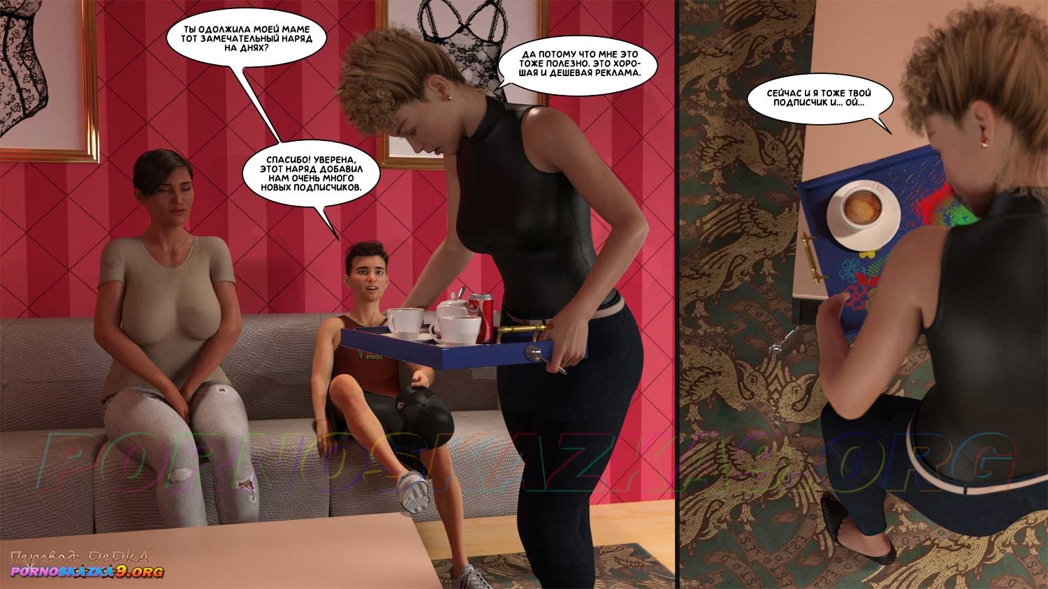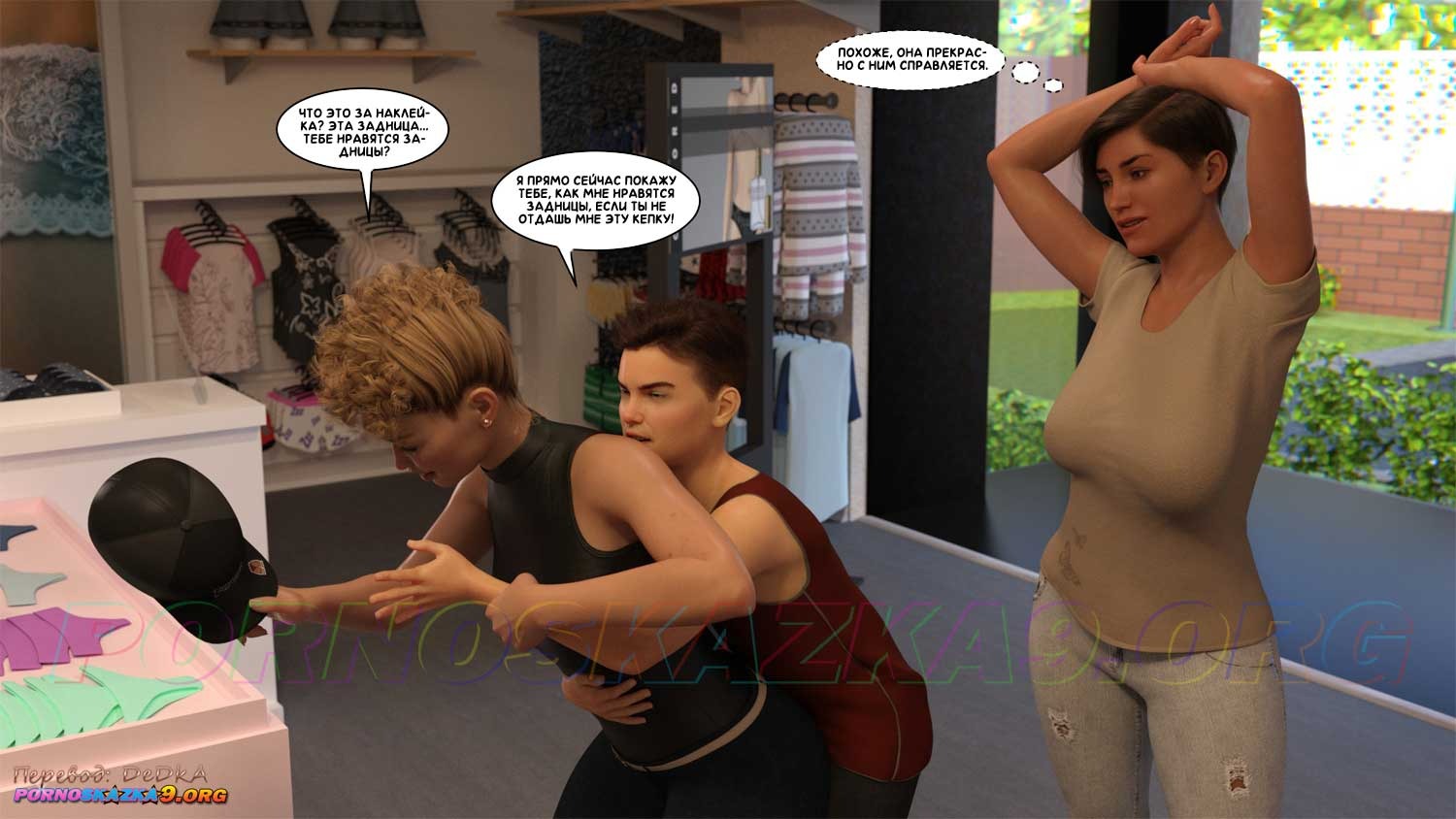 Порно комикс Как стать звездой порно. Часть 4. Сочная Таш, которая была бывшей няней Бена, а ныне являющейся владелицей модного салона одежды, в качестве режиссера примкнула к съемкам сексуальных сцен с участием Бена и Саманты для онлифанс…